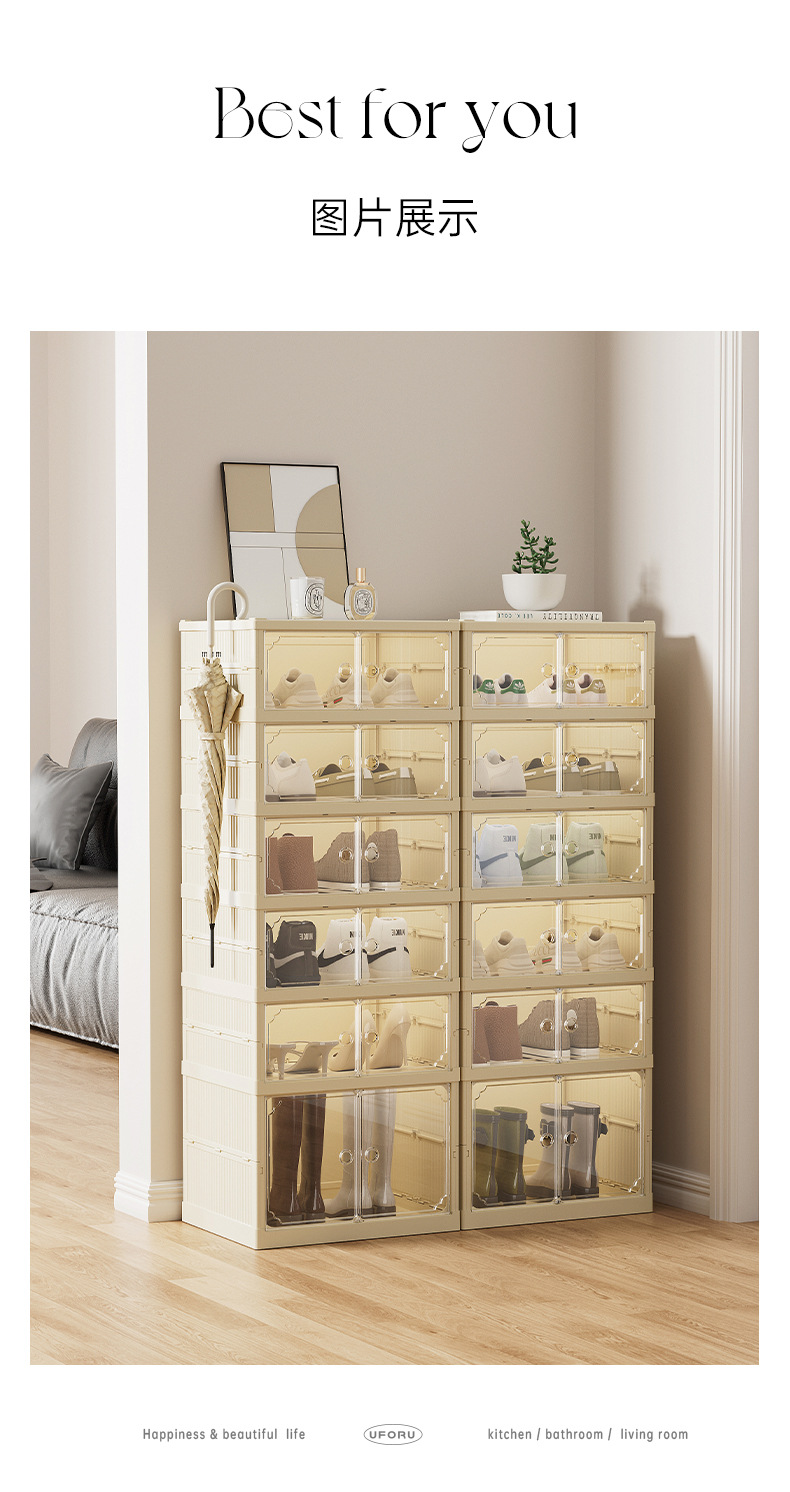 折叠鞋柜透明鞋架子双排大容量磁吸对开门免安装一体式鞋盒收纳柜
