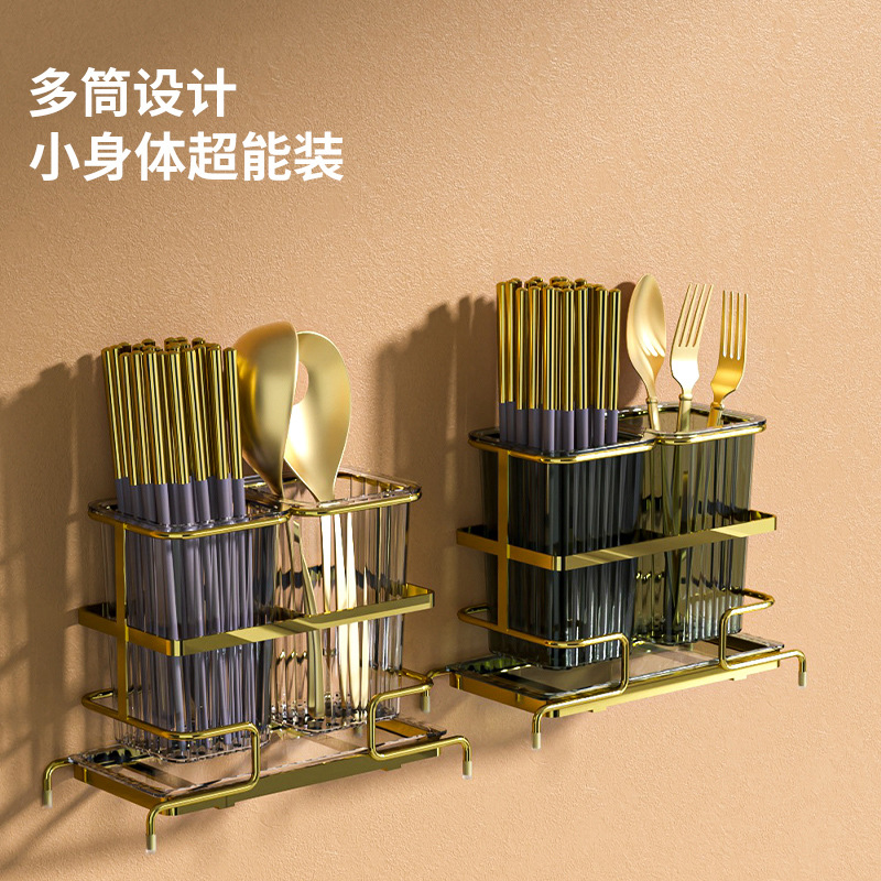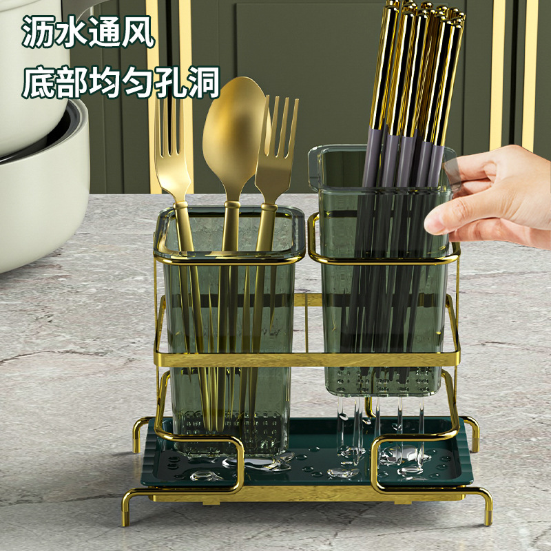 筷子收纳盒家庭2022新款家用沥水桶筷筒厨房筷子篓筷笼轻奢置物架