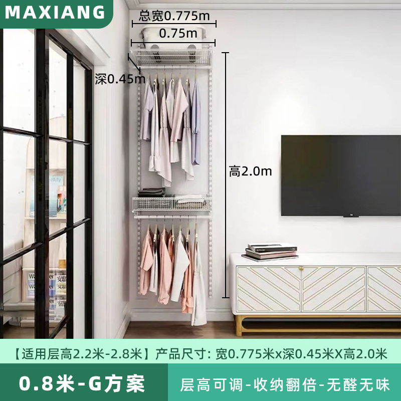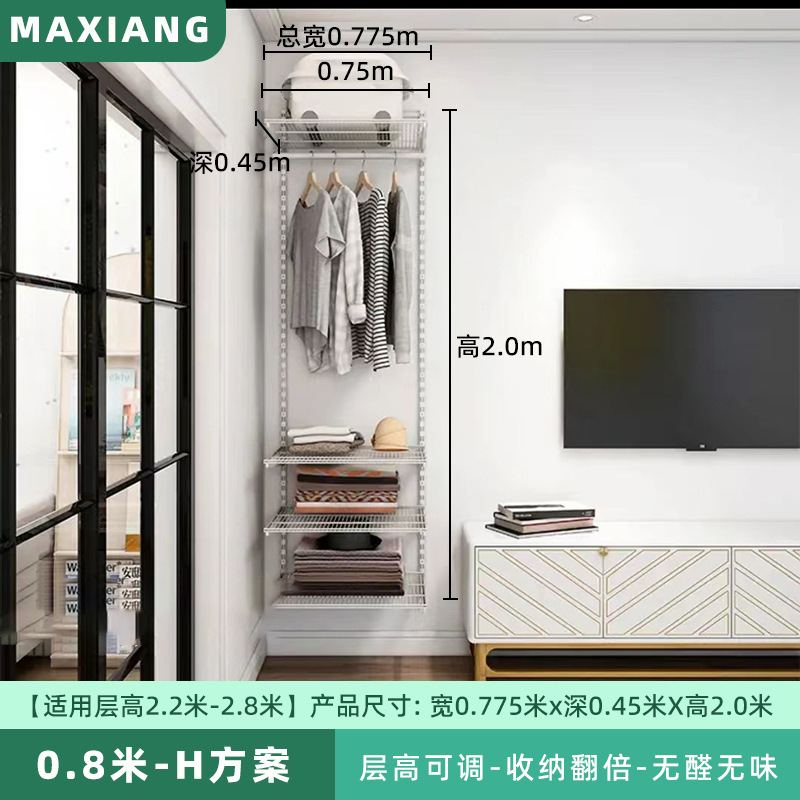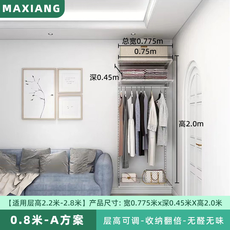 金属衣柜0.8挂衣区架子储物收纳砌墙简易组装开放式金属衣帽间