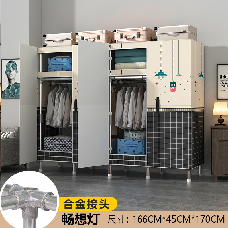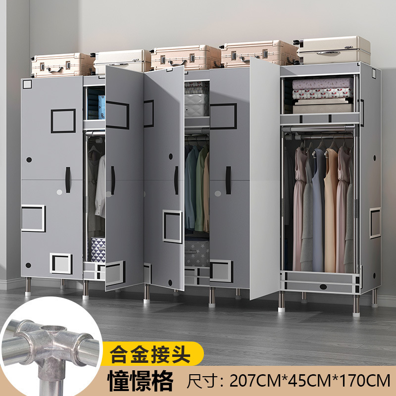 立构简易衣柜卧室磁吸门简易衣柜钢管加粗加固结实耐用布衣橱