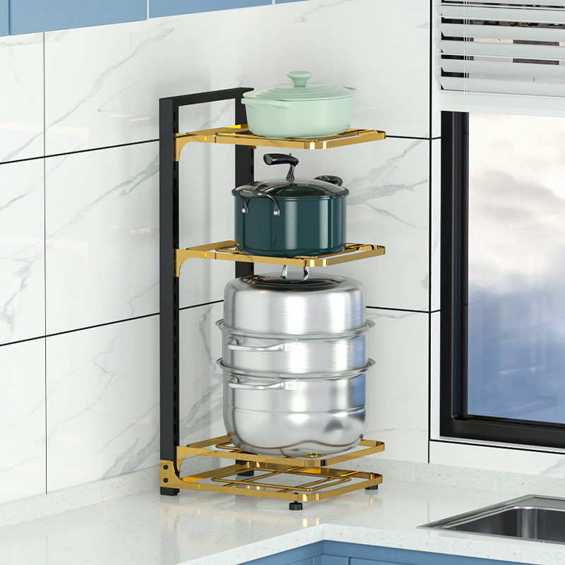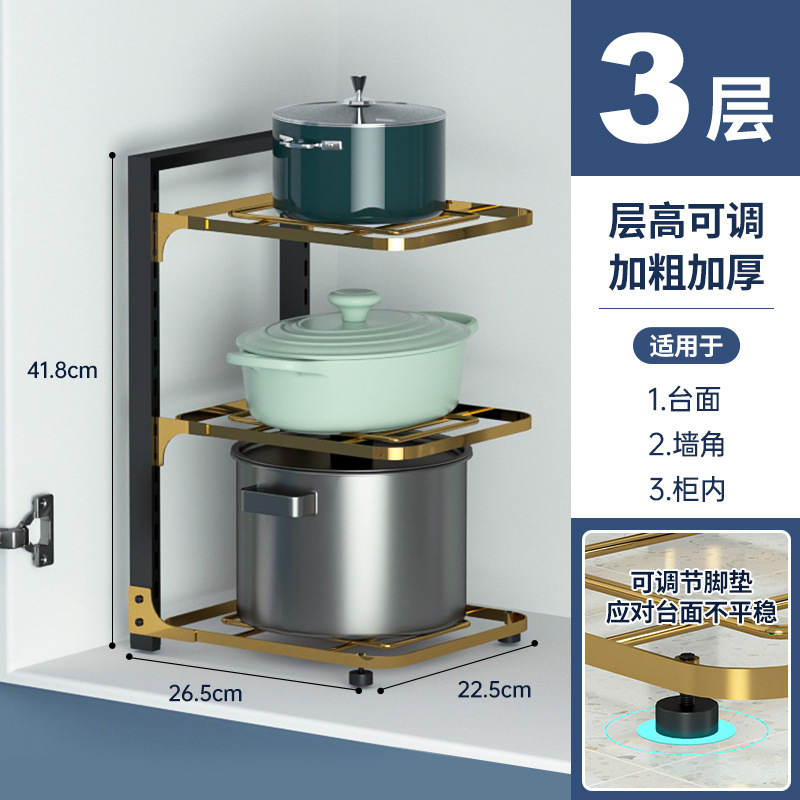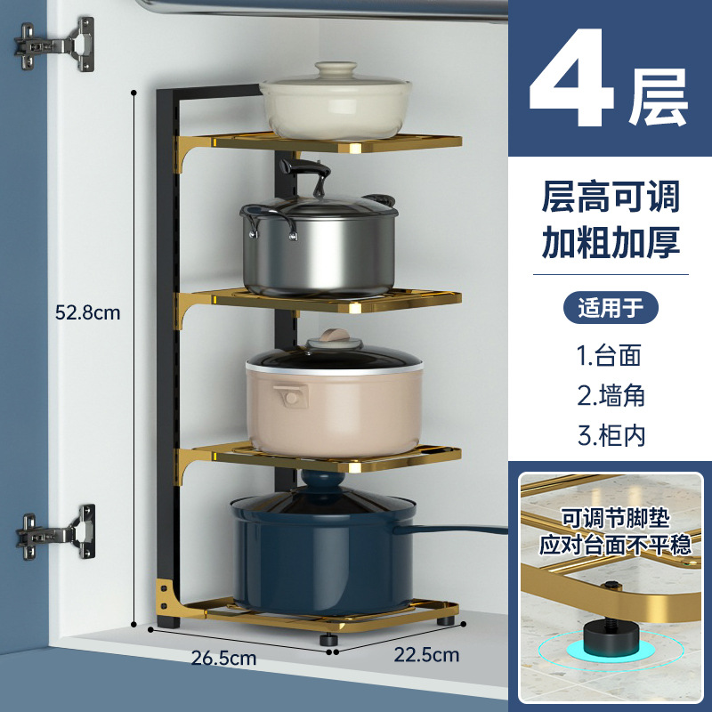 厨房置物架家用落地多层锅具收纳架子多功能下水槽橱柜分层放锅架