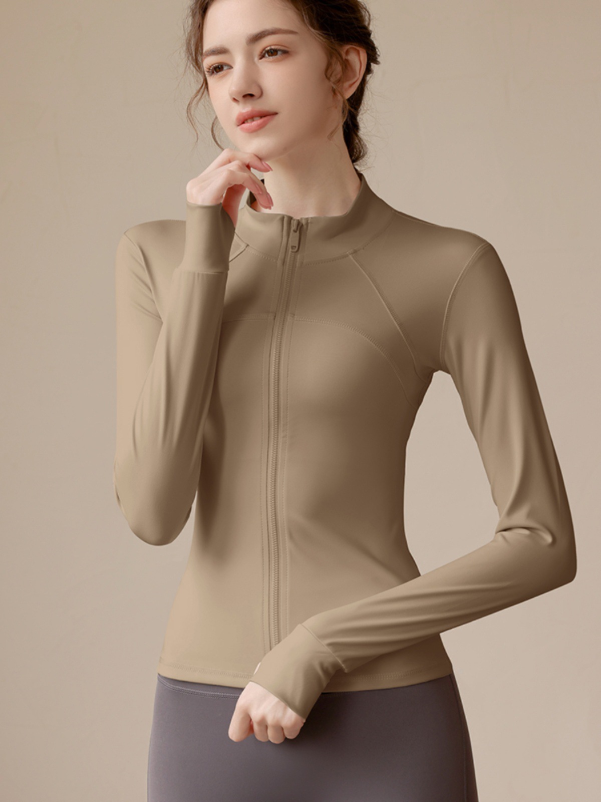 秋季新款修身显瘦拉链瑜伽服女外穿健身运动上衣弹力透气长袖外套