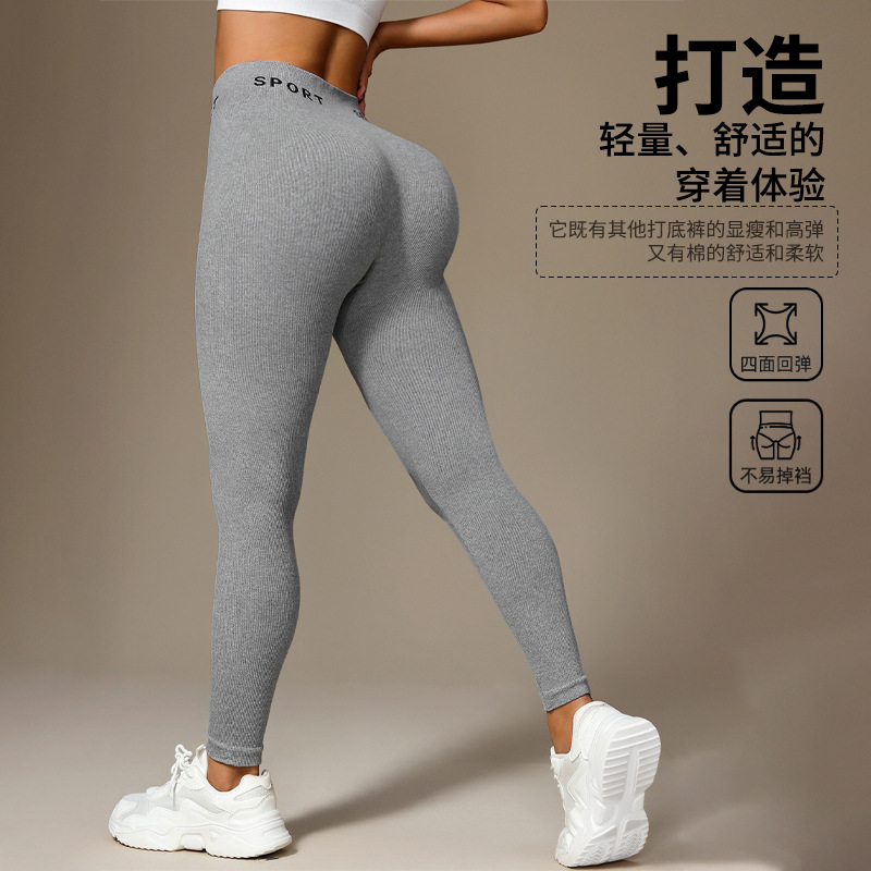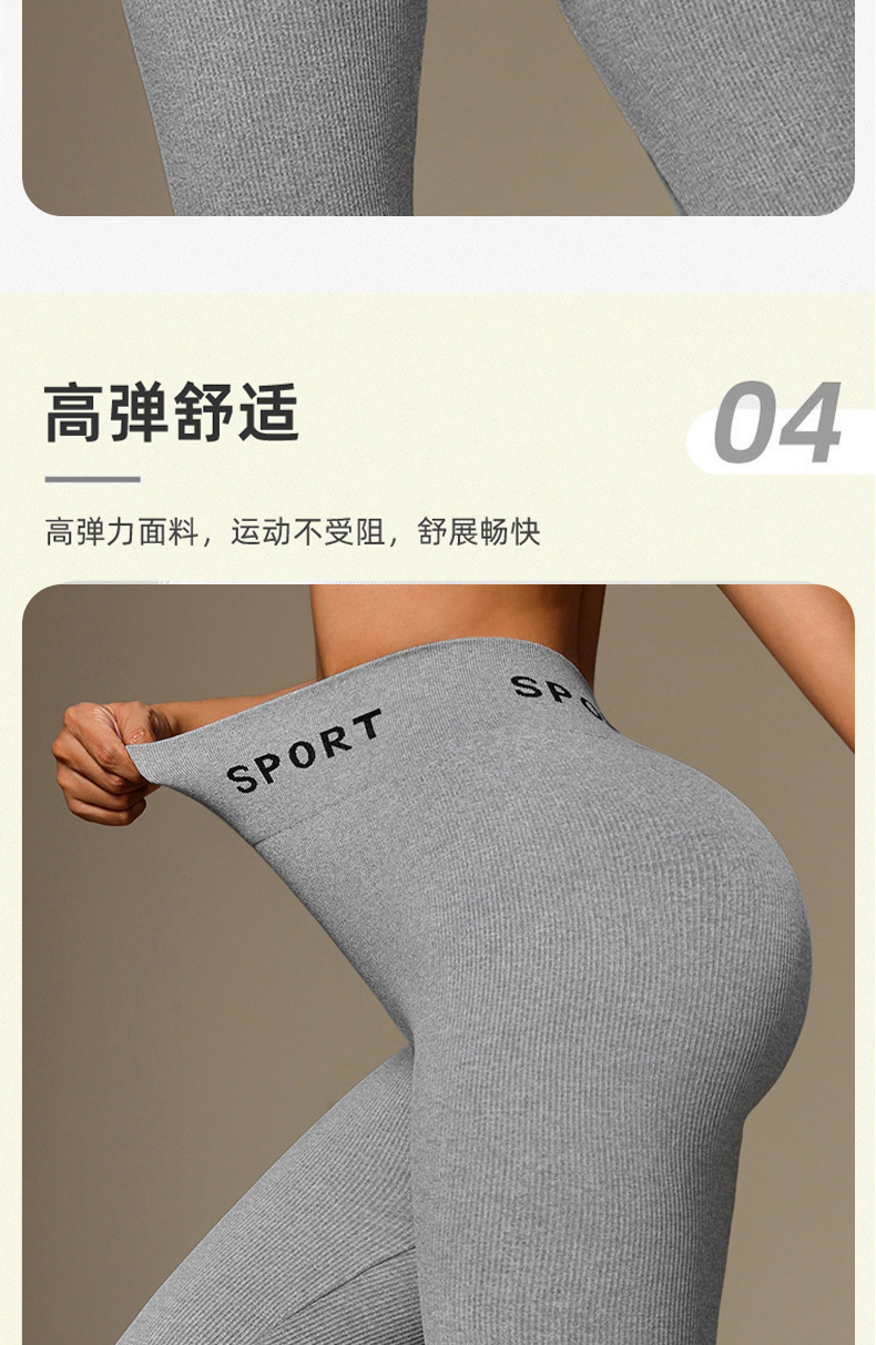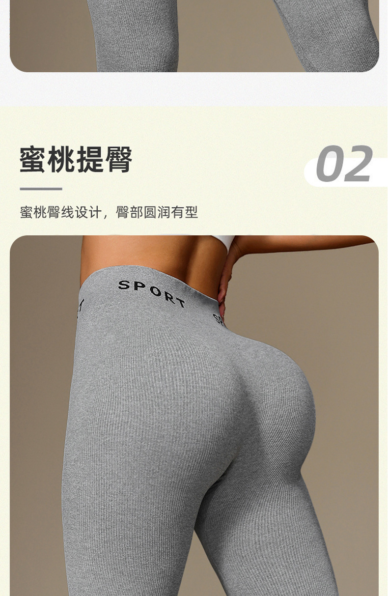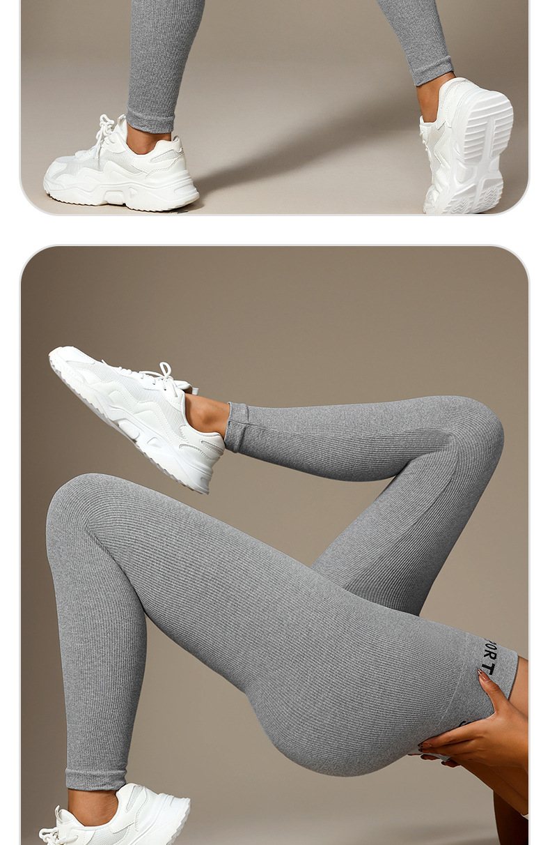 跨境欧美螺纹秋冬瑜伽裤无缝健身裤高腰时尚字母运动紧身裤瑜伽服