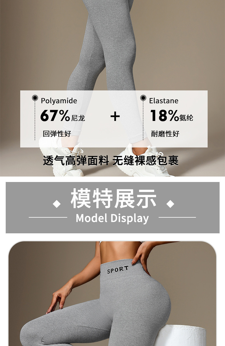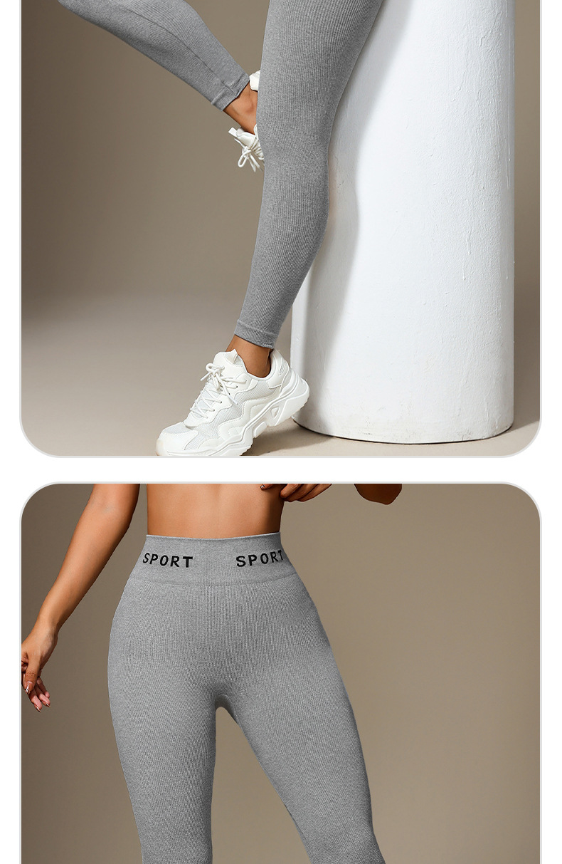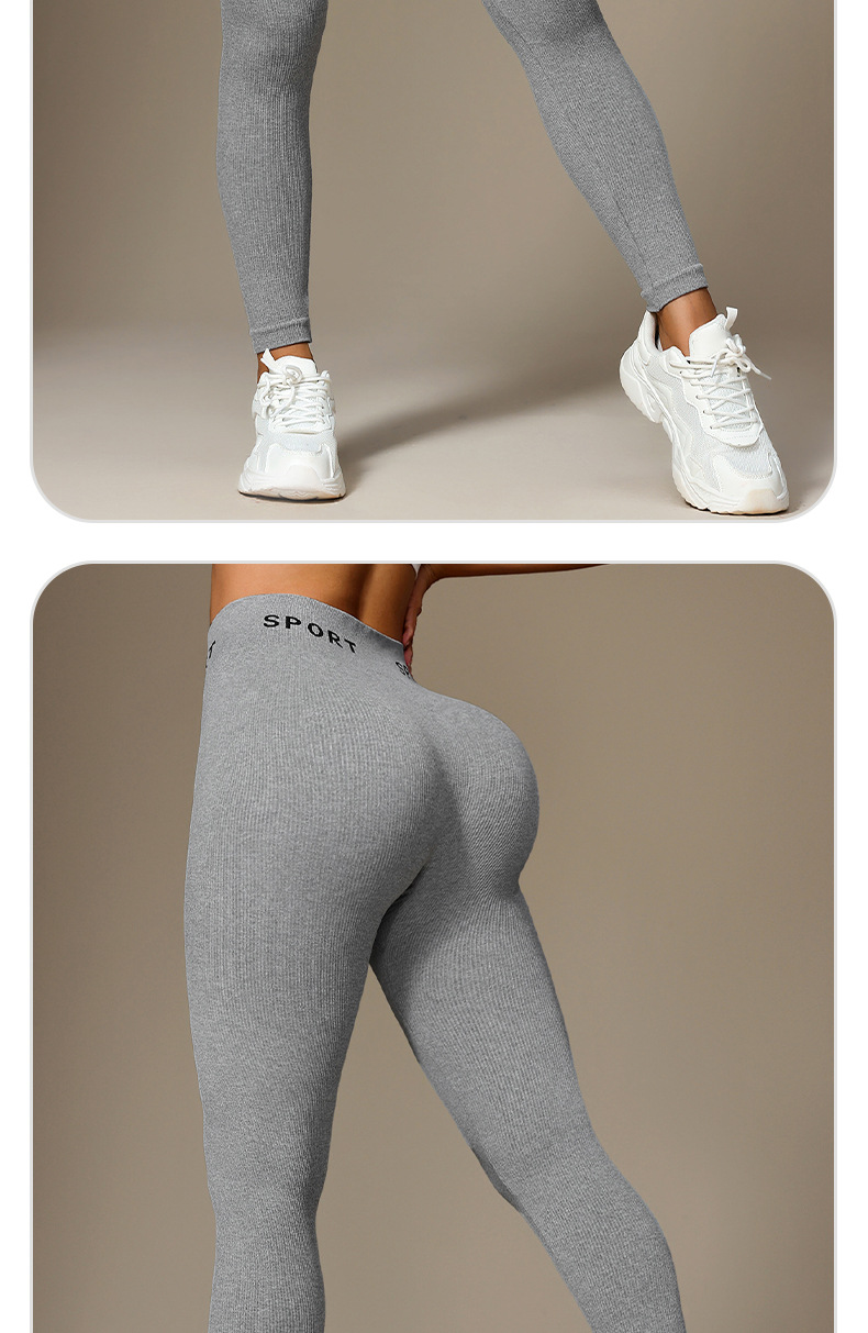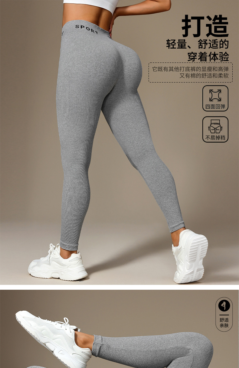 跨境欧美螺纹秋冬瑜伽裤无缝健身裤高腰时尚字母运动紧身裤瑜伽服