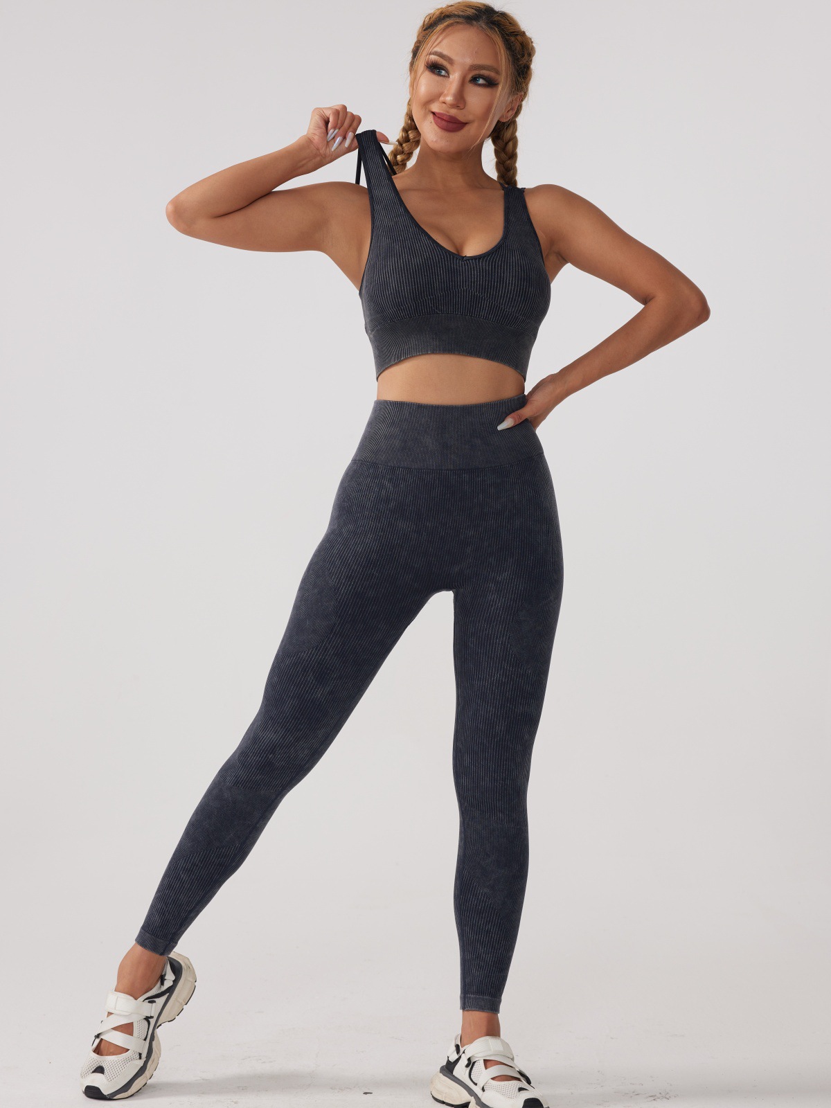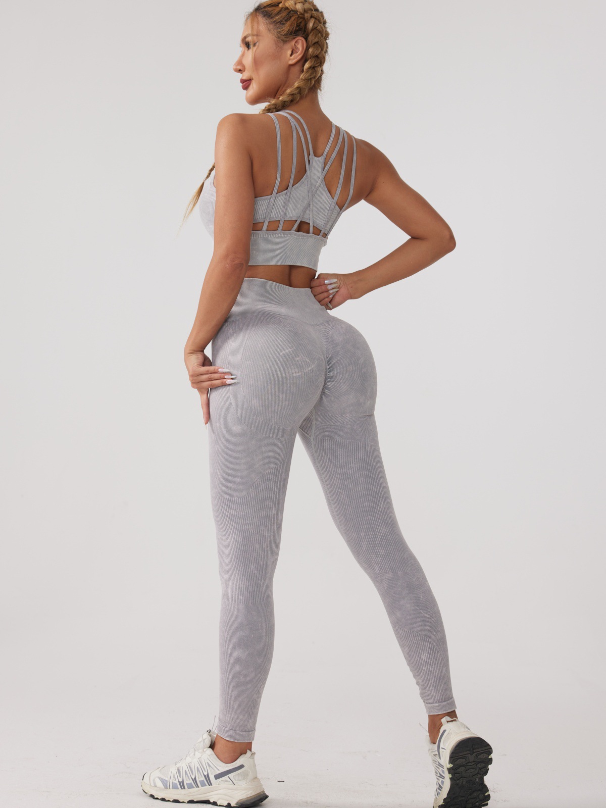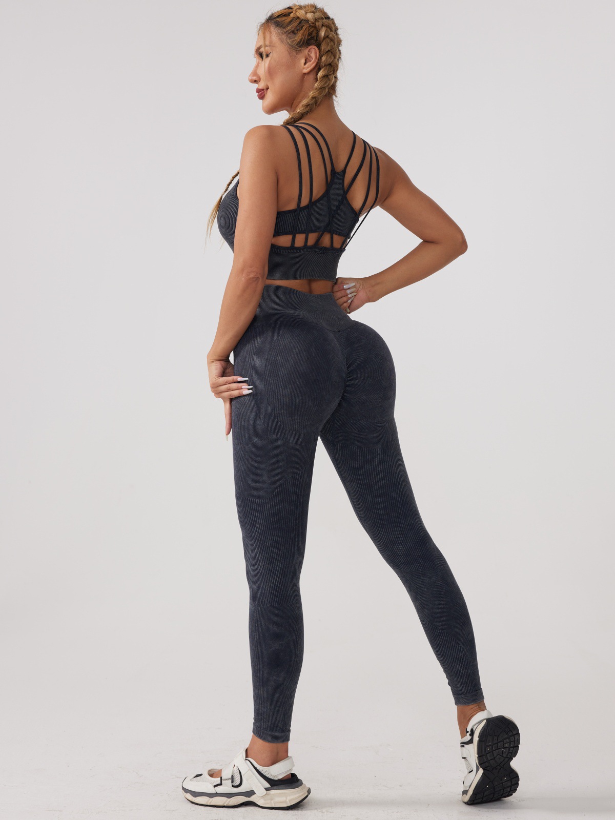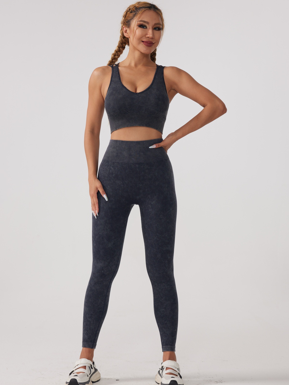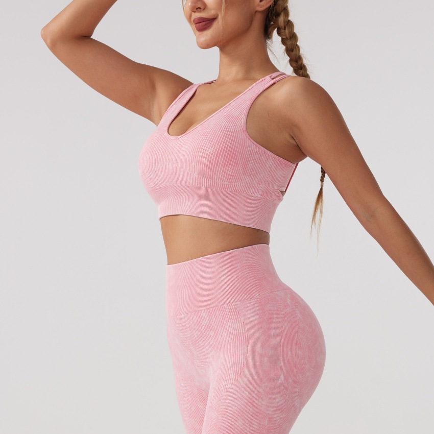 工厂现货 INS跨境新款砂洗无缝瑜伽服女运动文胸健身服高腰提臀裤