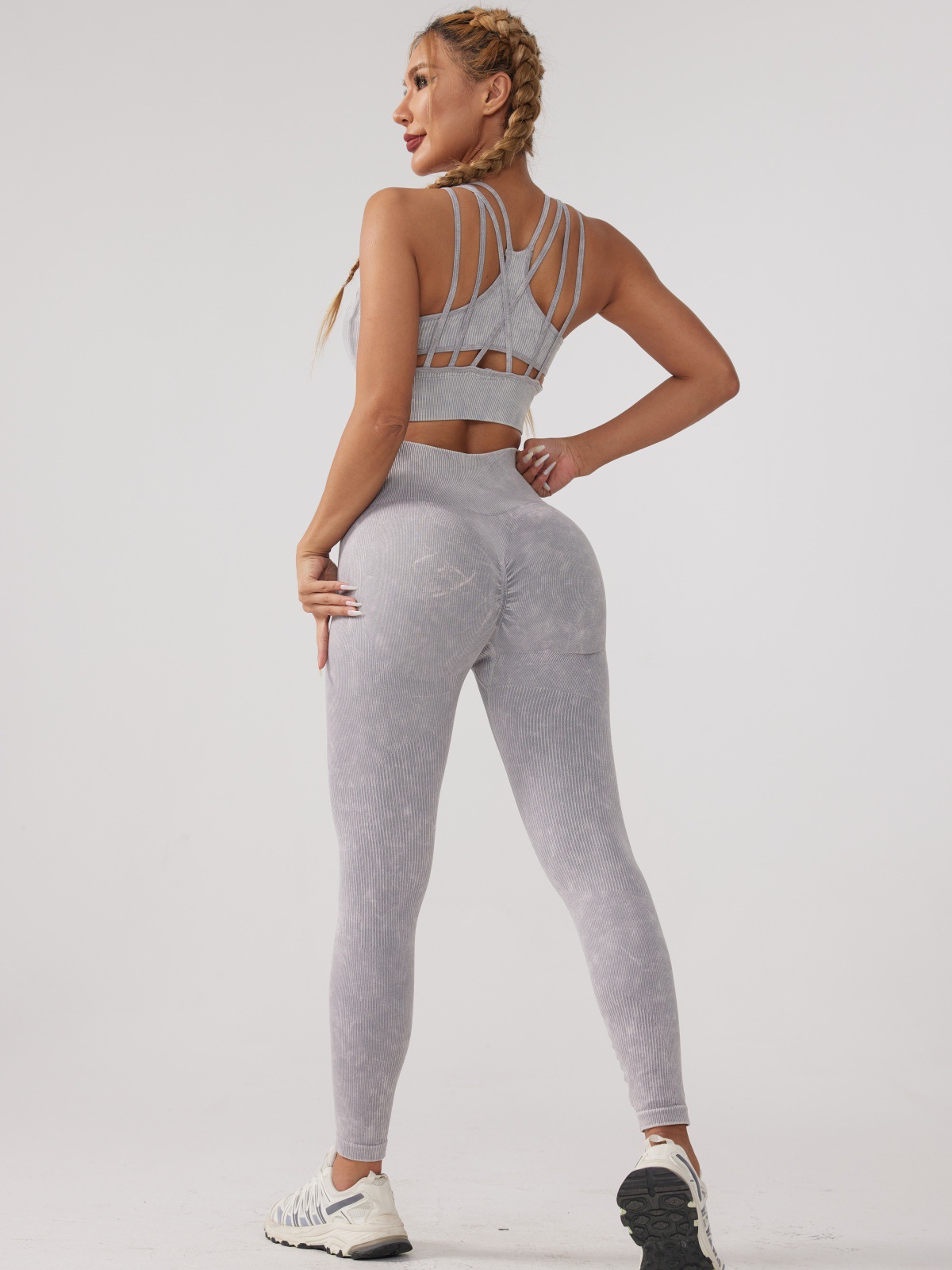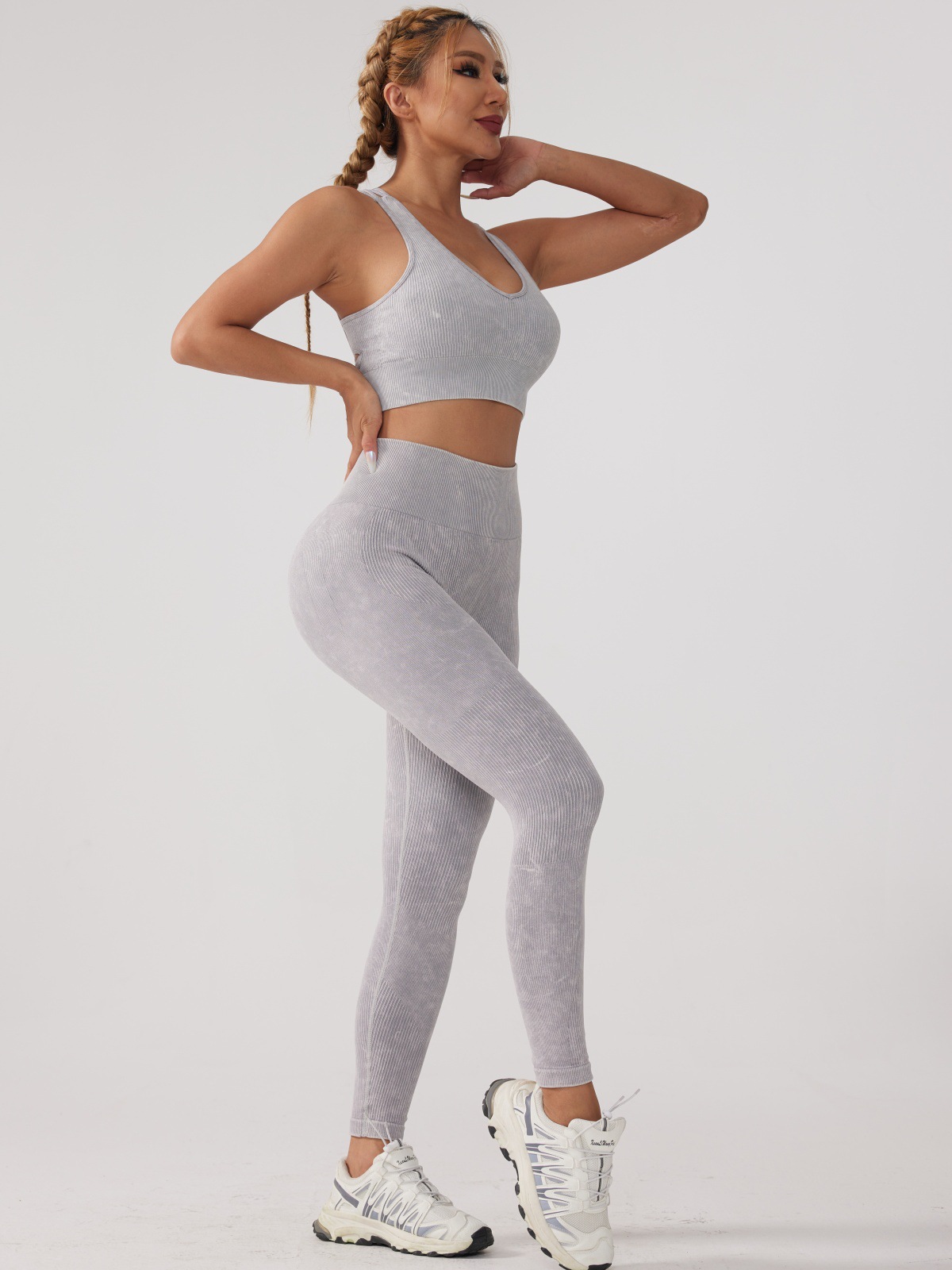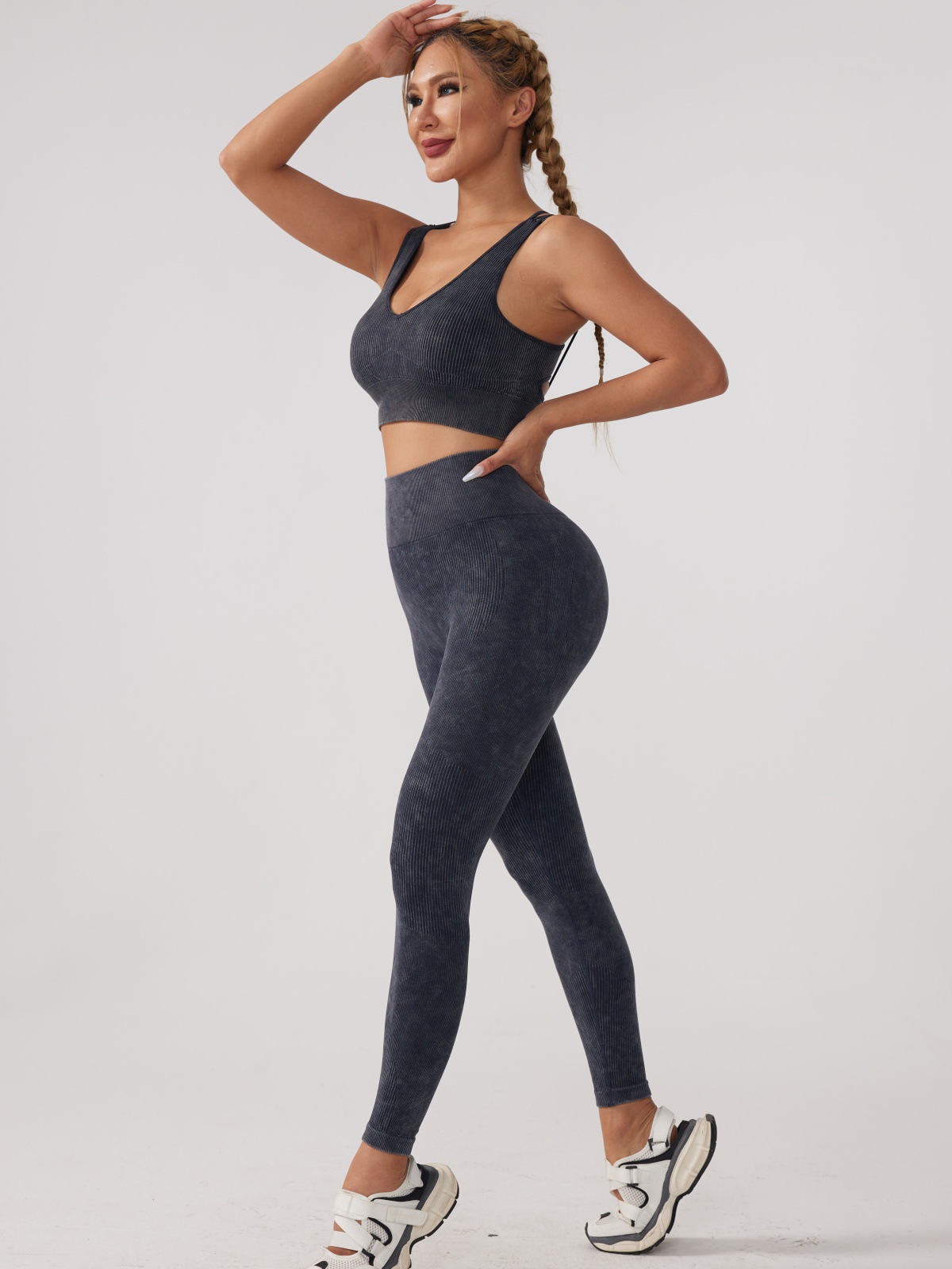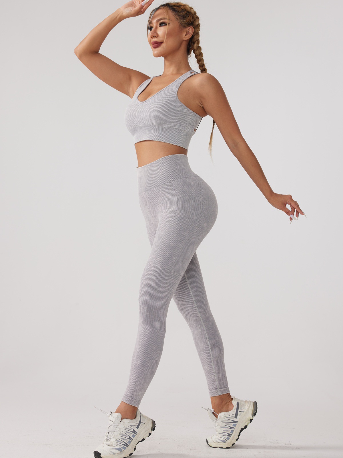 工厂现货 INS跨境新款砂洗无缝瑜伽服女运动文胸健身服高腰提臀裤