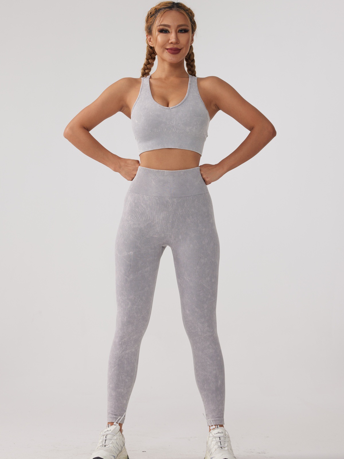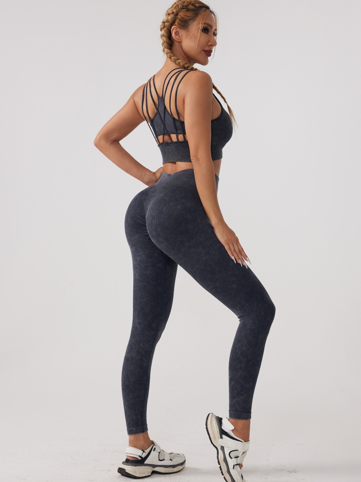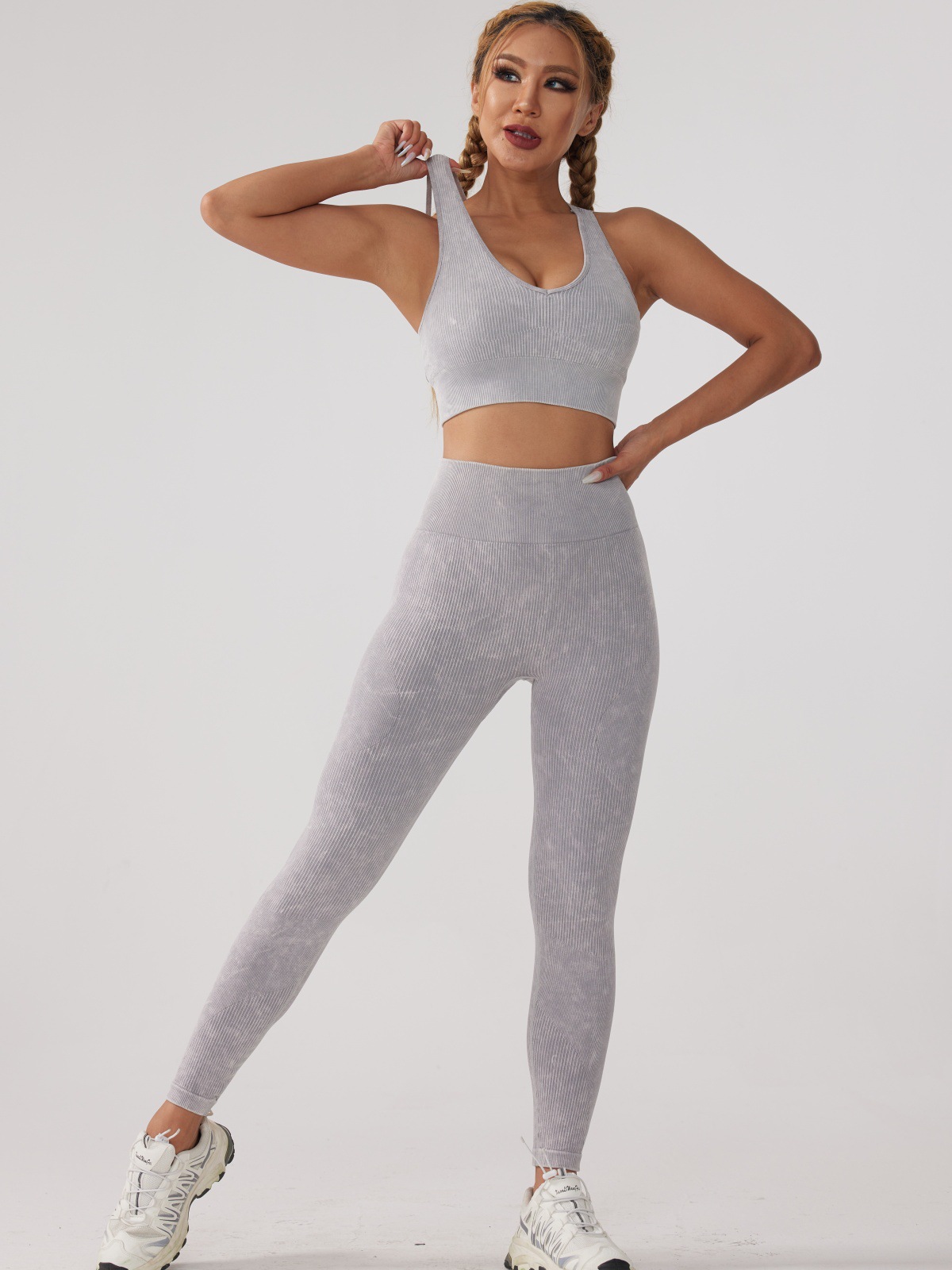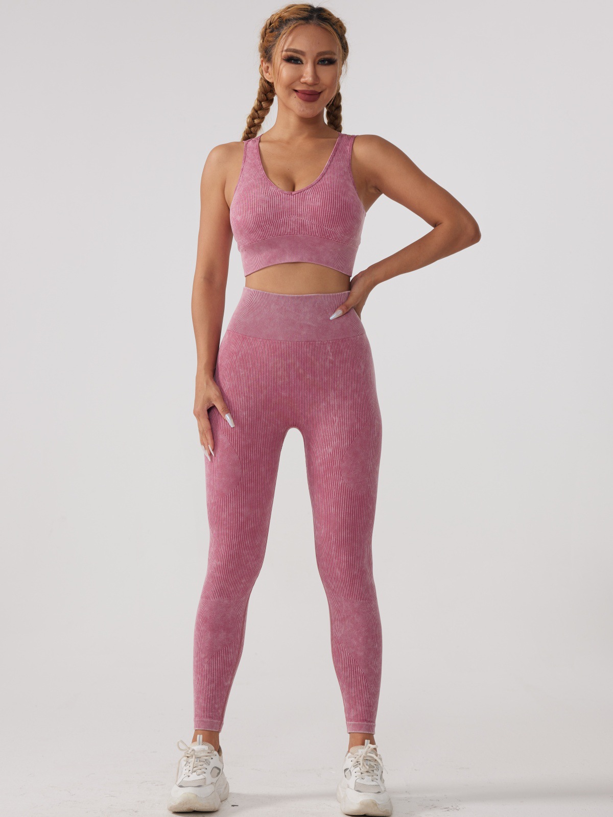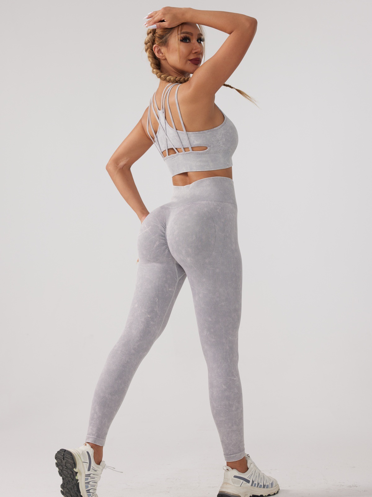 工厂现货 INS跨境新款砂洗无缝瑜伽服女运动文胸健身服高腰提臀裤
