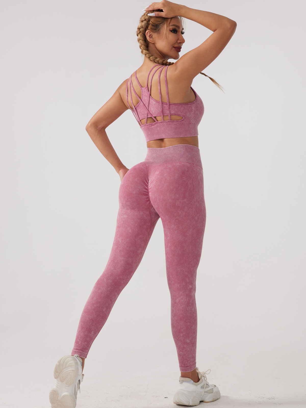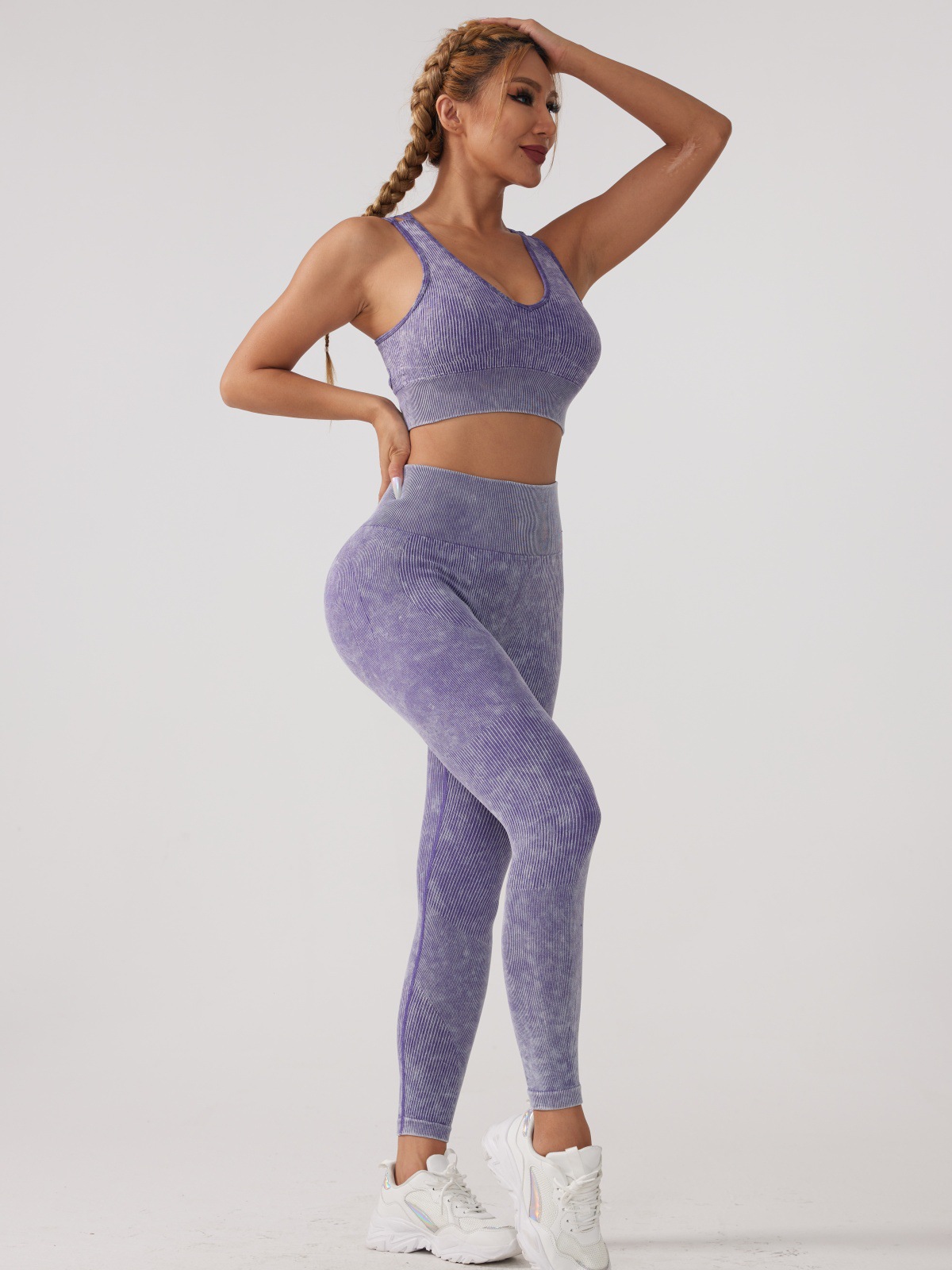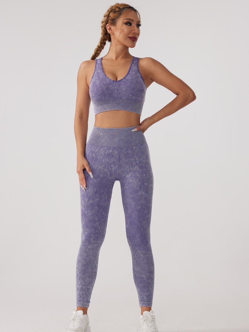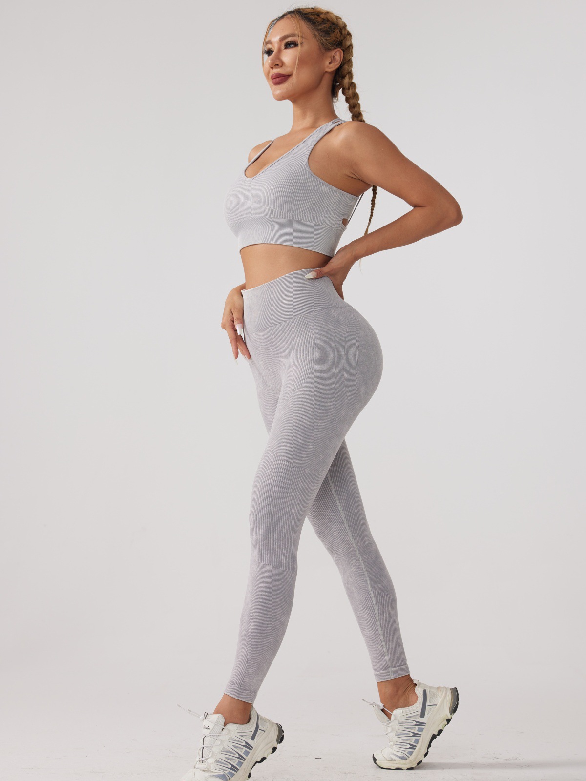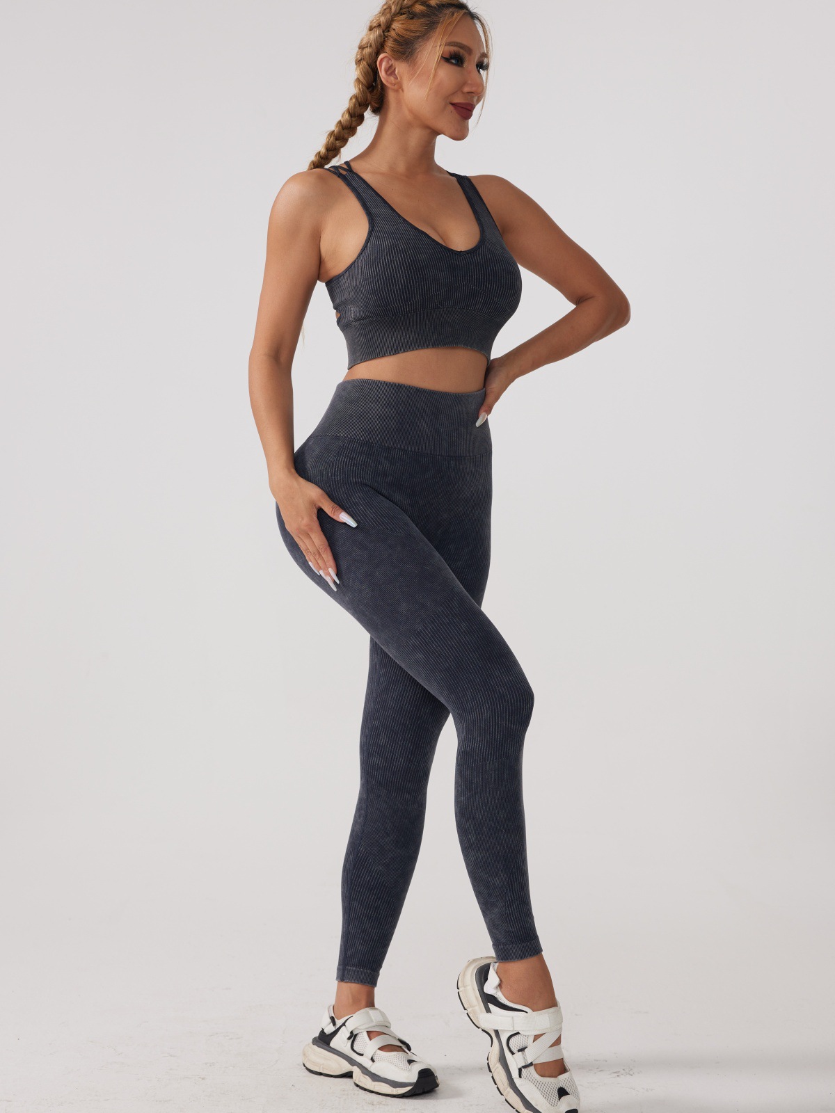 工厂现货 INS跨境新款砂洗无缝瑜伽服女运动文胸健身服高腰提臀裤