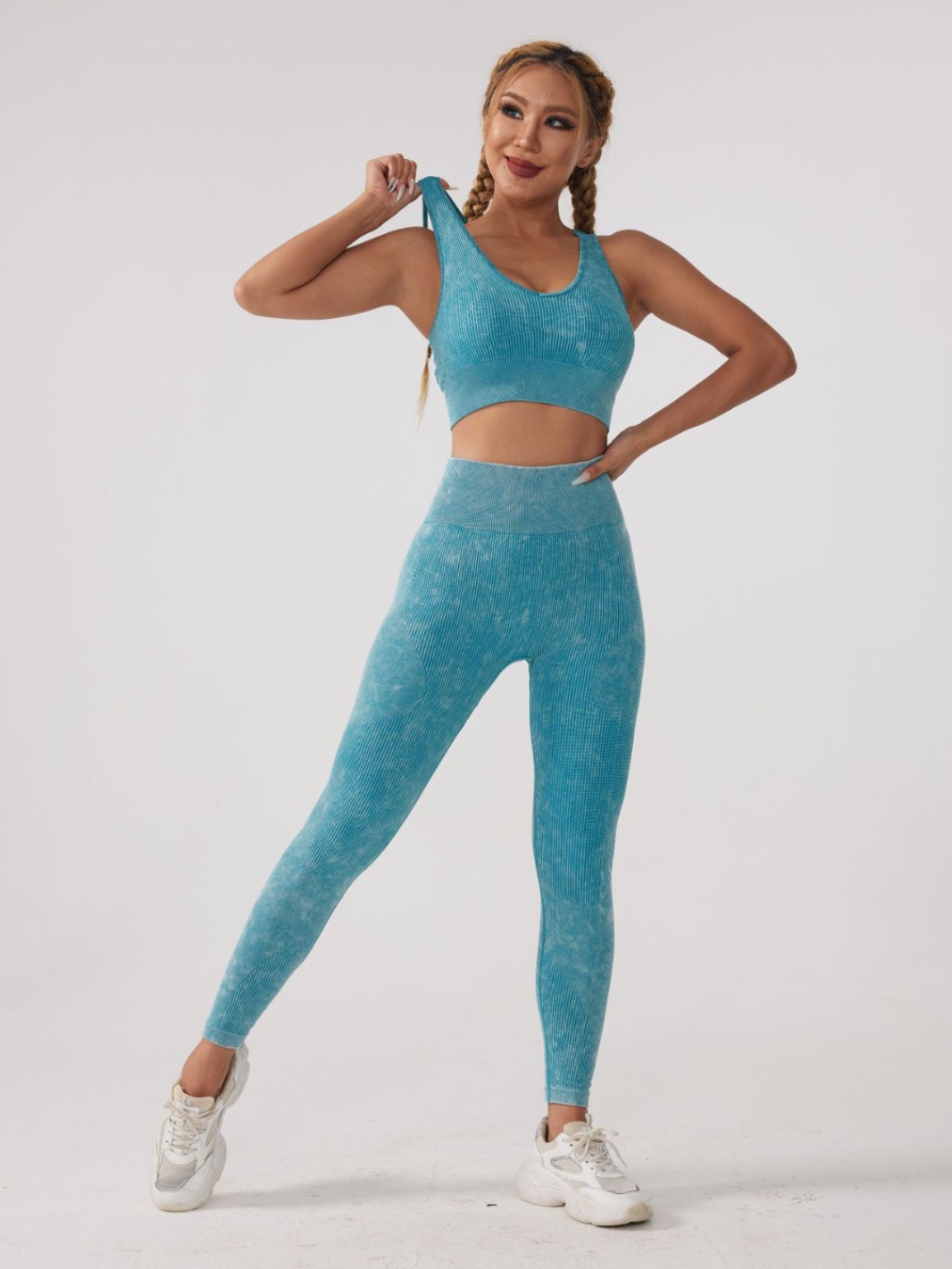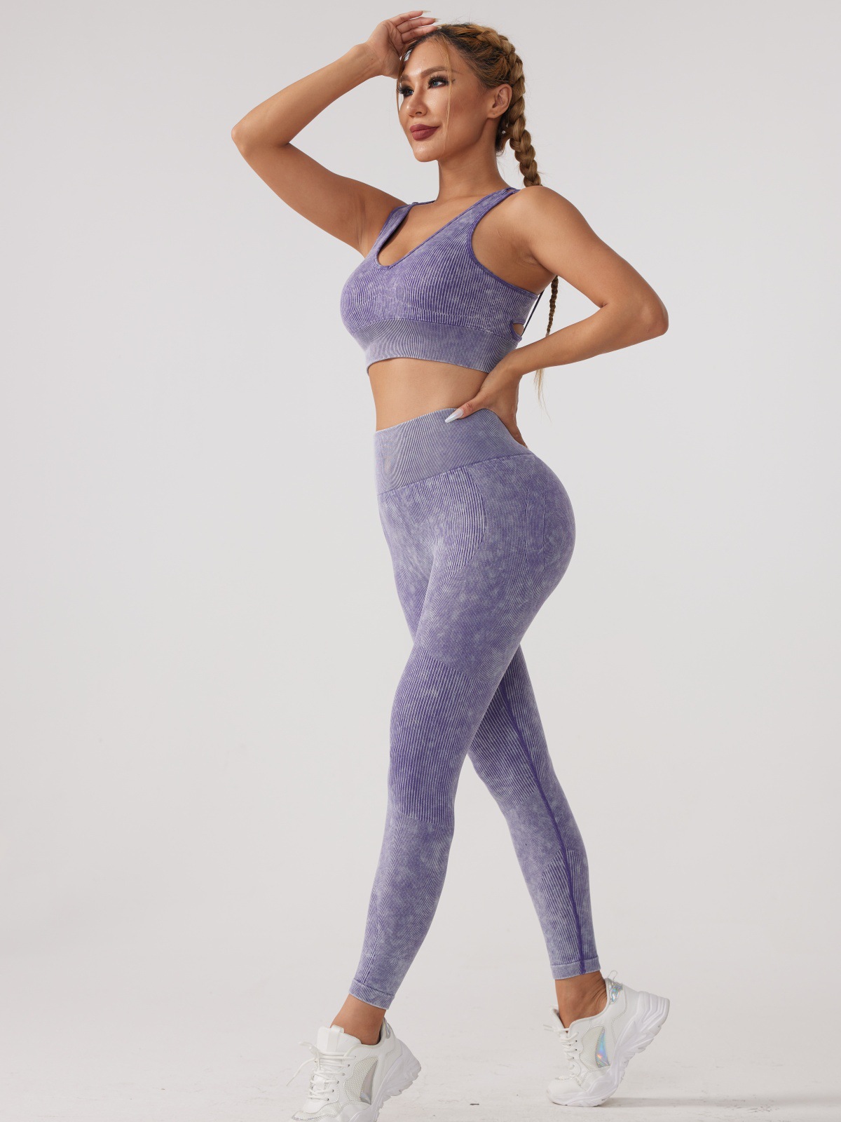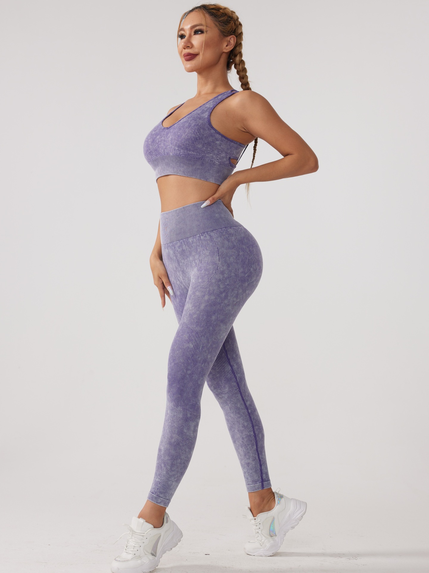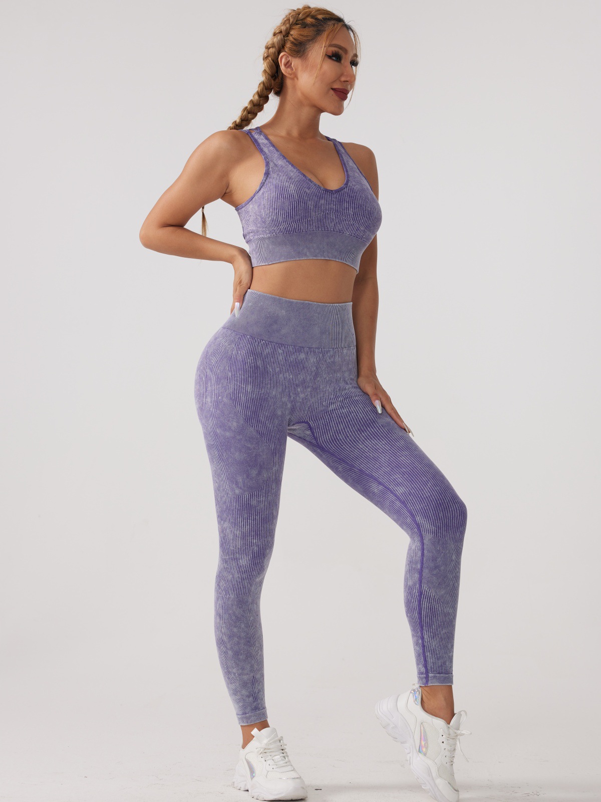工厂现货 INS跨境新款砂洗无缝瑜伽服女运动文胸健身服高腰提臀裤
