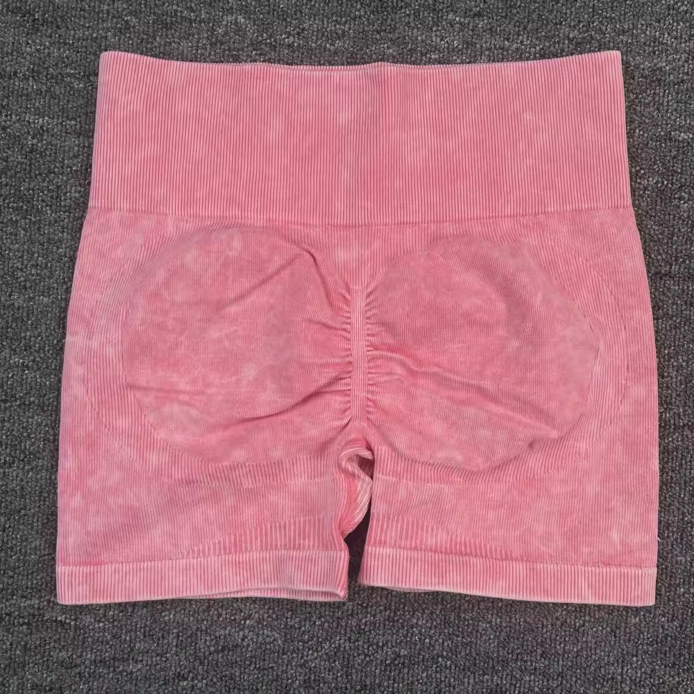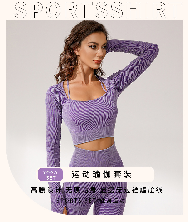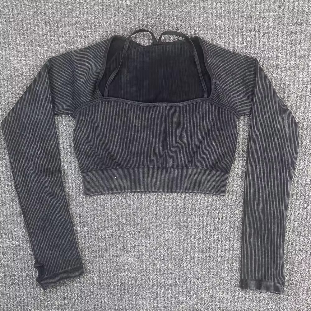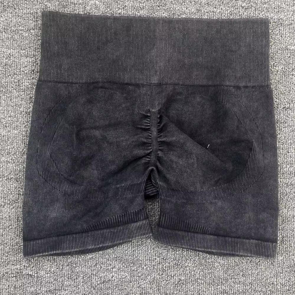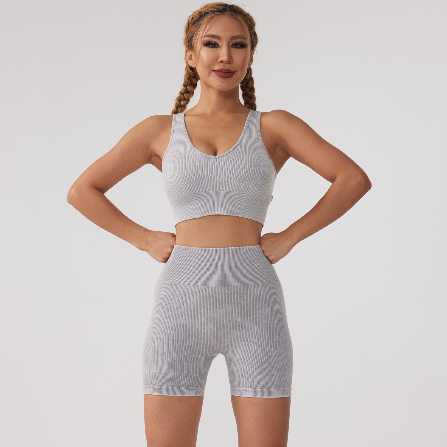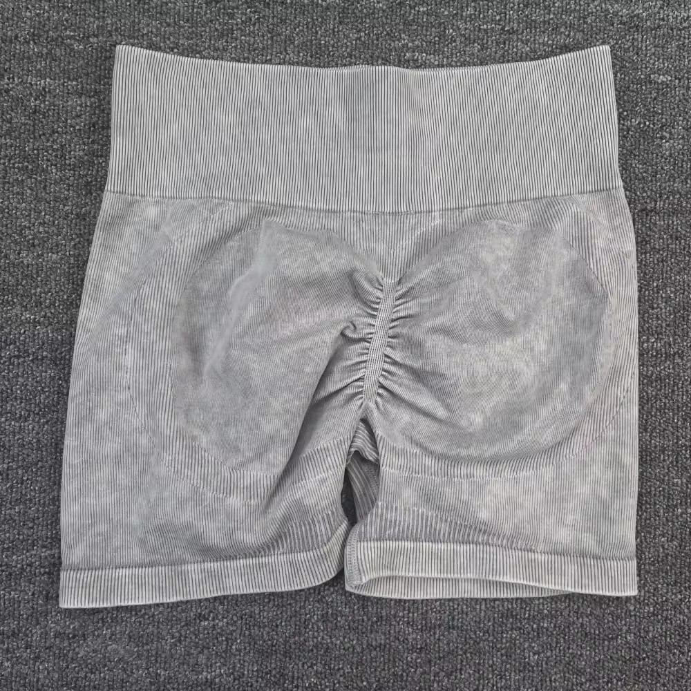 欧美跨境砂洗无缝螺纹性感长袖文胸上衣提臀短裤运动瑜伽裤套装女