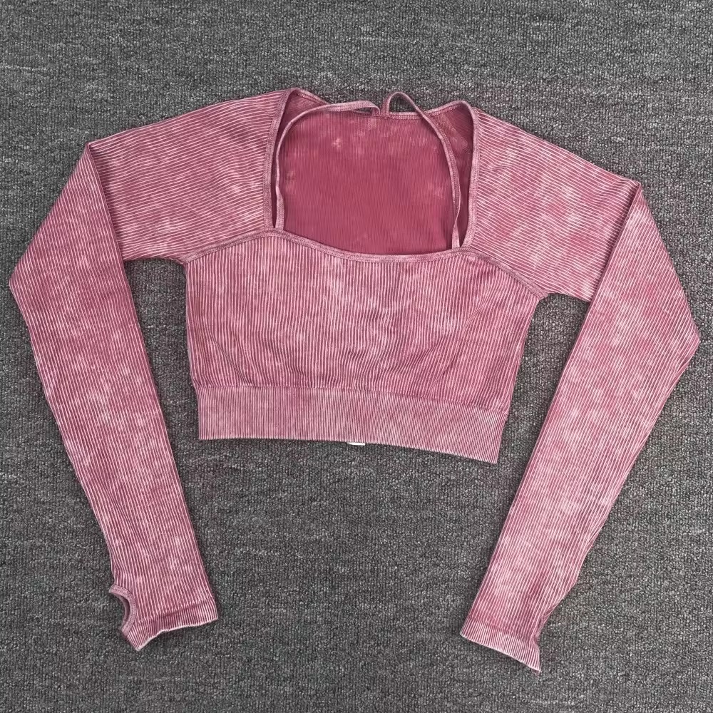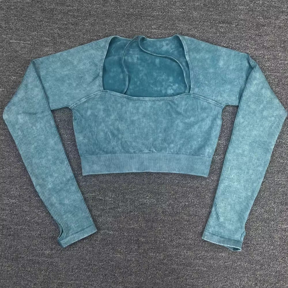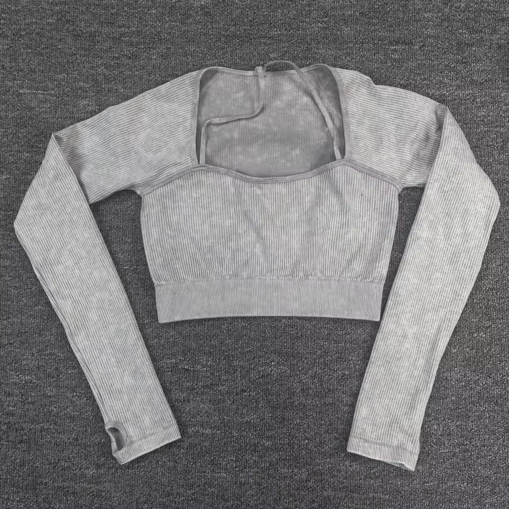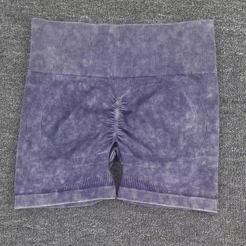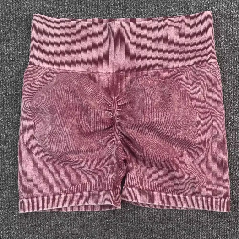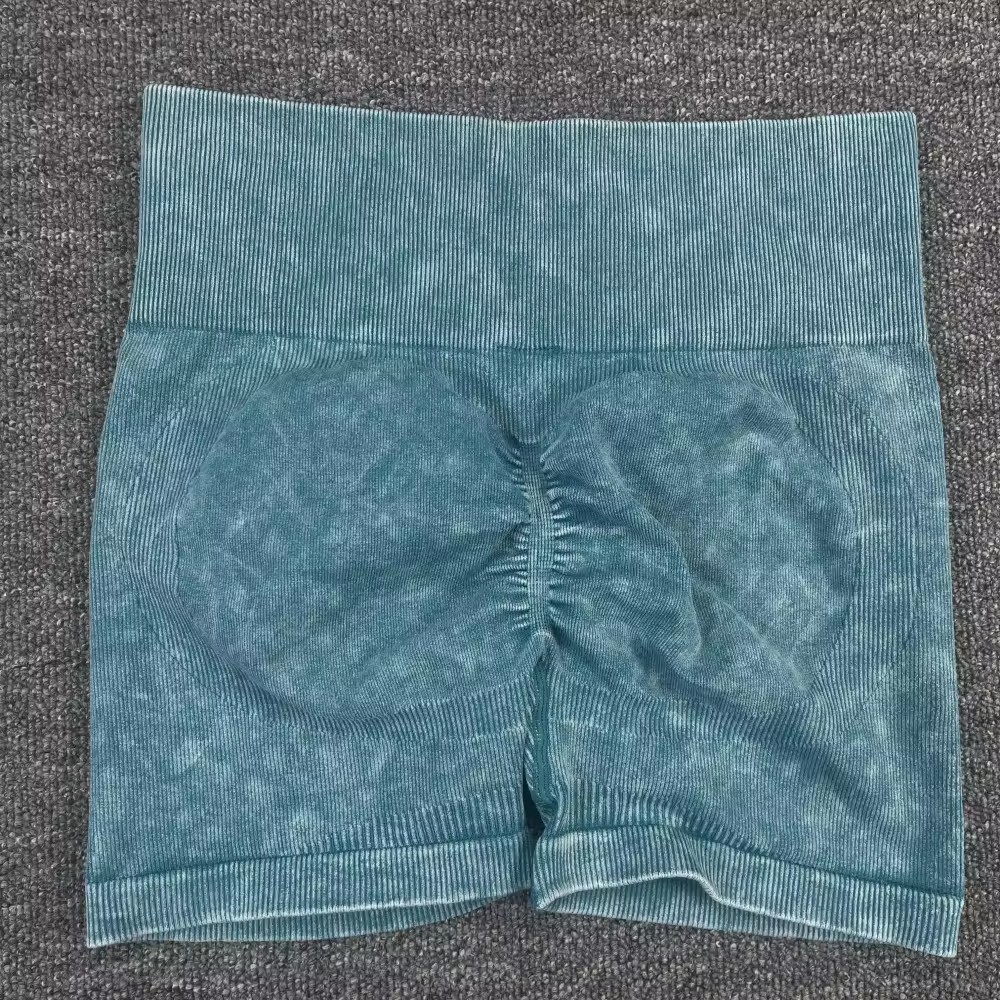 欧美跨境砂洗无缝螺纹性感长袖文胸上衣提臀短裤运动瑜伽裤套装女