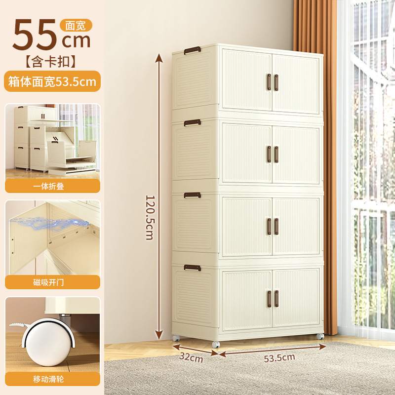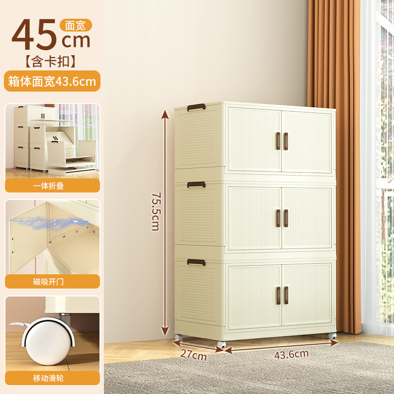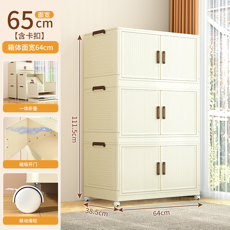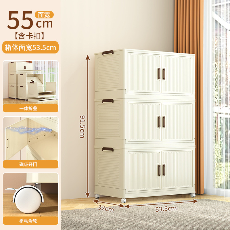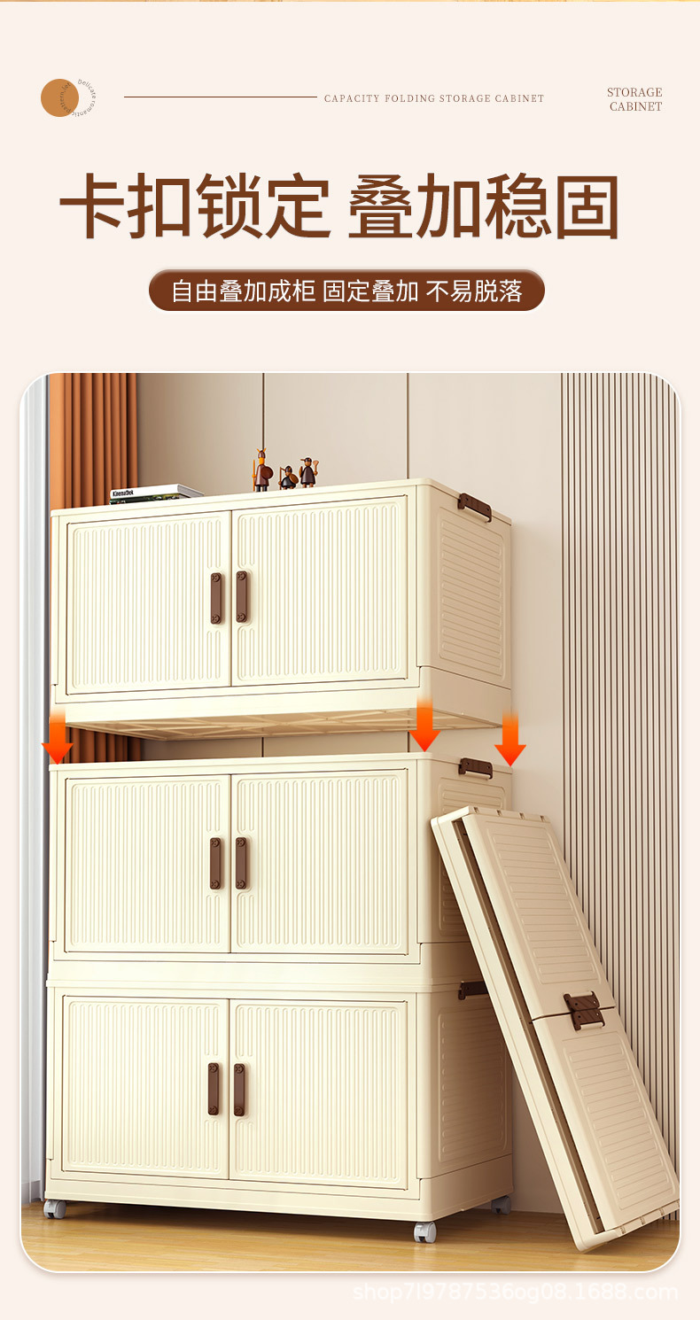 奶油风免安装折叠收纳柜家用儿童衣柜衣服整理零食玩具塑料收纳柜