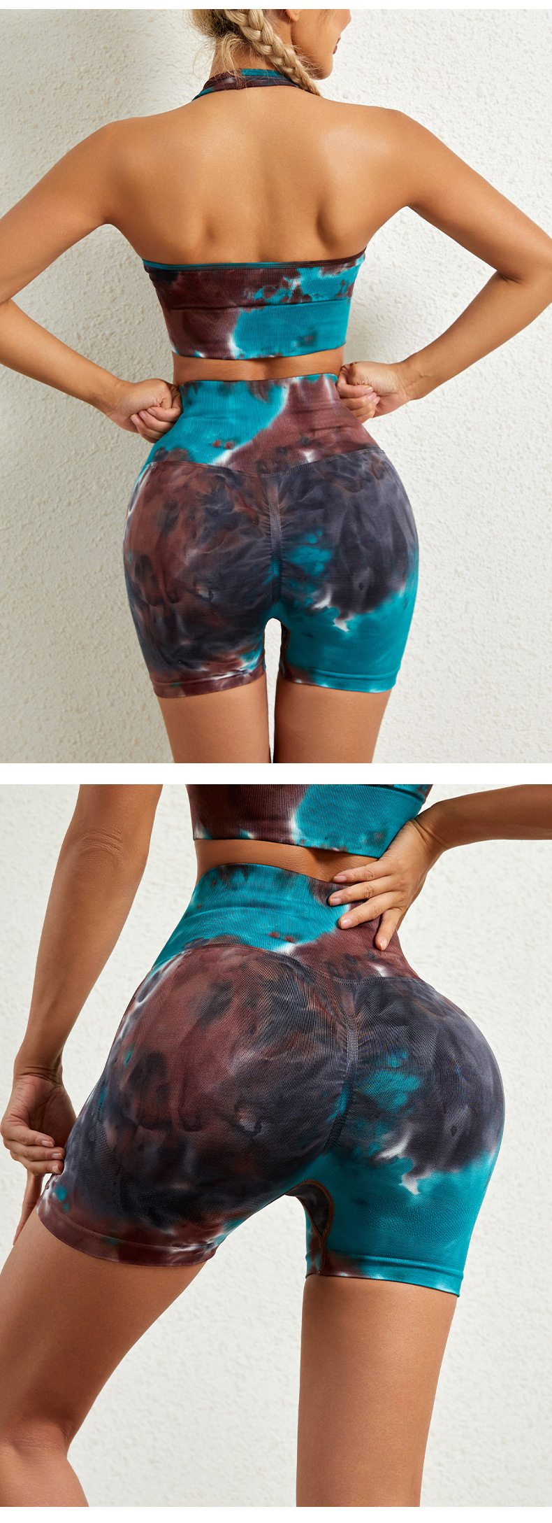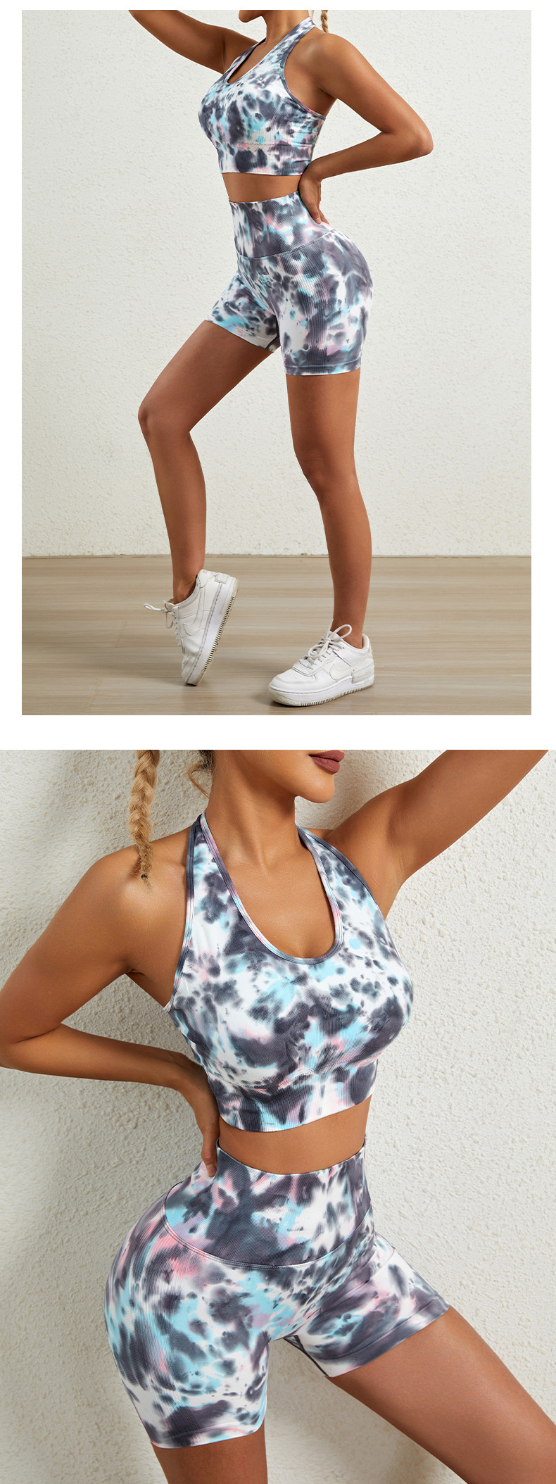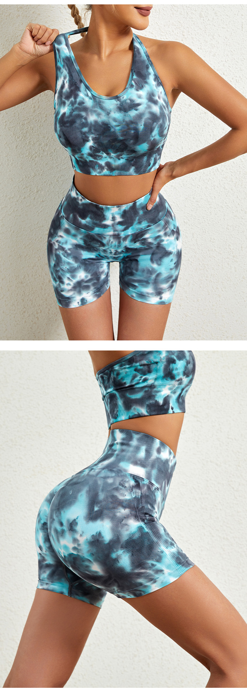 欧美无缝瑜伽服女健身套装高腰提臀健身长裤扎染运动背心跑步短裤