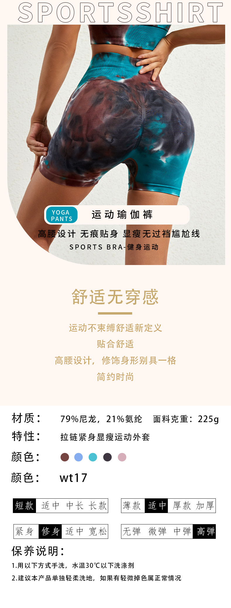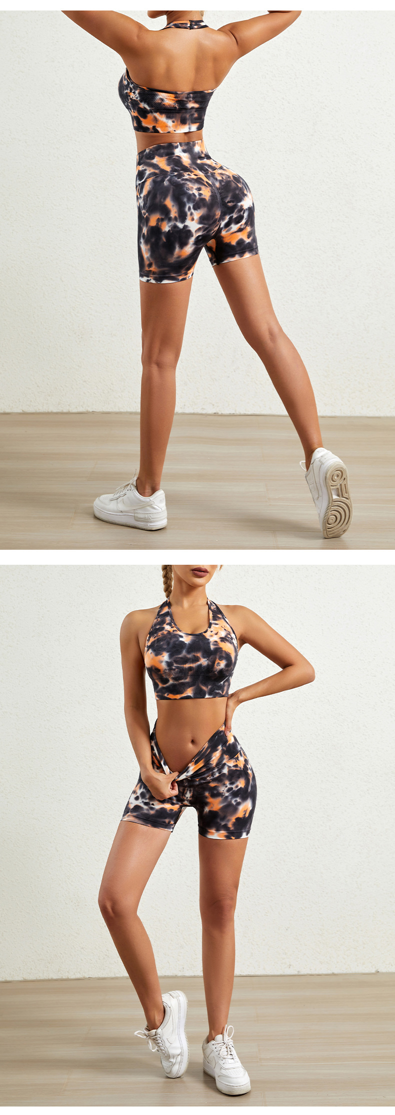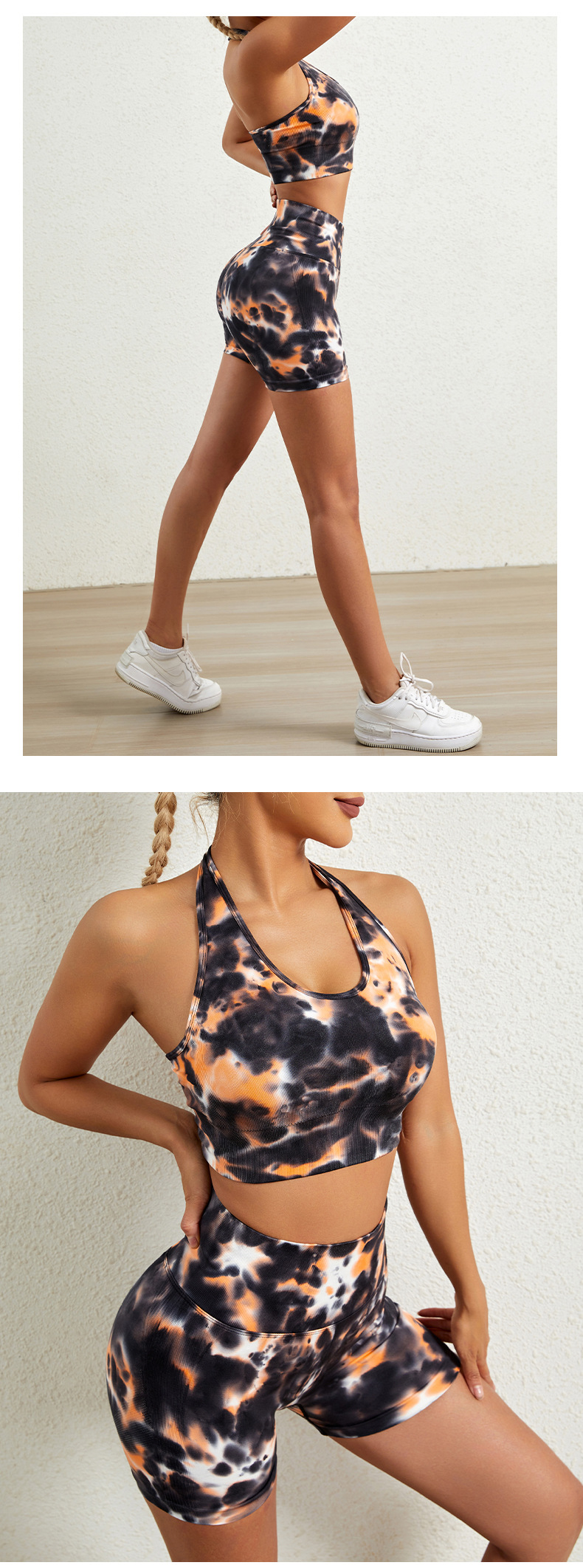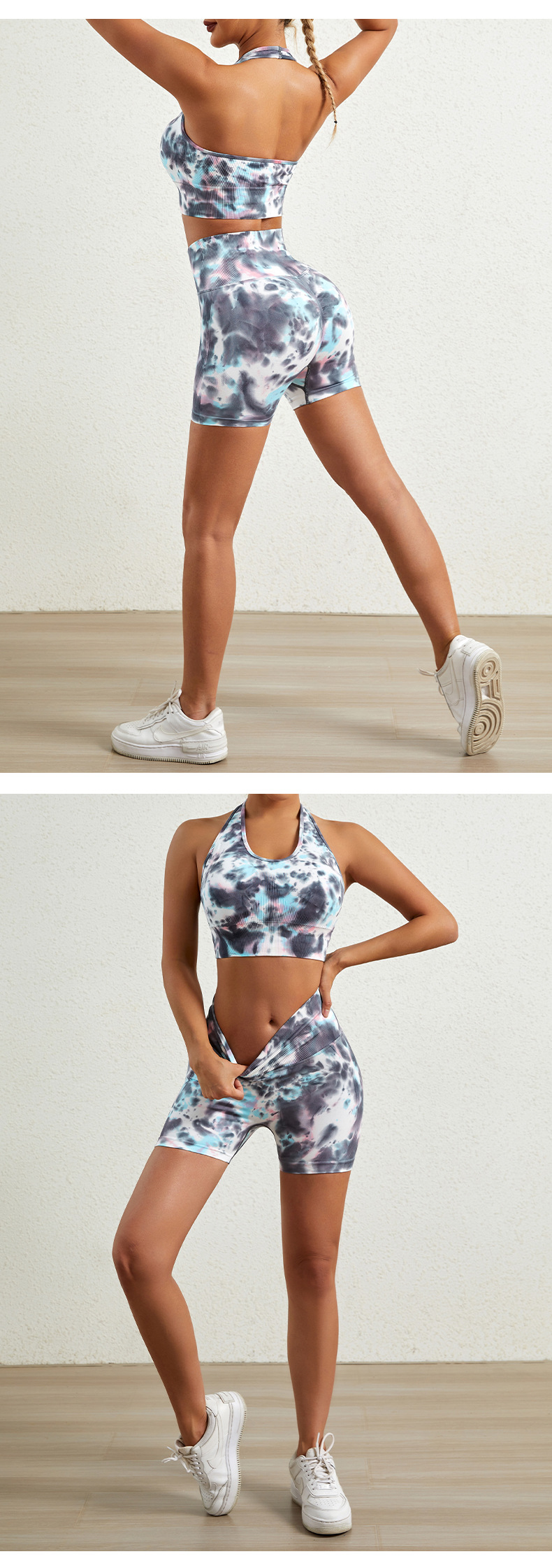 欧美无缝瑜伽服女健身套装高腰提臀健身长裤扎染运动背心跑步短裤