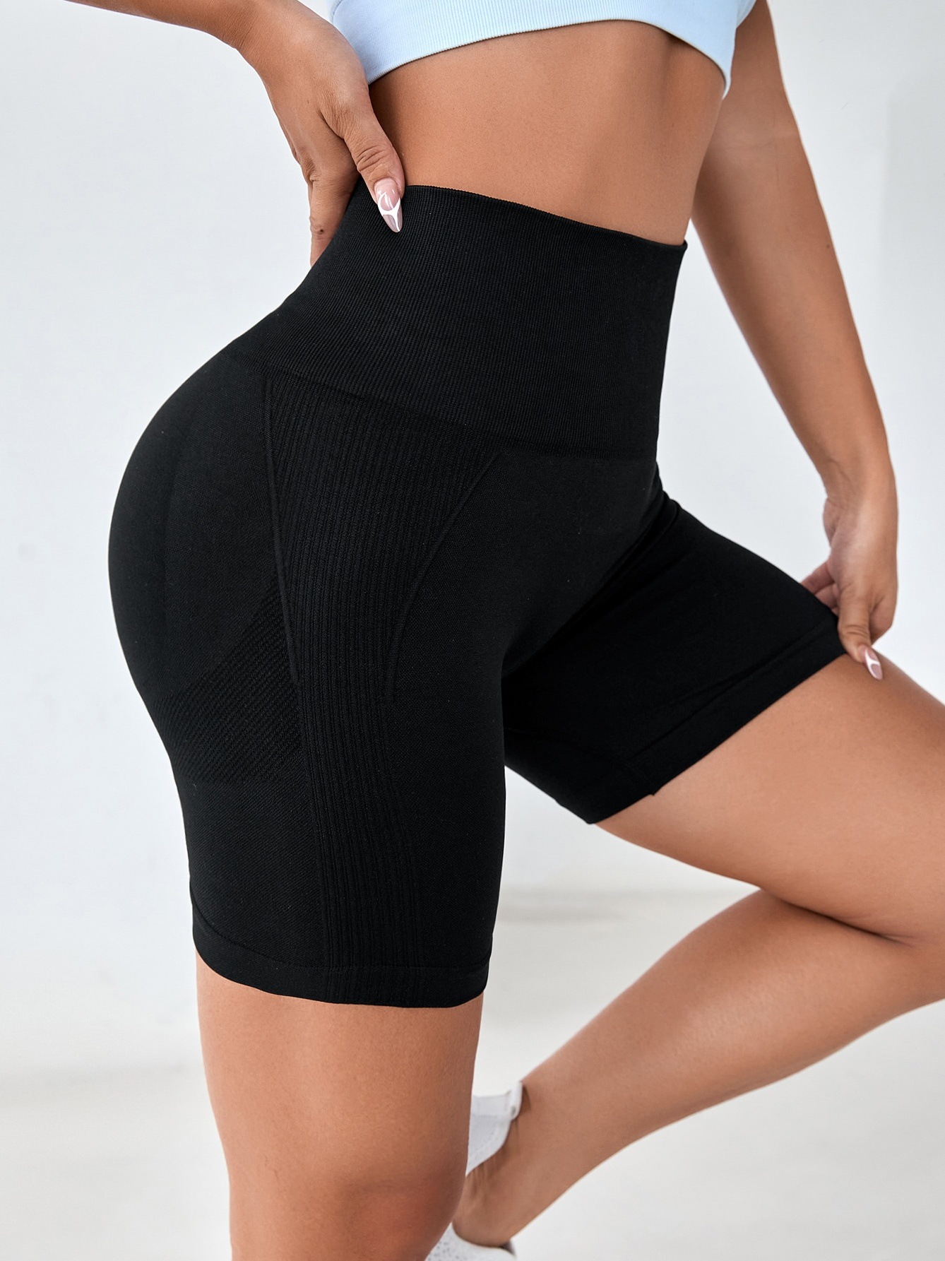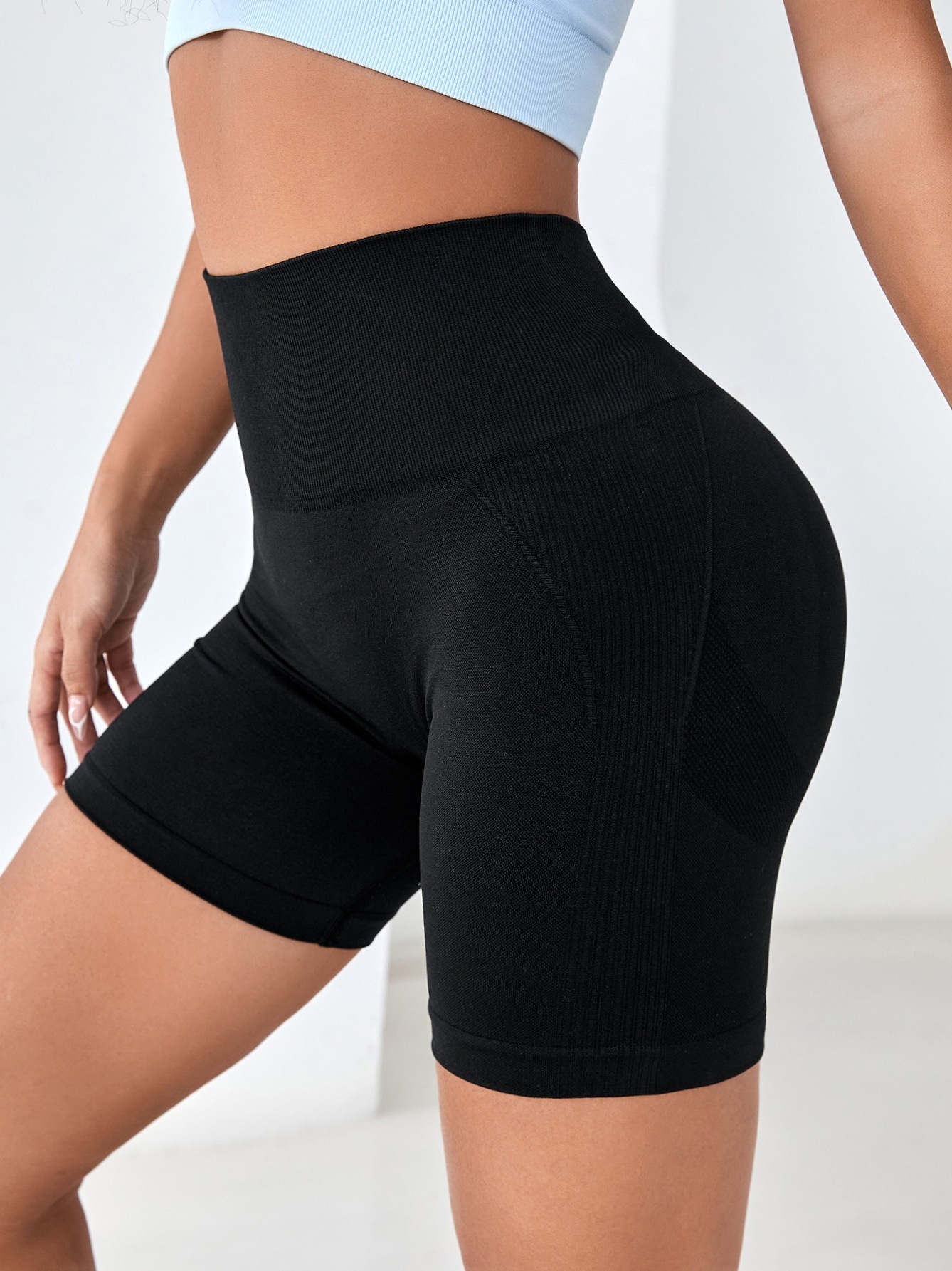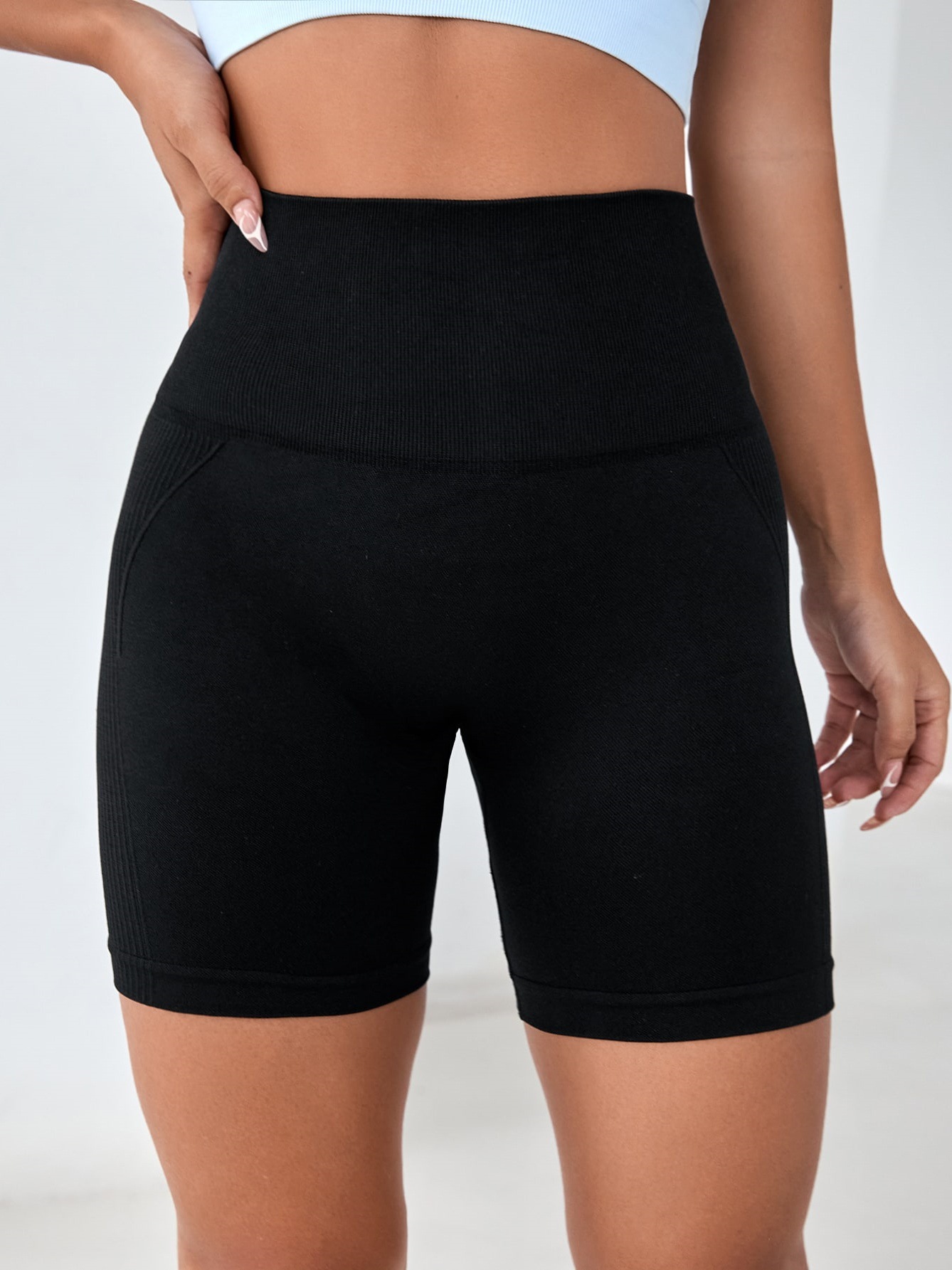 跨境欧美无缝针织蜜桃笑脸纯色透气三分瑜伽裤跑步健身运动短裤女