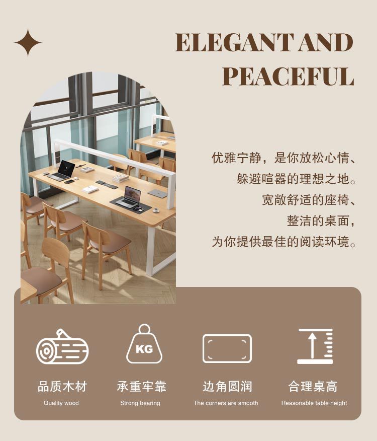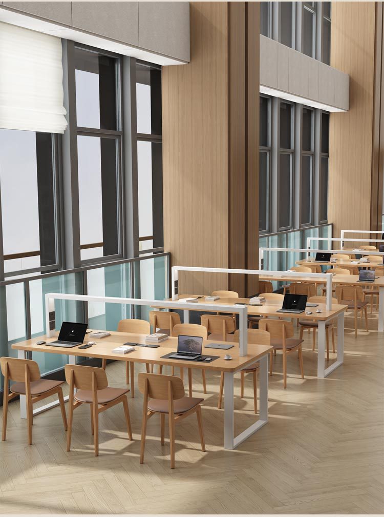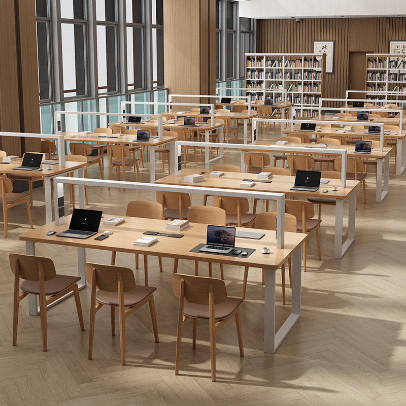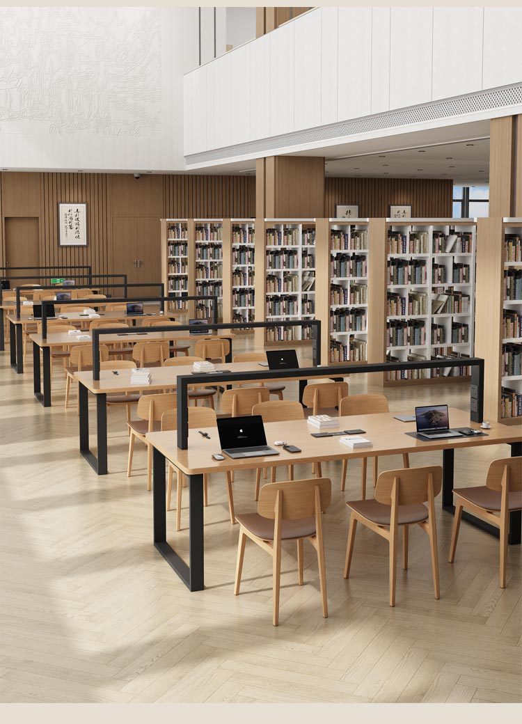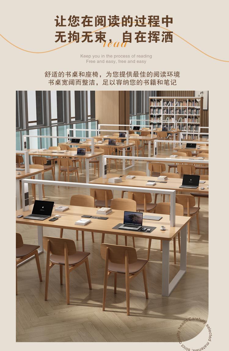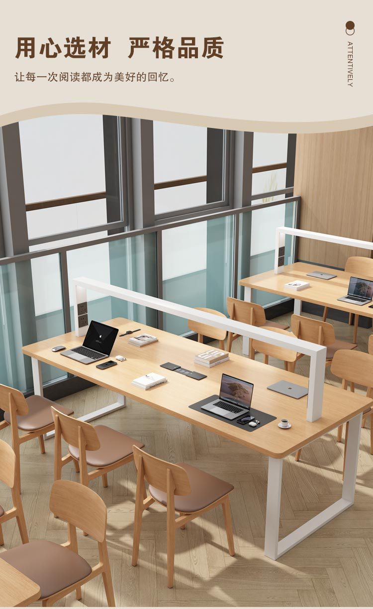 图书馆阅览桌学校大学考研自习室书店办公桌椅组合实木带灯阅读桌