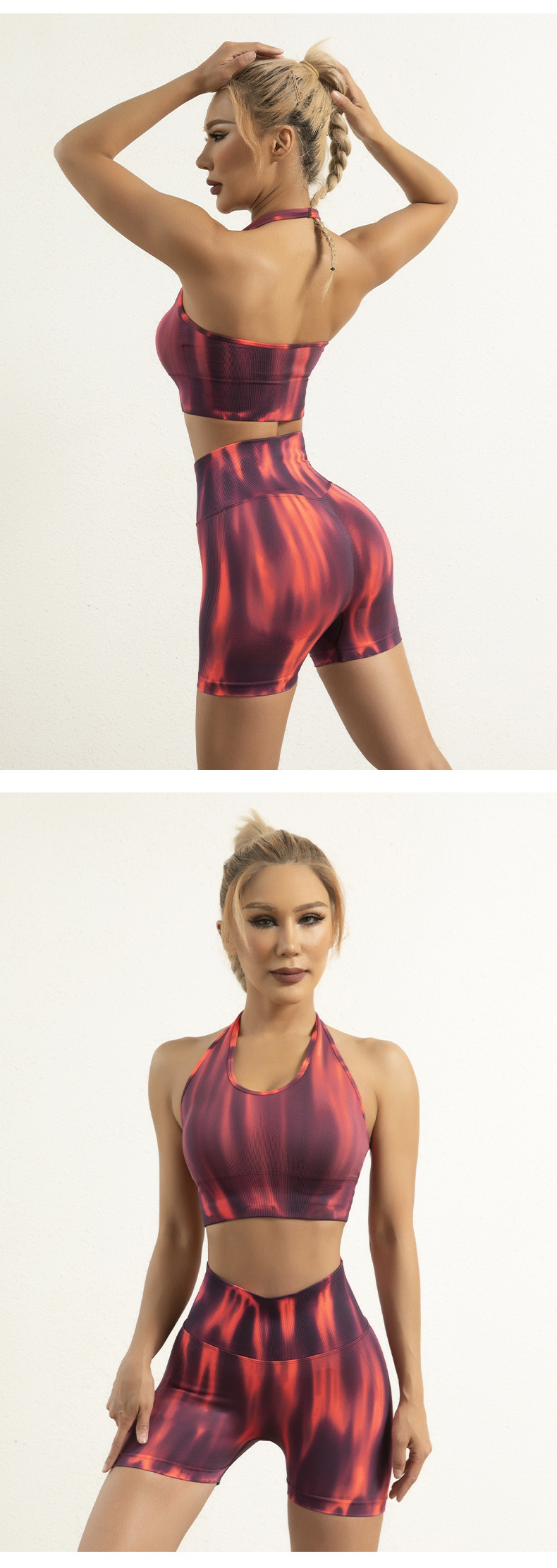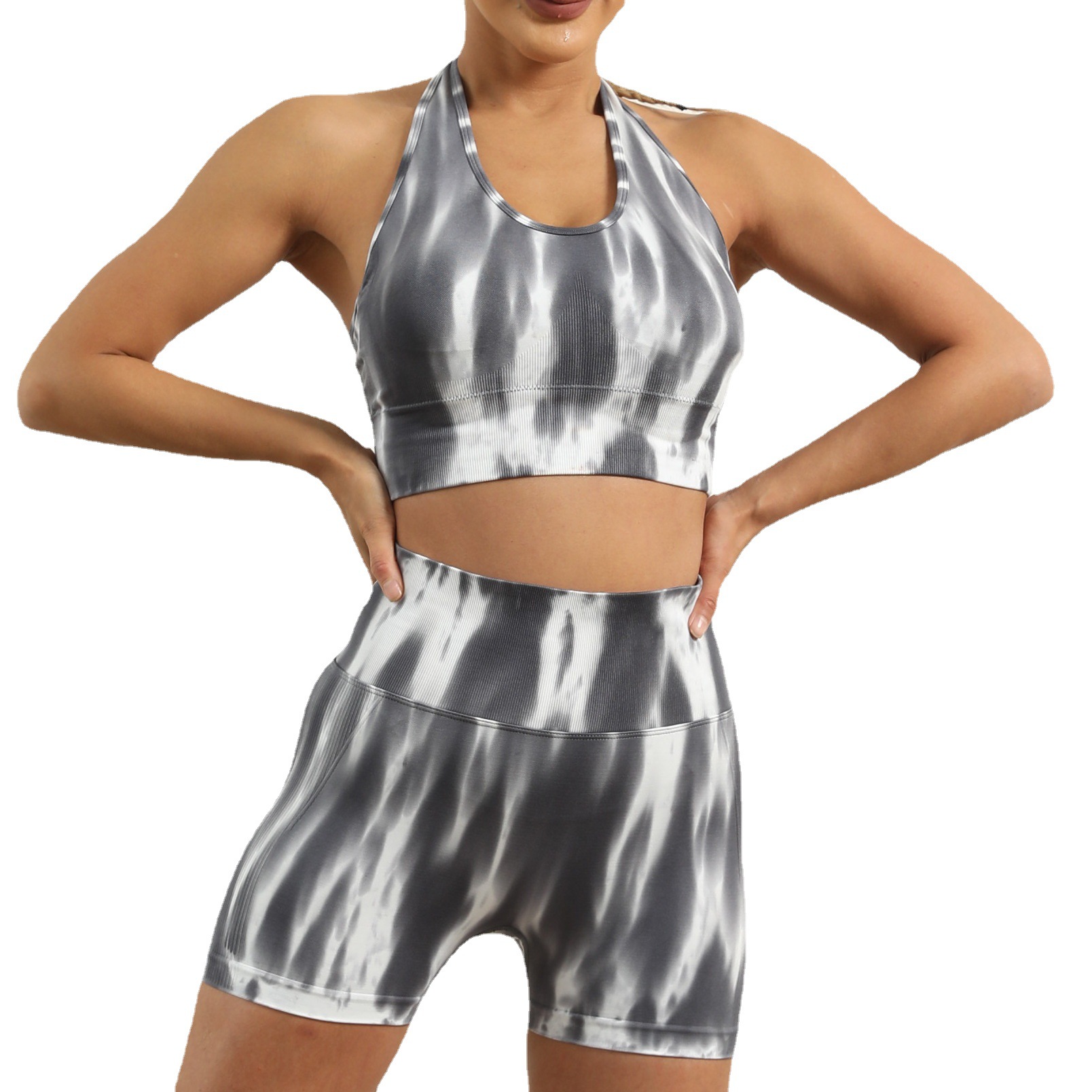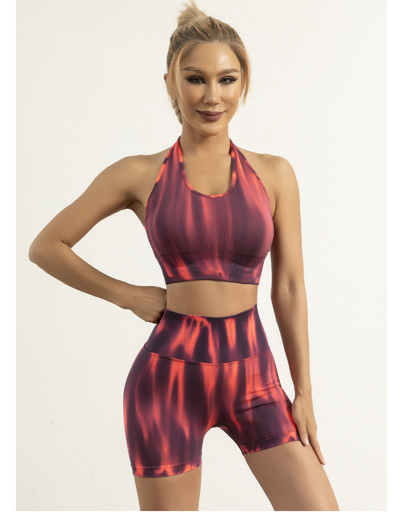 跨境欧美扎染无缝瑜伽服高腰提臀跑步短裤性感美背心文胸运动套装