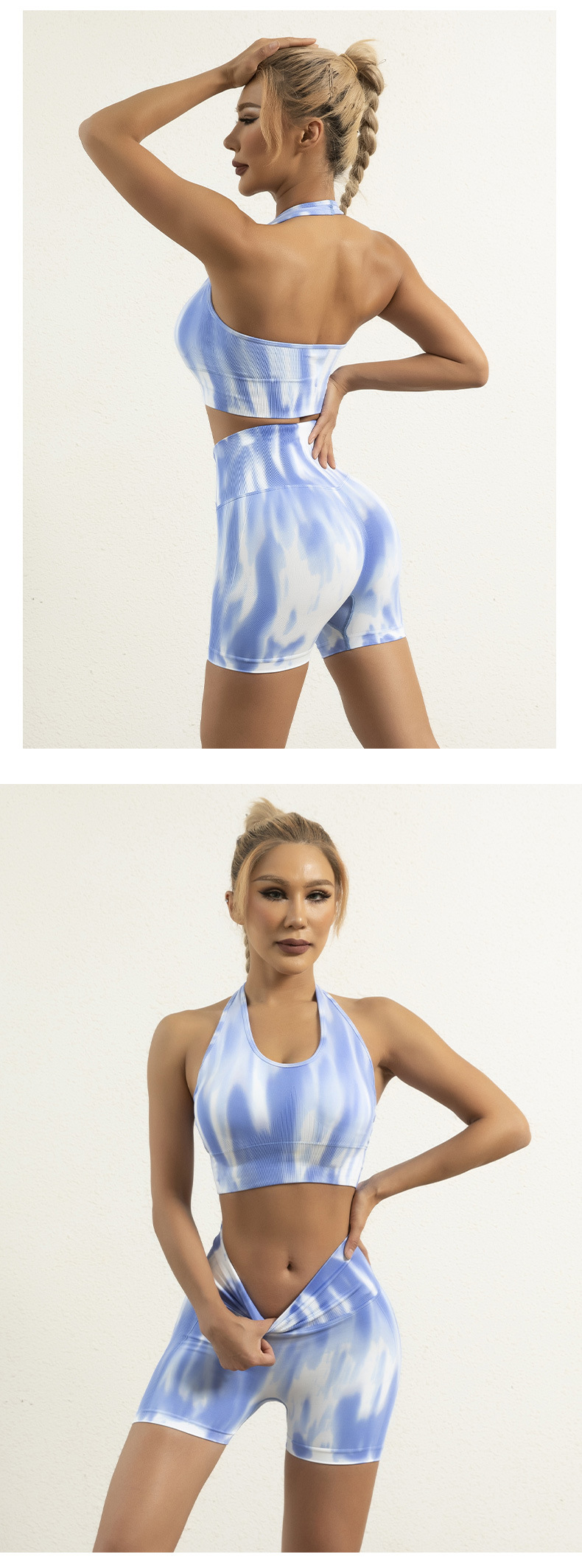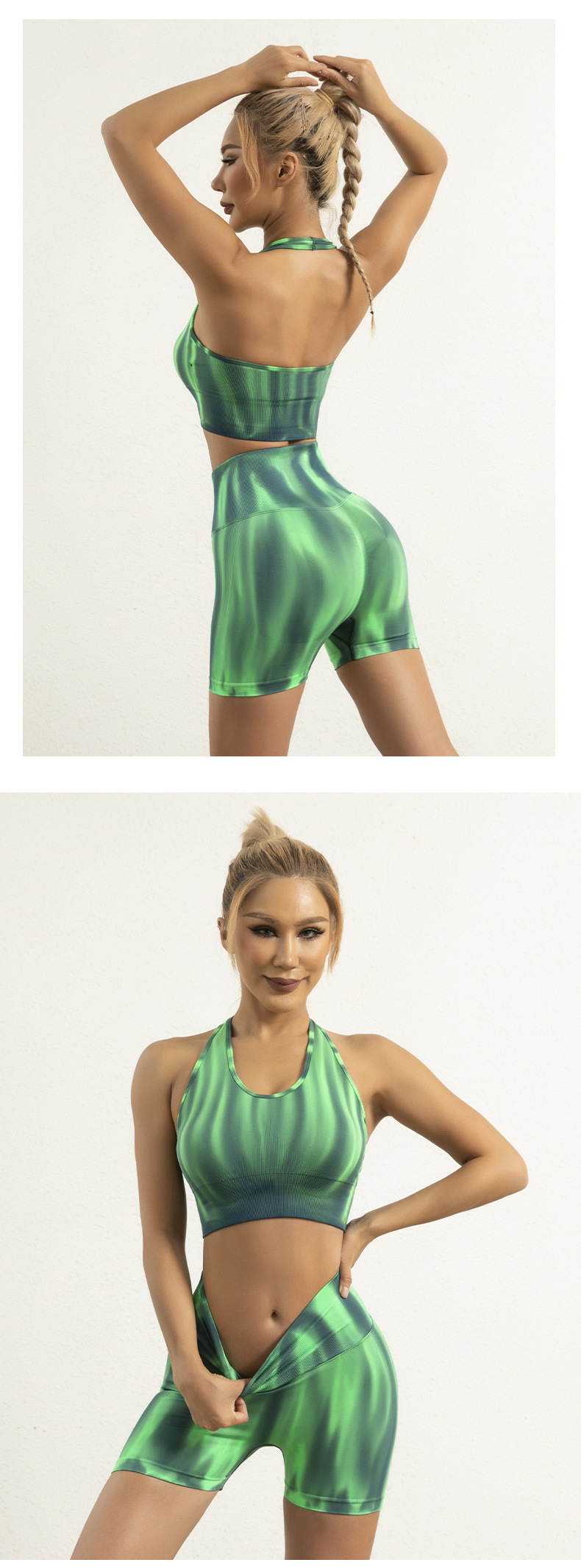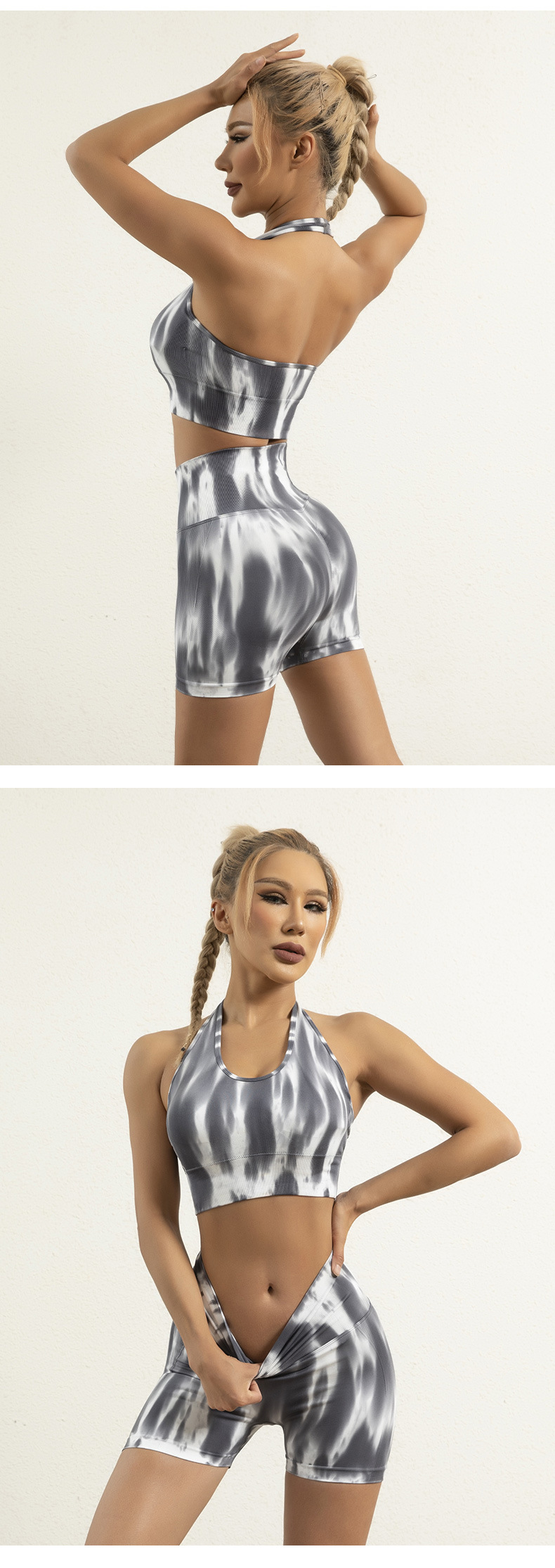 跨境欧美扎染无缝瑜伽服高腰提臀跑步短裤性感美背心文胸运动套装