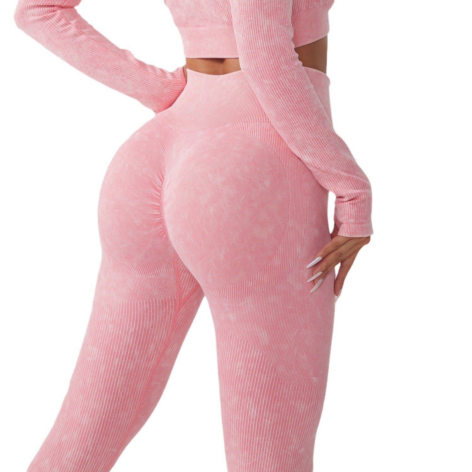 现货砂洗无缝蜜桃臀瑜伽裤收腹高腰提臀健身裤女跑步运动瑜伽长裤