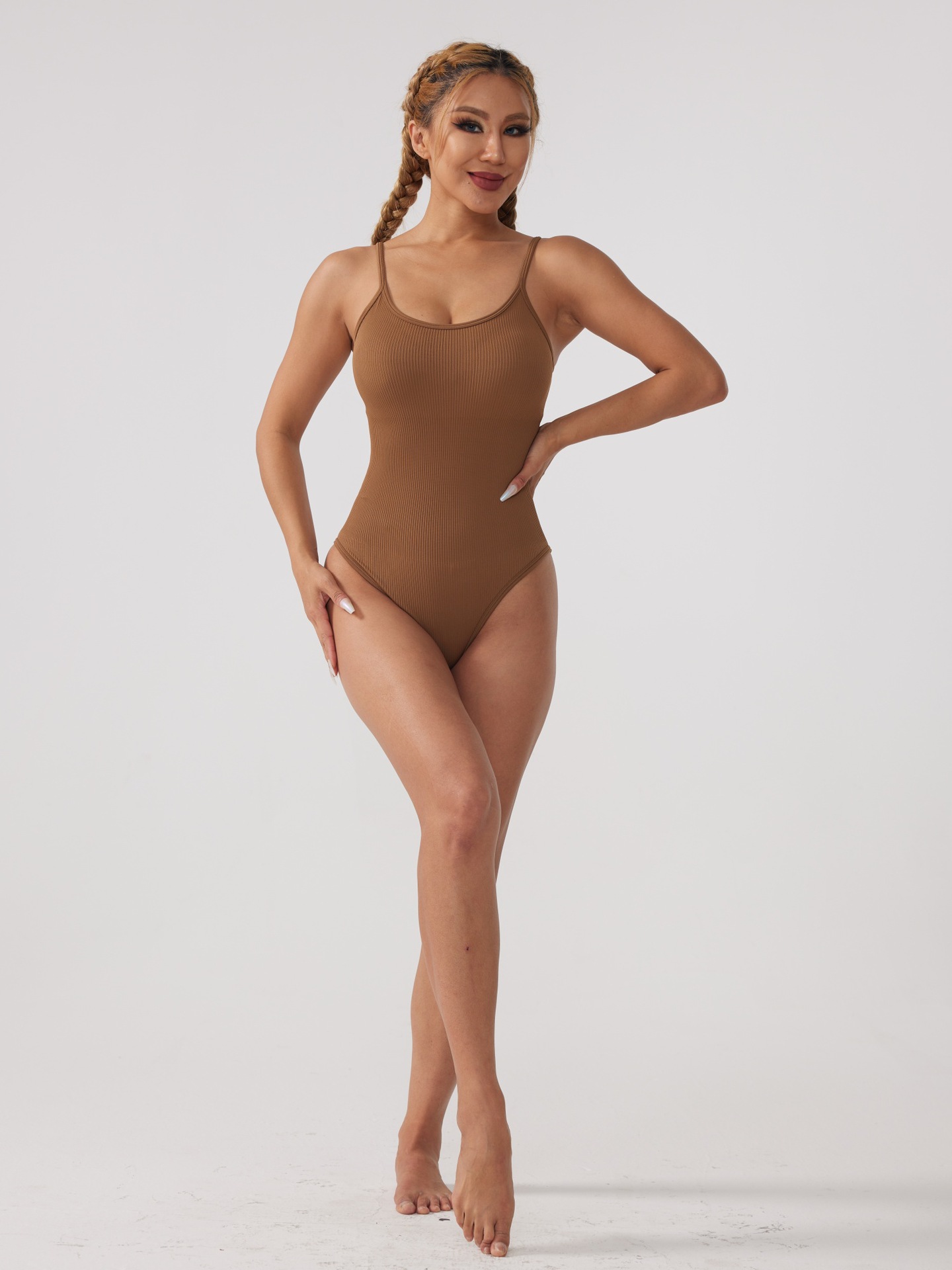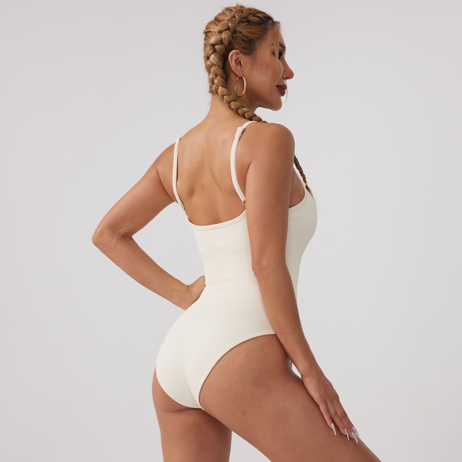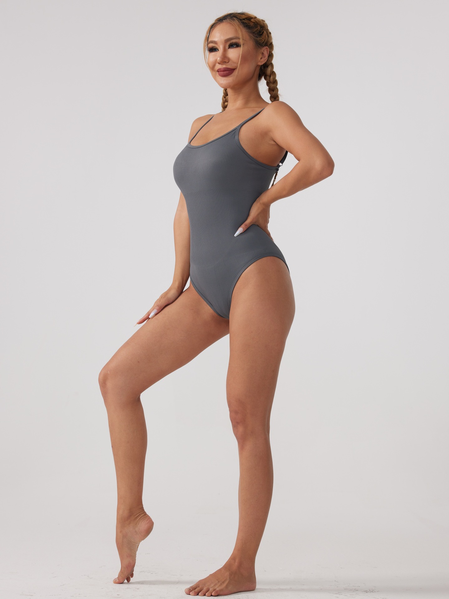 现货亚马逊吊带螺纹三角裤连体衣美体瑜伽服速干透气紧身丁字连体