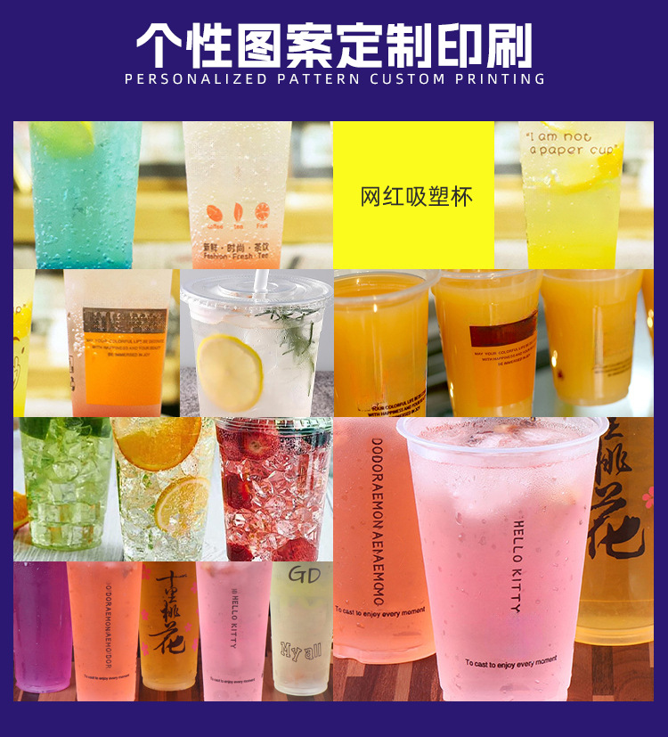 奶茶杯柠檬茶杯98PET冷饮杯 塑料杯咖啡杯冰杯一次性杯子有盖定制