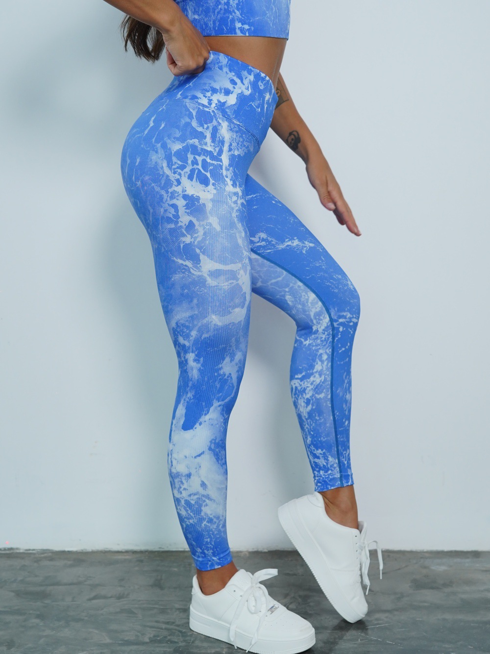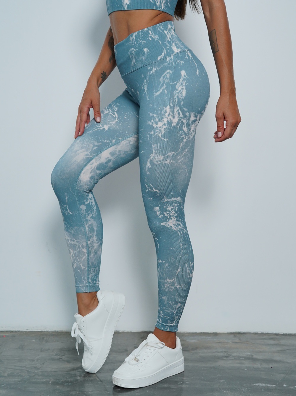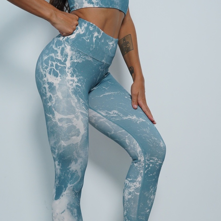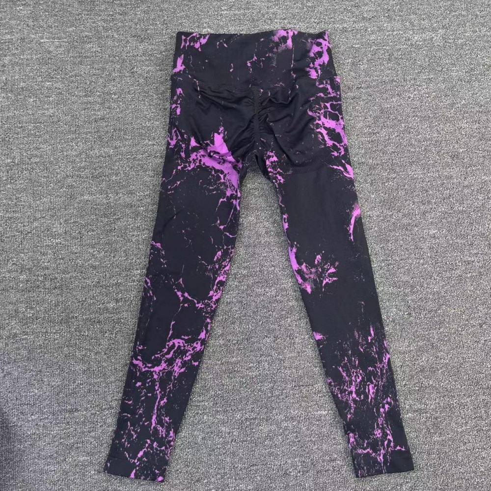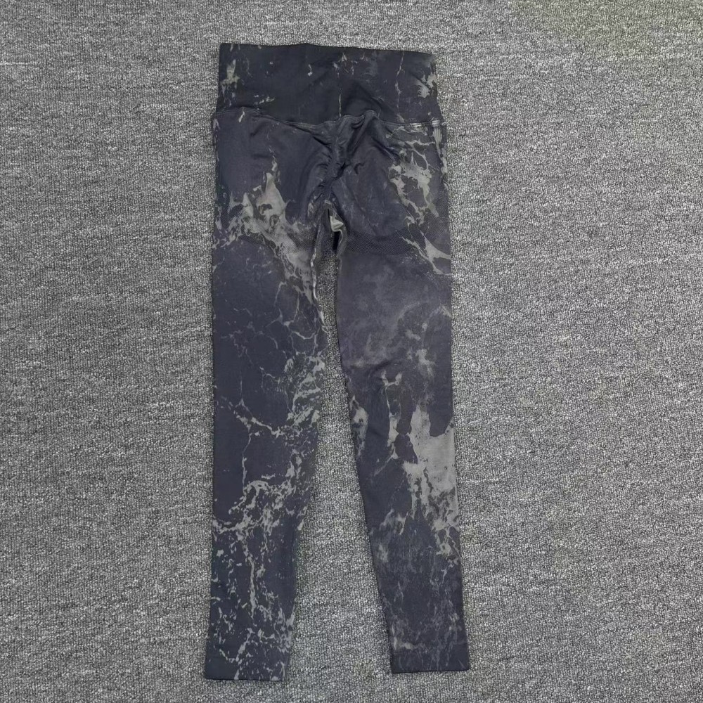修身欧美无缝瑜伽裤数码印花蜜桃提臀健身裤女跑步运动紧身长裤