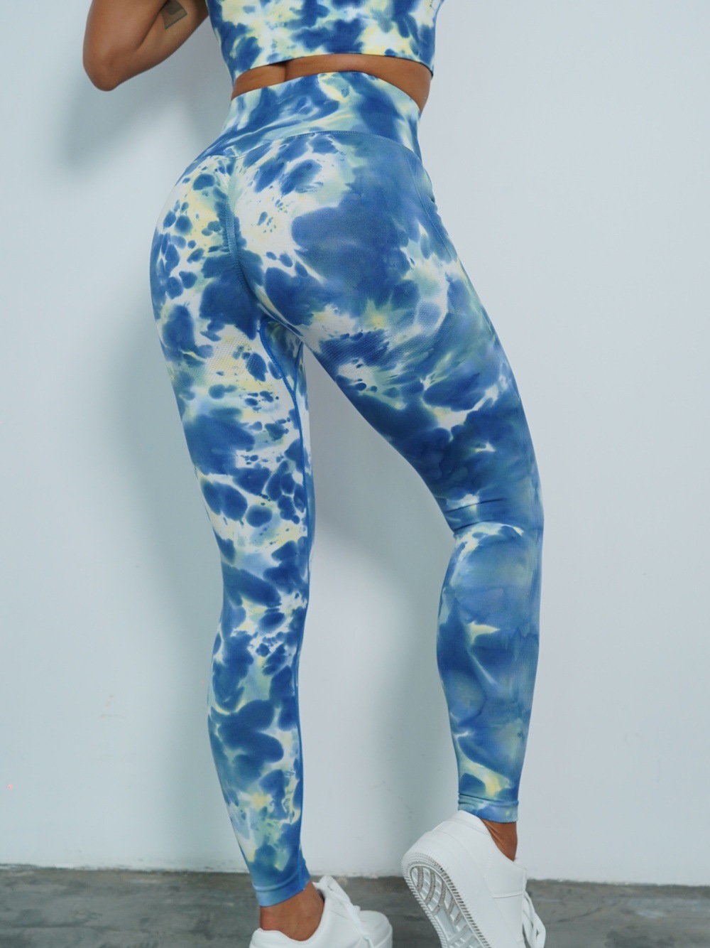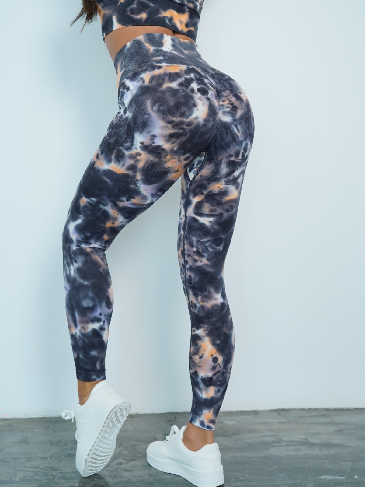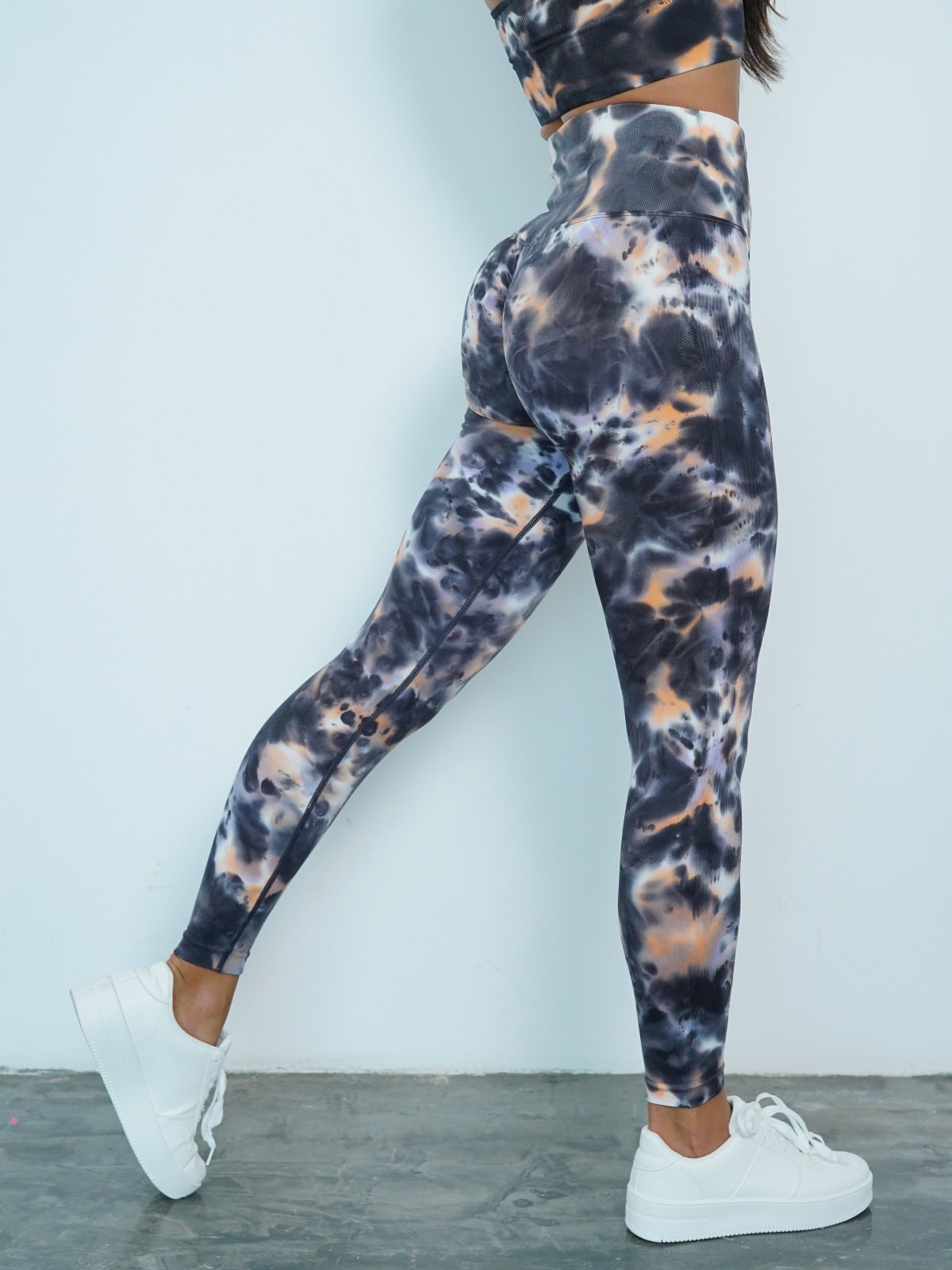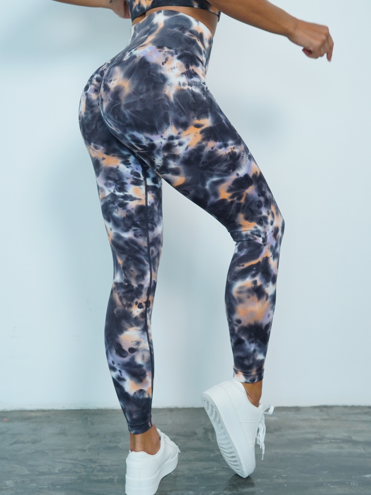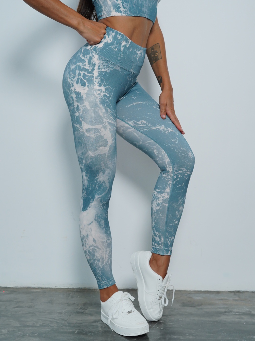 修身欧美无缝瑜伽裤数码印花蜜桃提臀健身裤女跑步运动紧身长裤