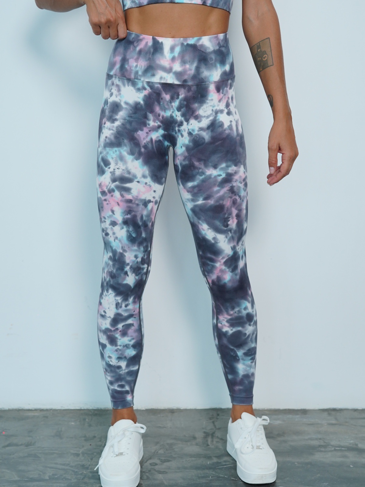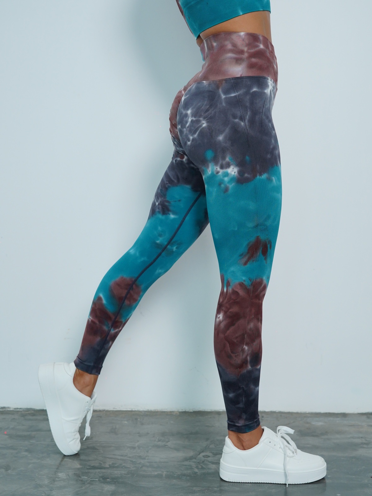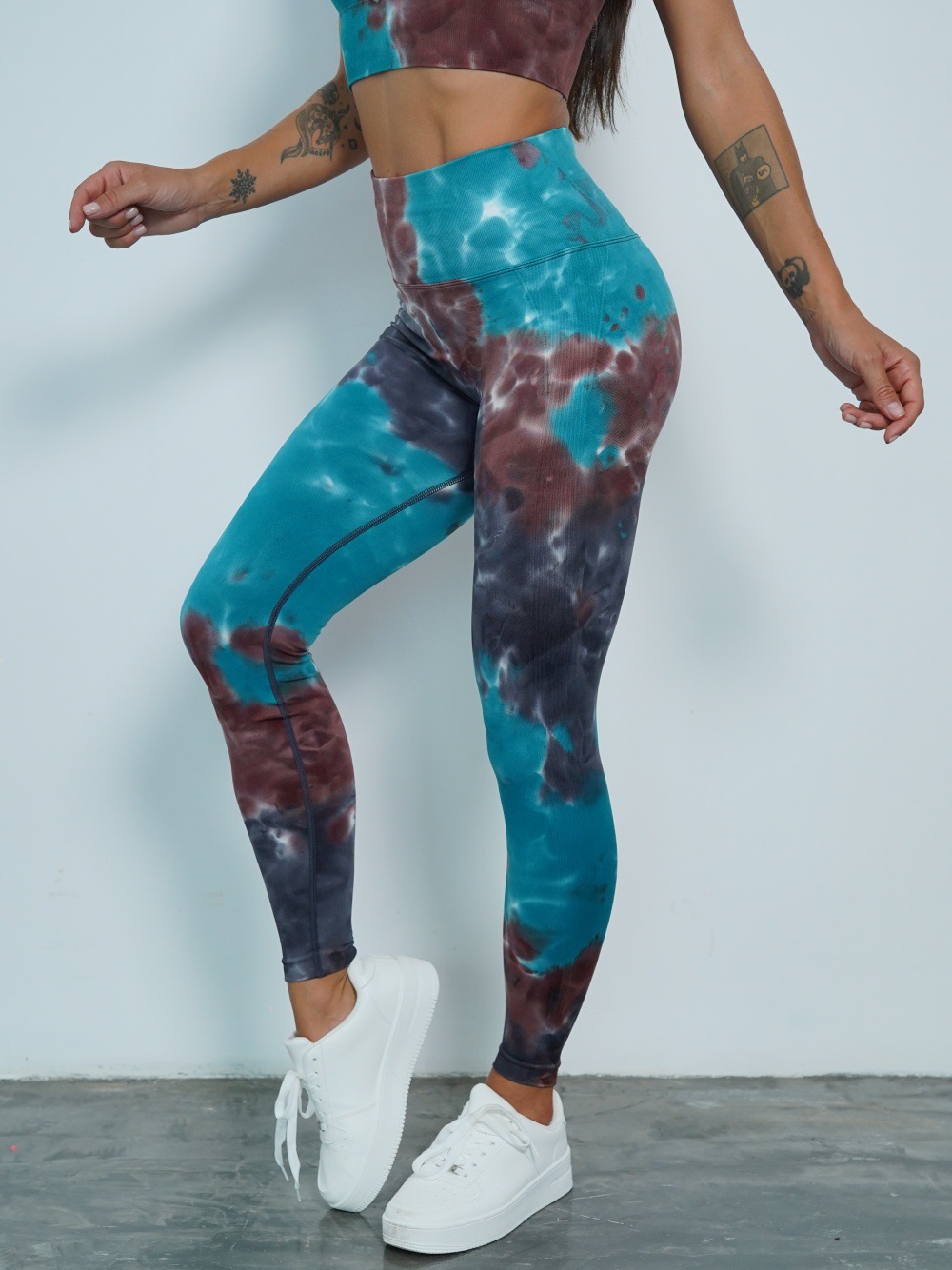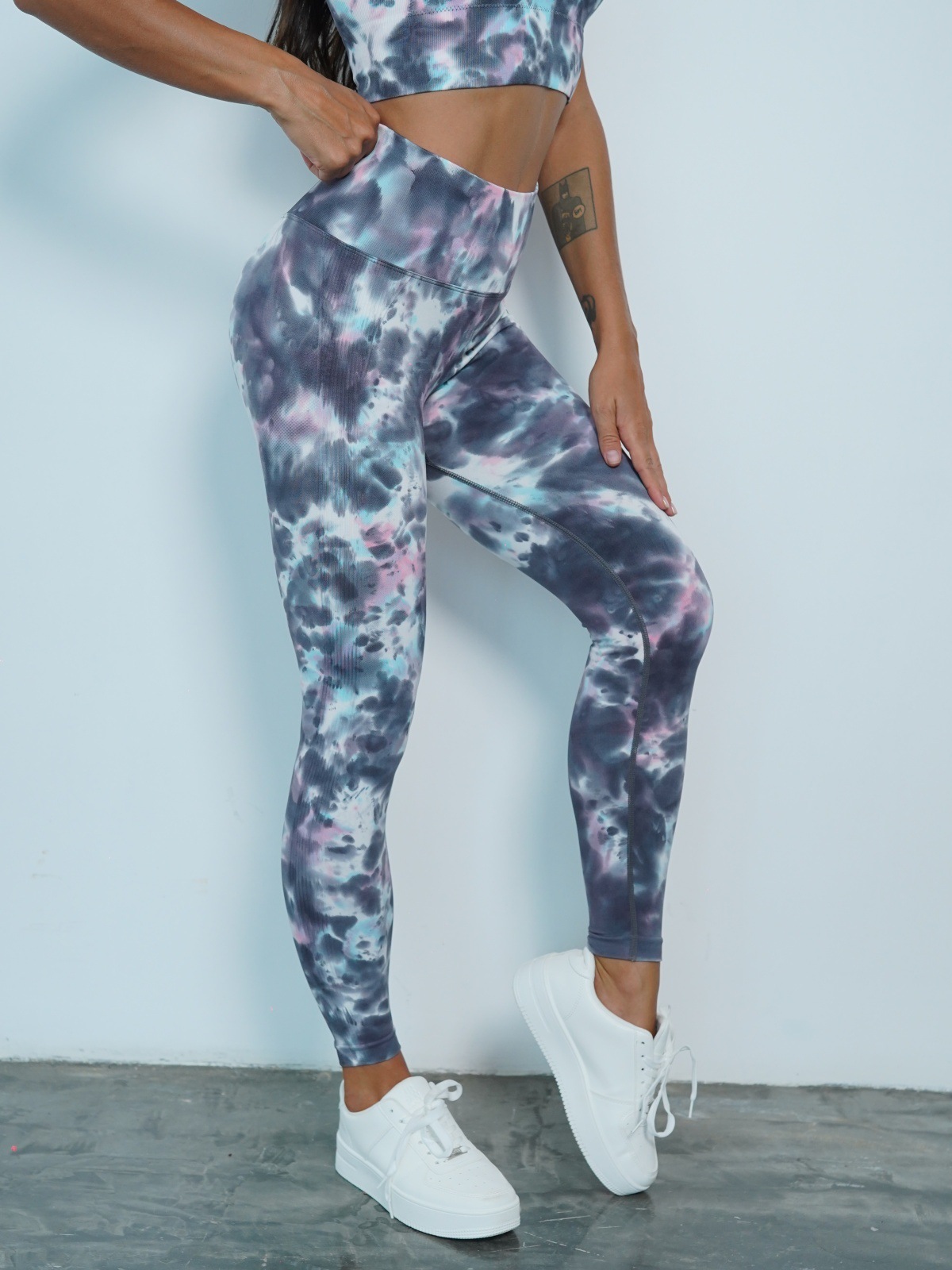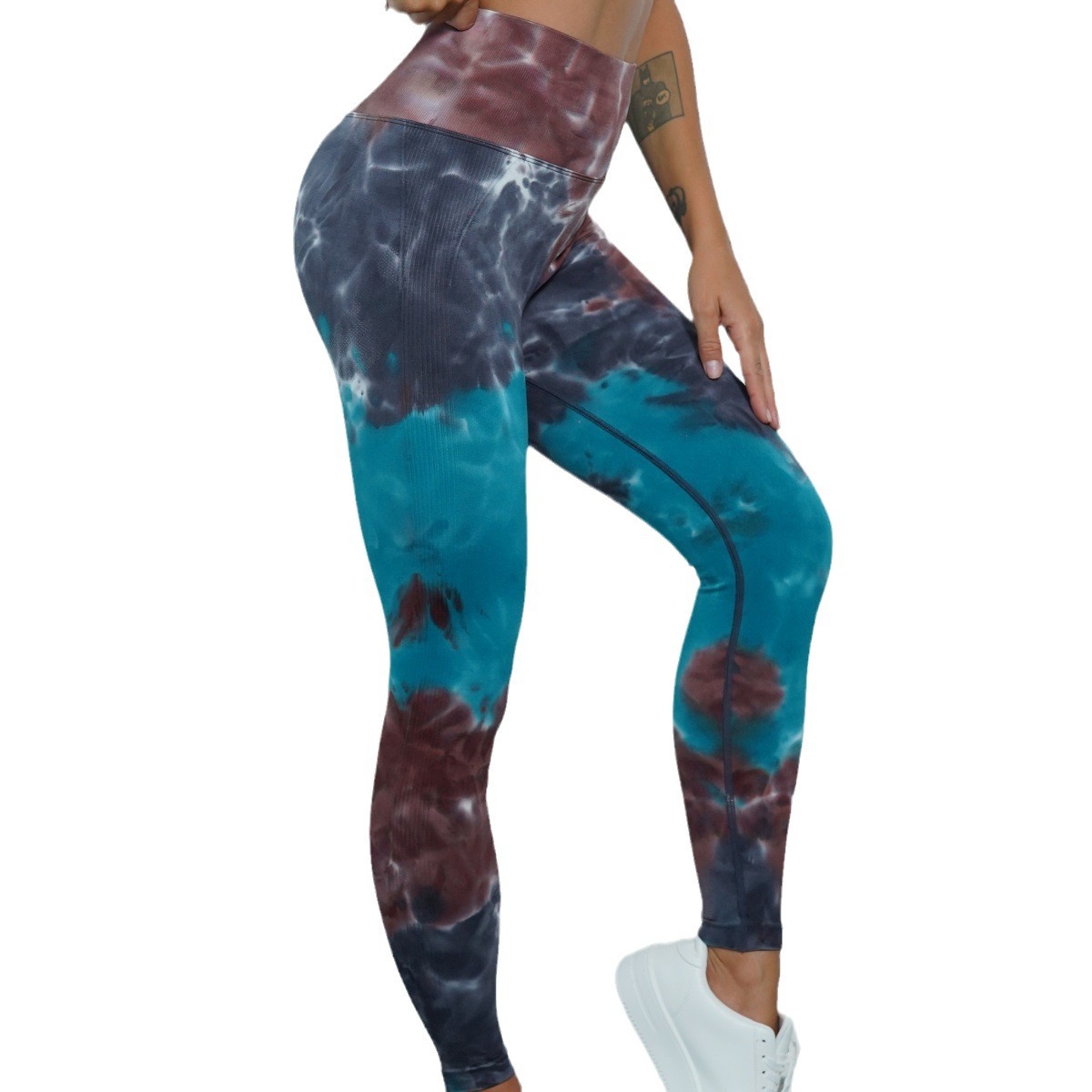 修身欧美无缝瑜伽裤数码印花蜜桃提臀健身裤女跑步运动紧身长裤