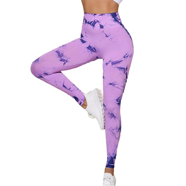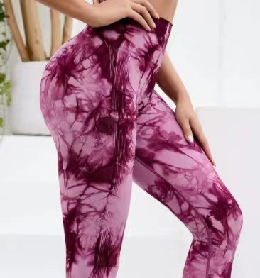 跨境蜜桃提臀紧身裤扎漂 无缝扎染运动紧身裤收腹高腰瑜伽健身裤