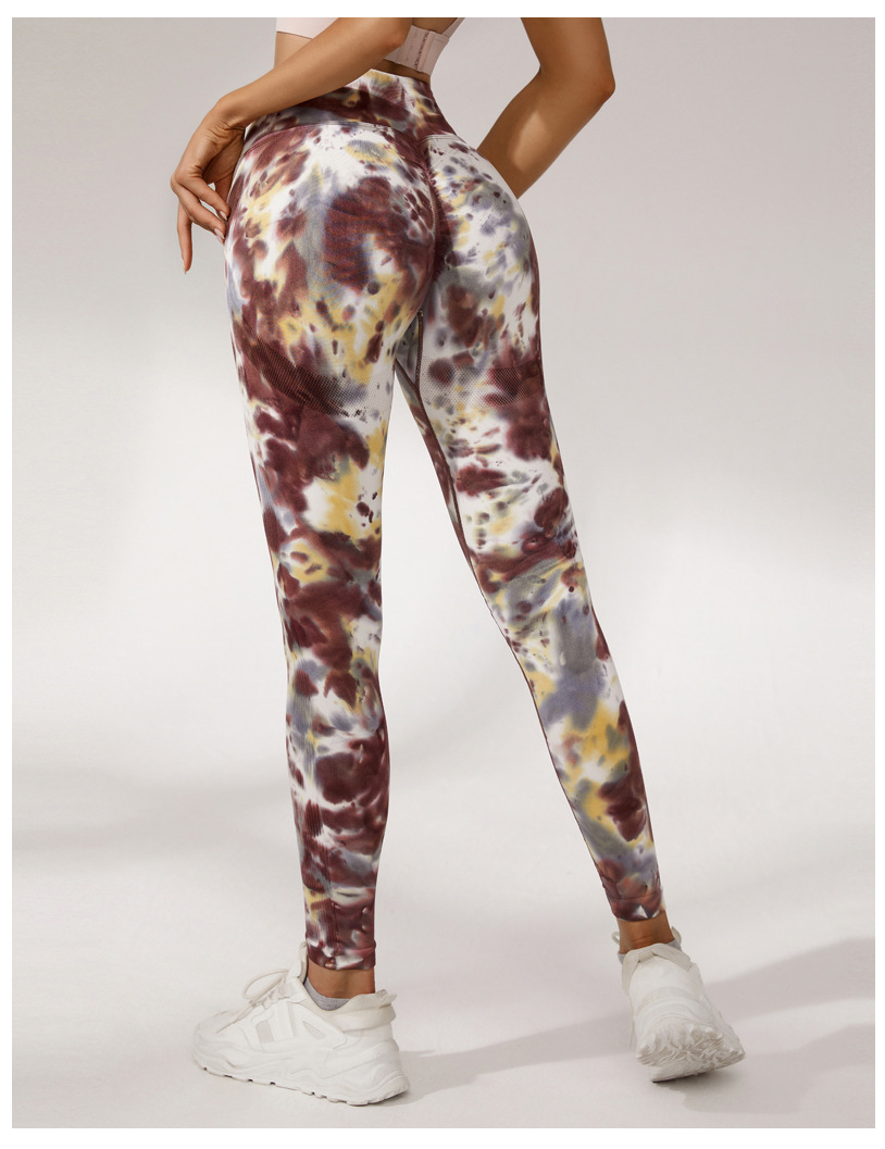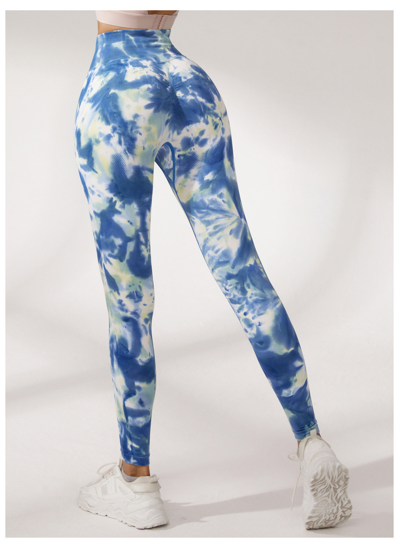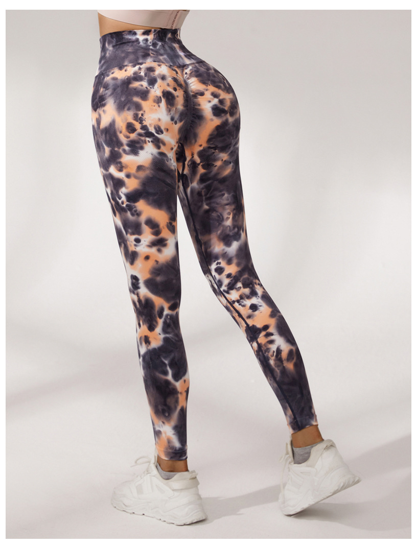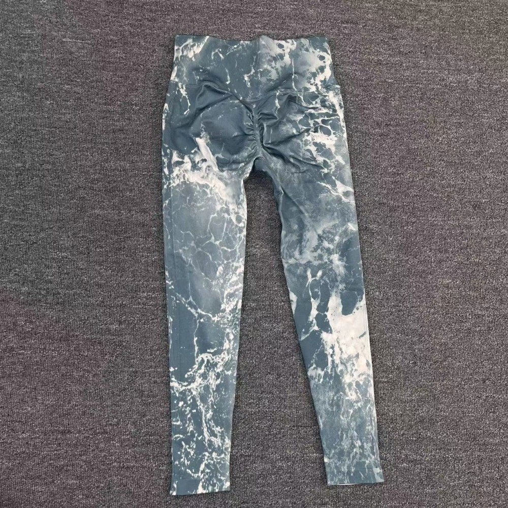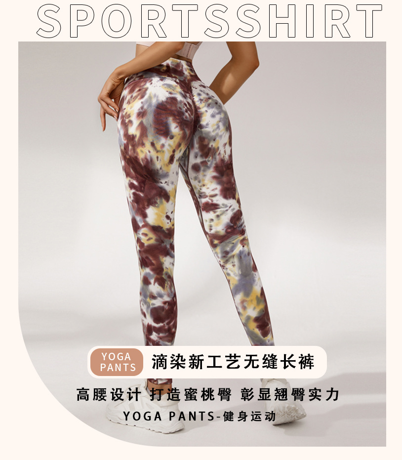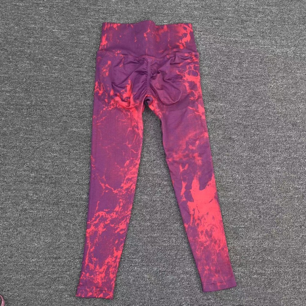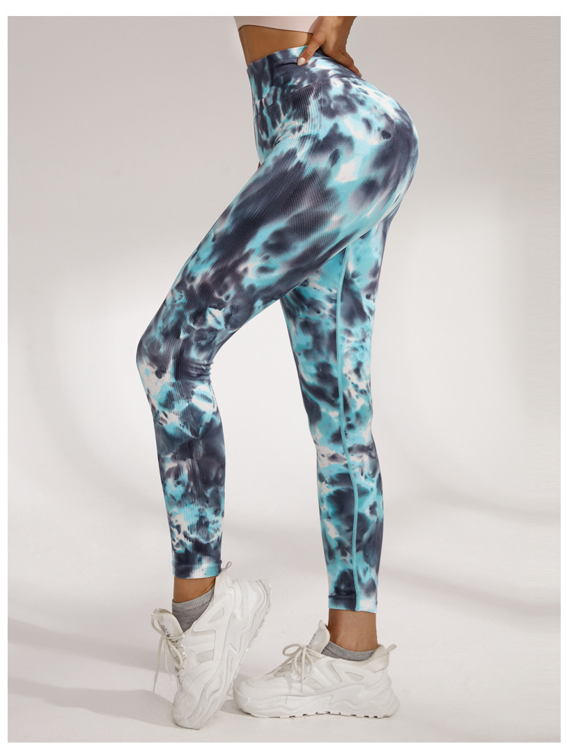 跨境欧美扎染无缝瑜伽裤女高腰收腹跑步运动裤外穿蜜桃提臀健身裤