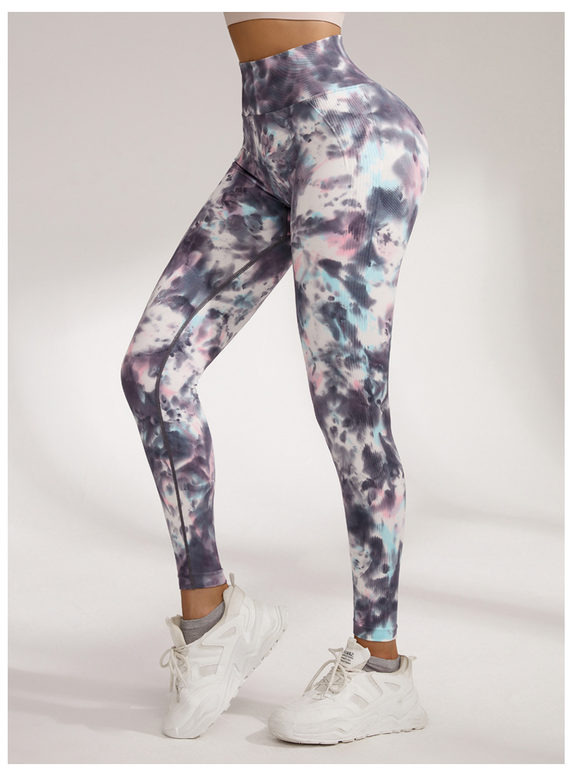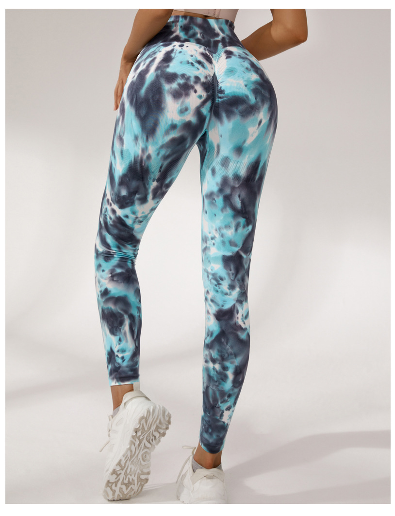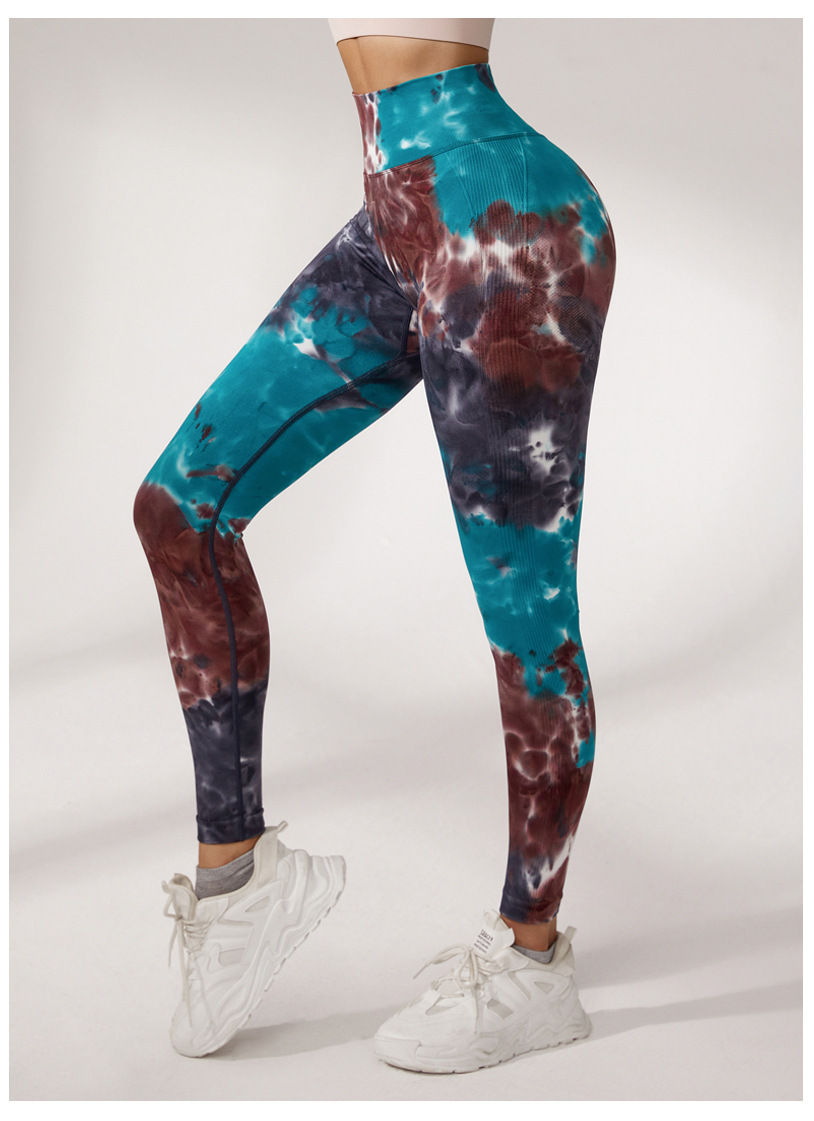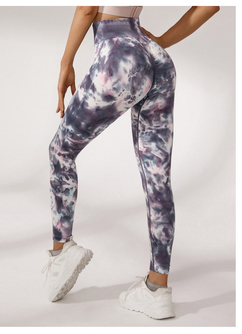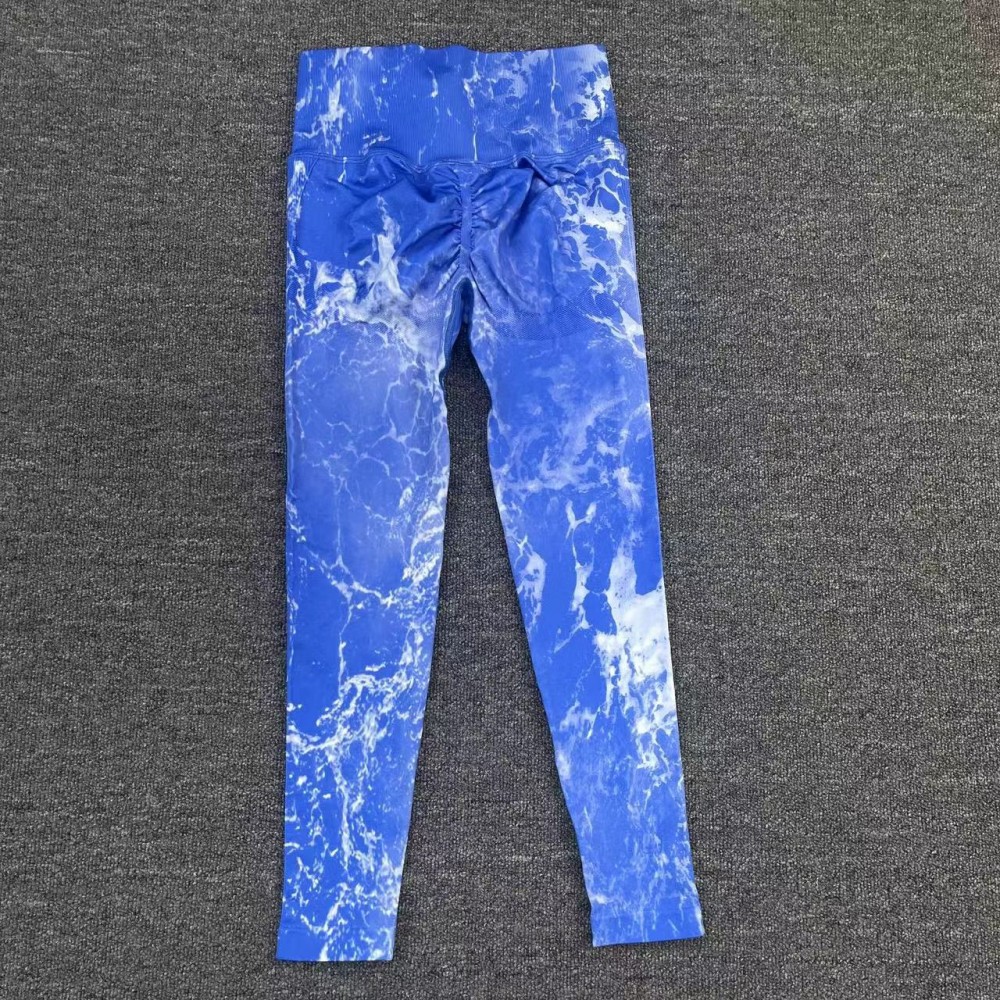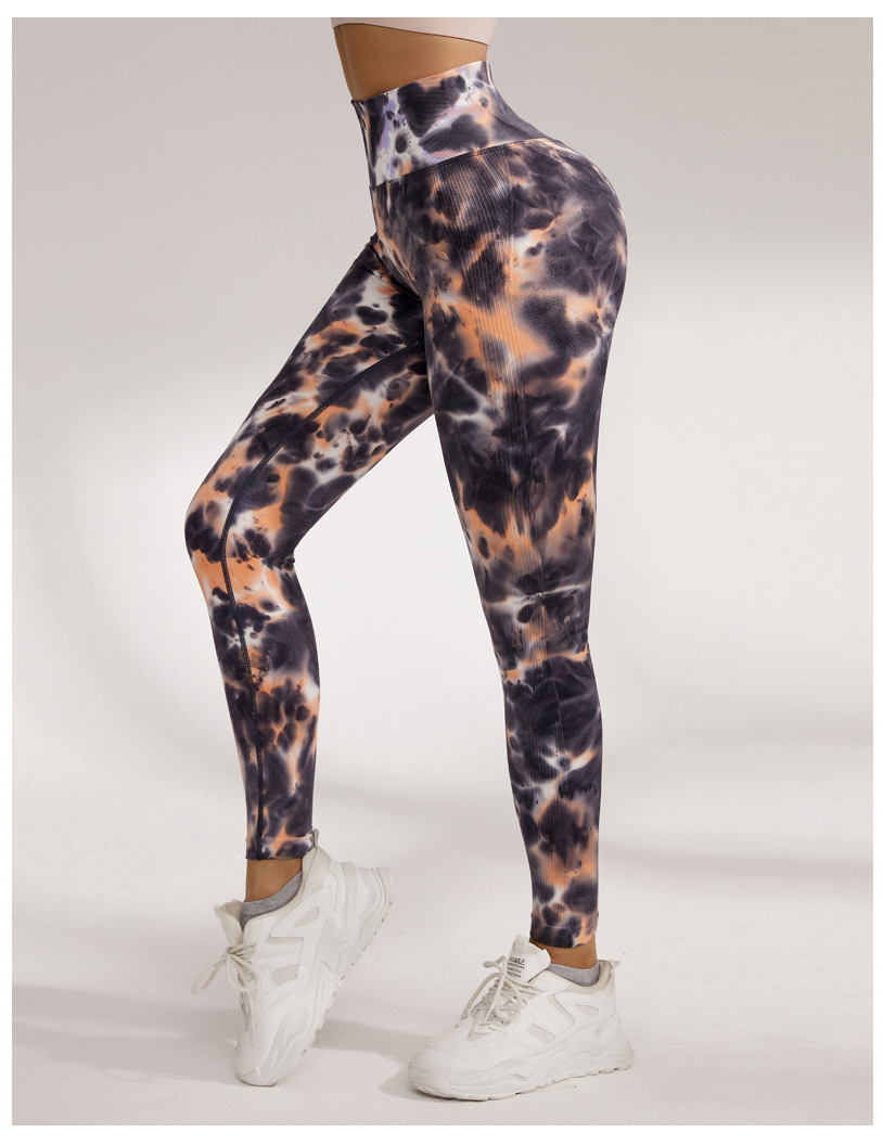 跨境欧美扎染无缝瑜伽裤女高腰收腹跑步运动裤外穿蜜桃提臀健身裤