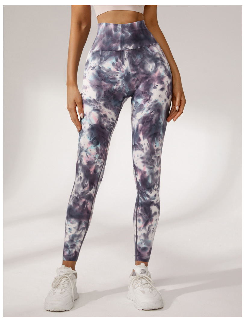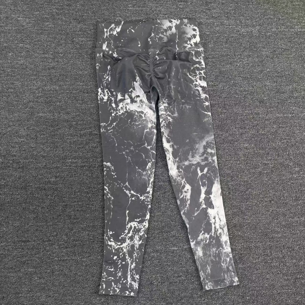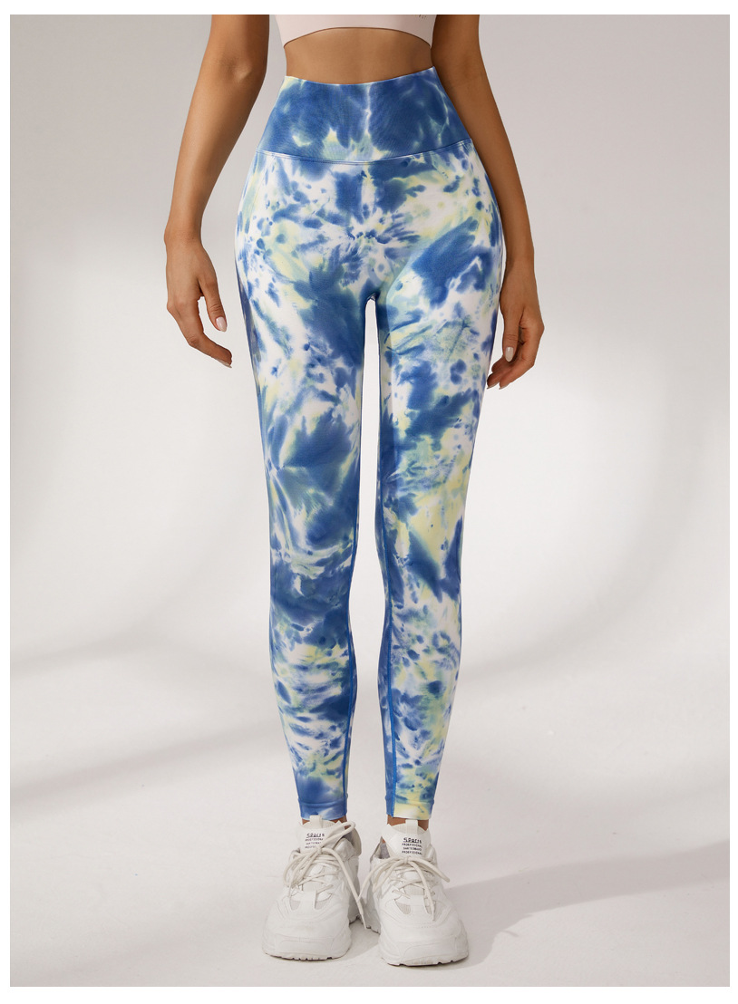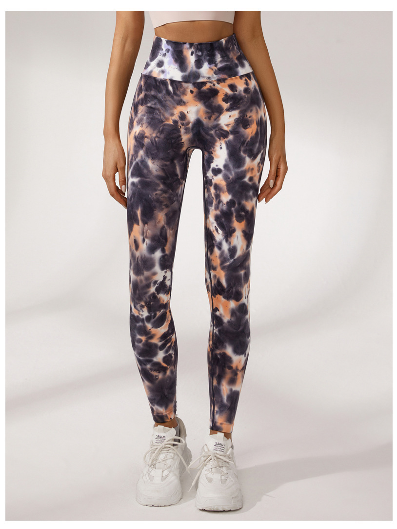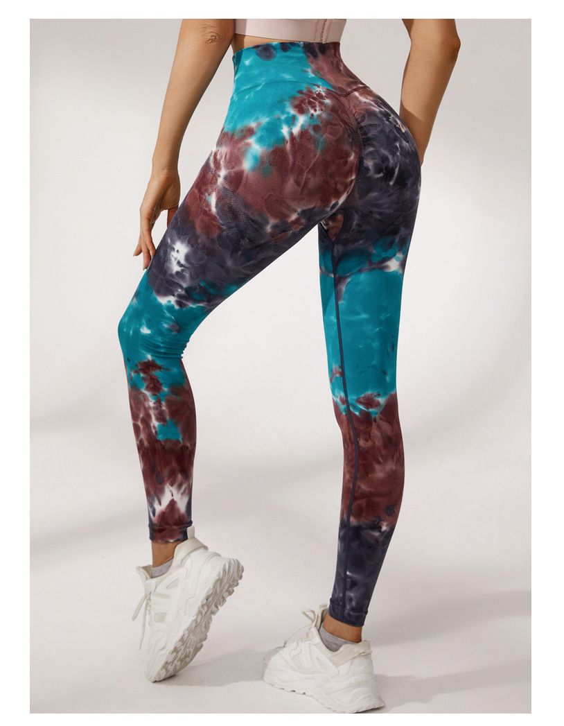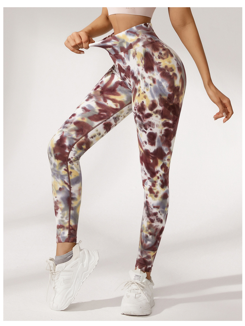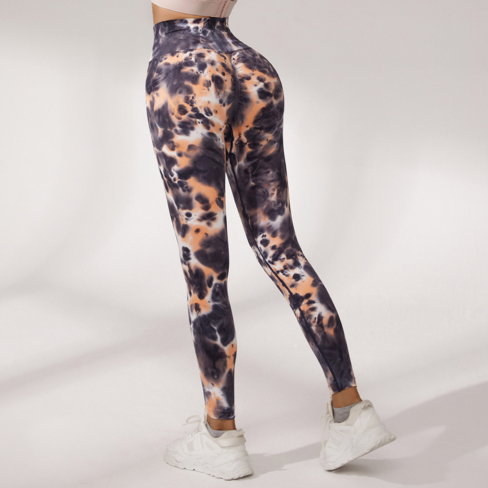 跨境欧美扎染无缝瑜伽裤女高腰收腹跑步运动裤外穿蜜桃提臀健身裤
