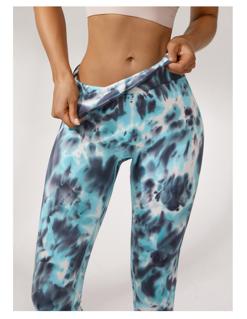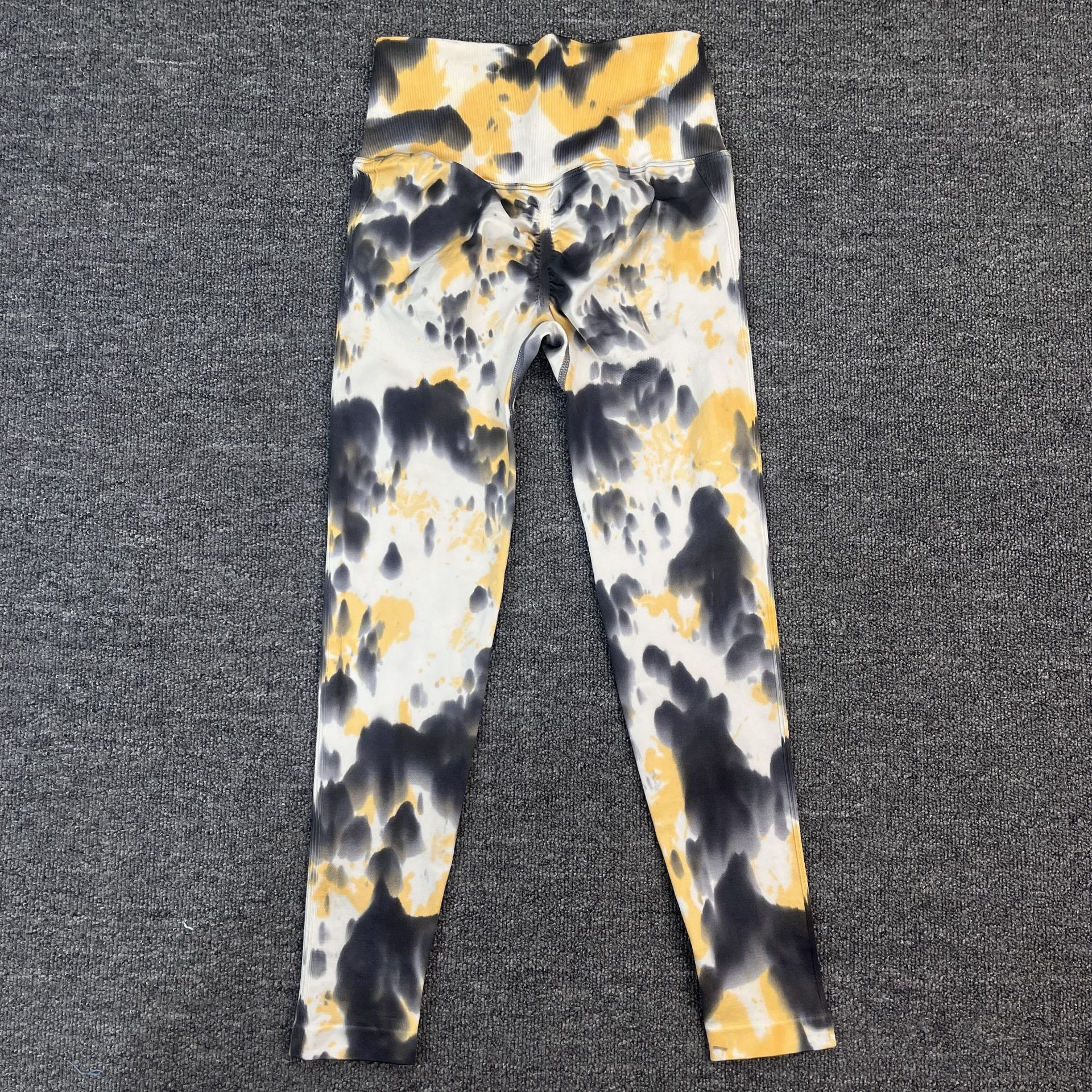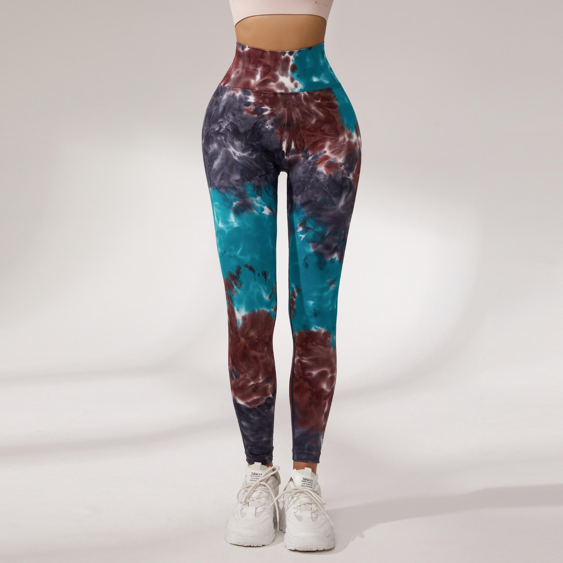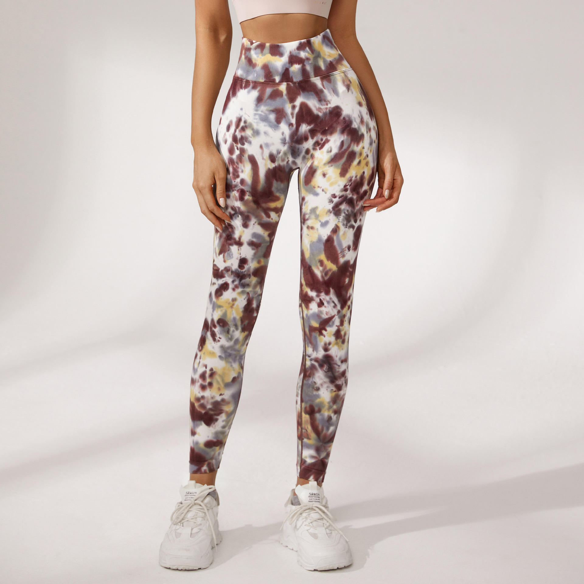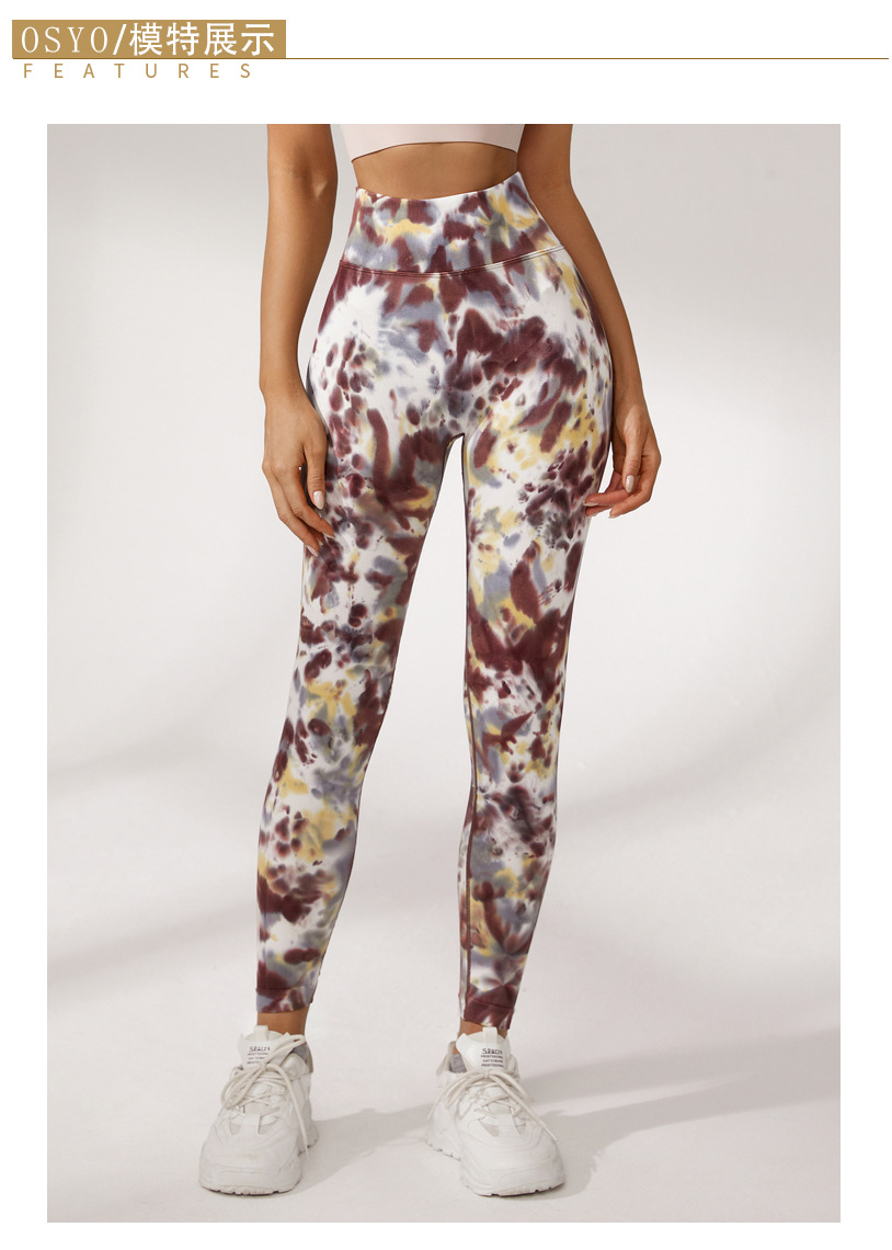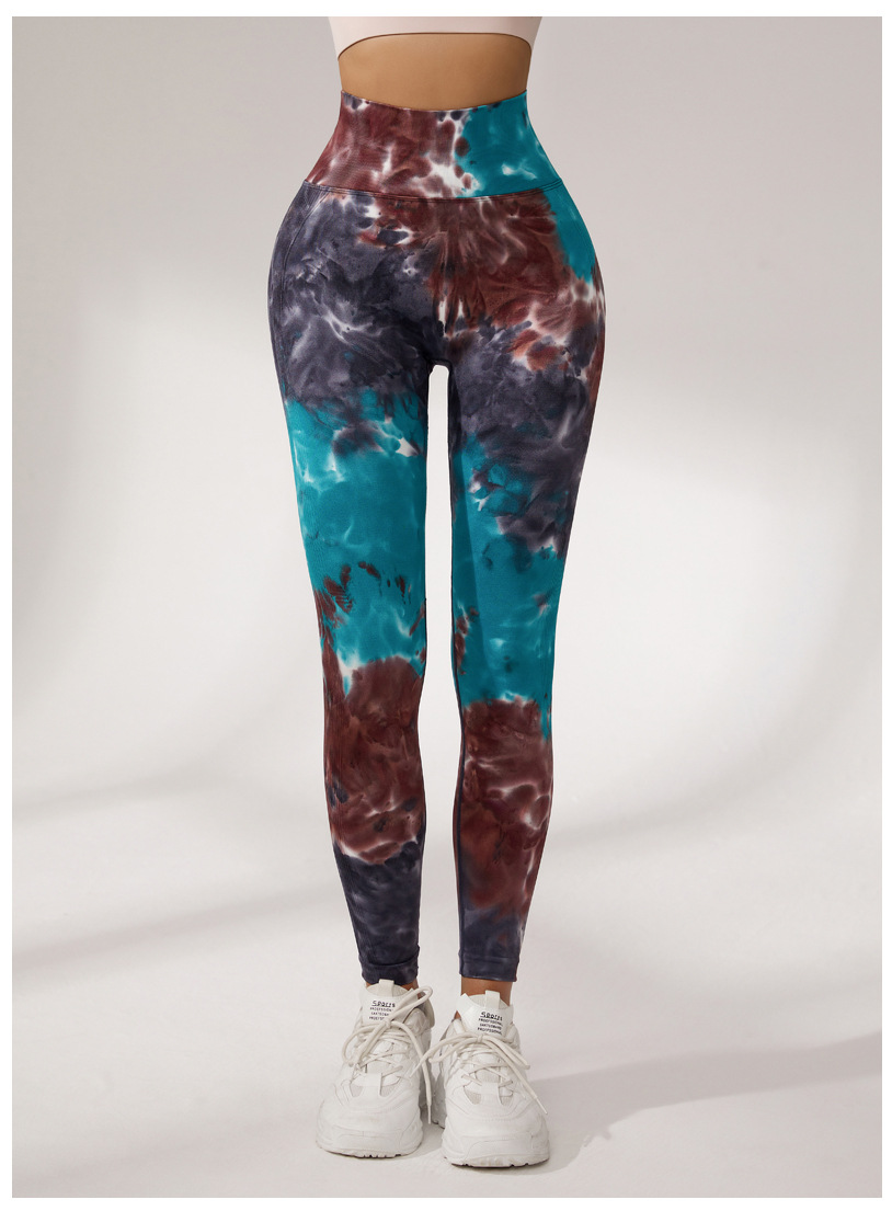跨境欧美扎染无缝瑜伽裤女高腰收腹跑步运动裤外穿蜜桃提臀健身裤