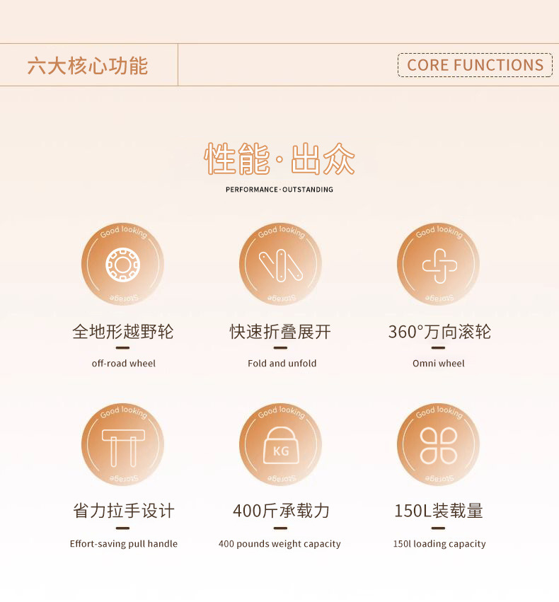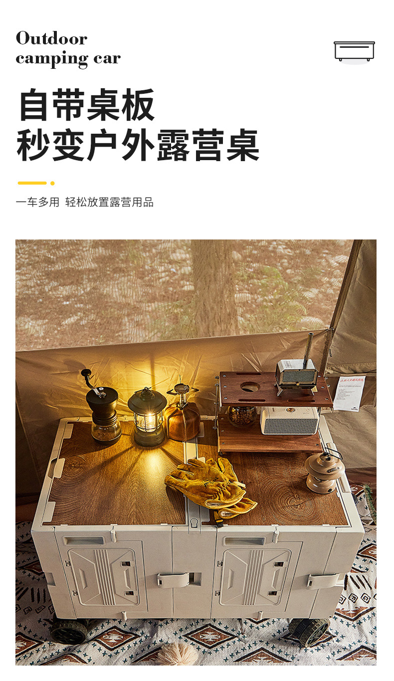 户外露营车可折叠户外露营拉杆车可移动大容量购物车双开门野餐车