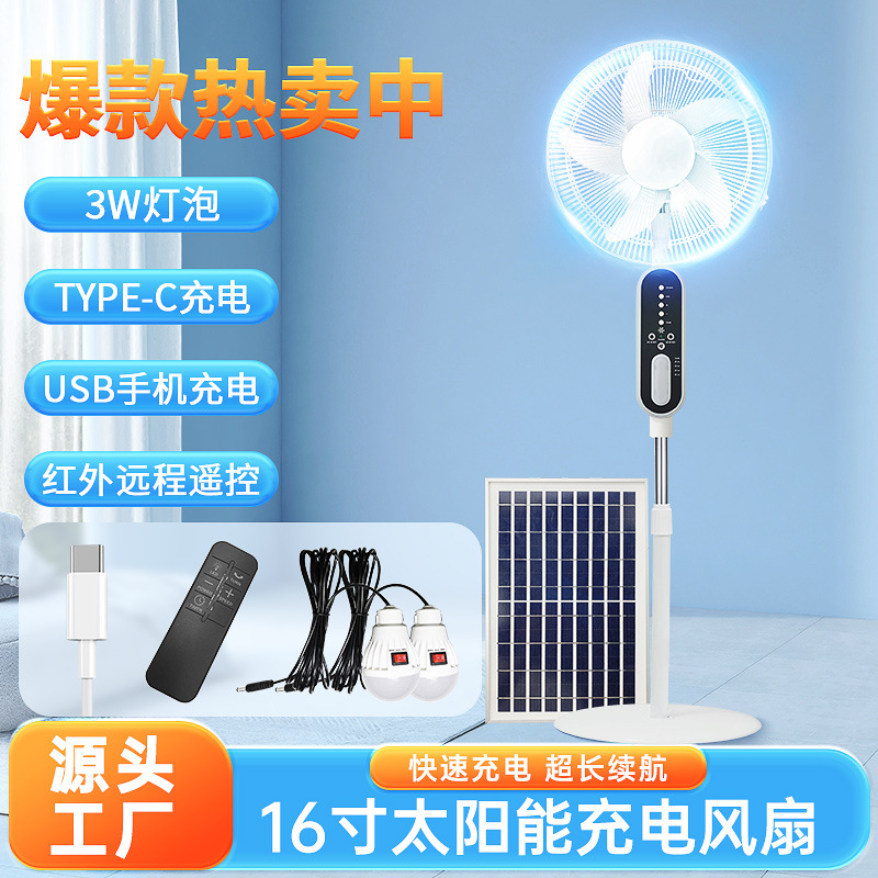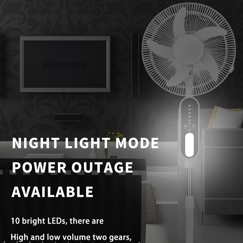 外贸热销PUREVIEW 16寸无刷风扇遥控充电落地风扇灯太阳能风扇
