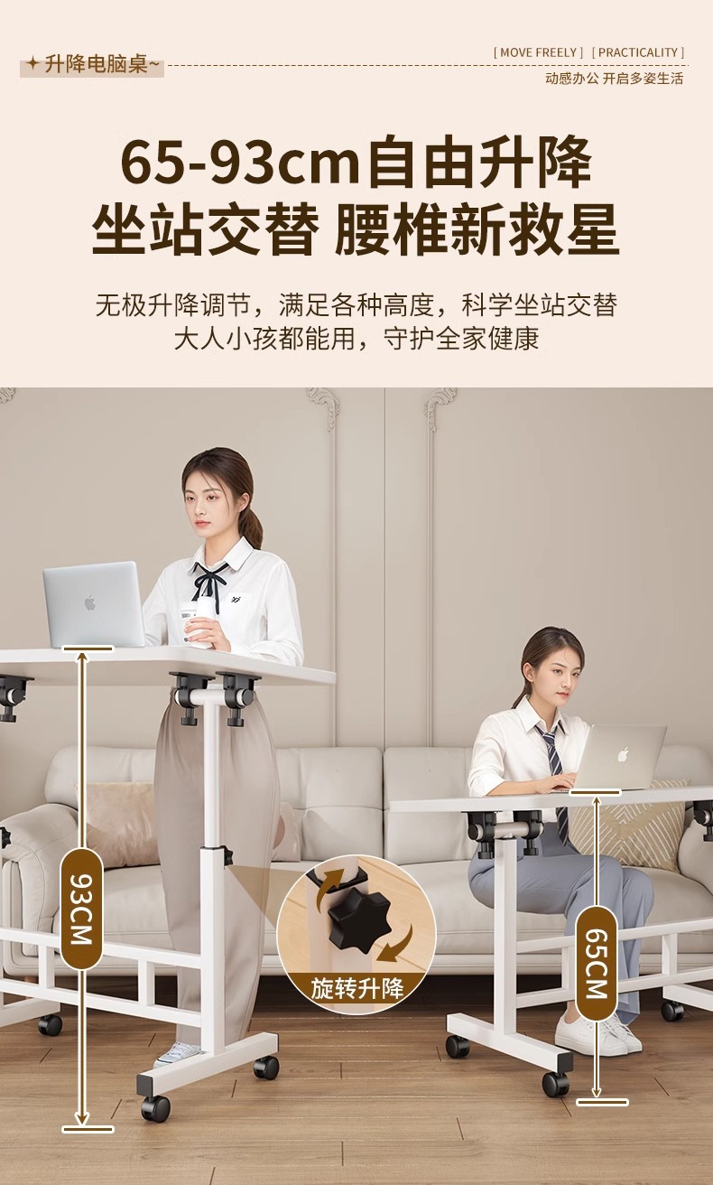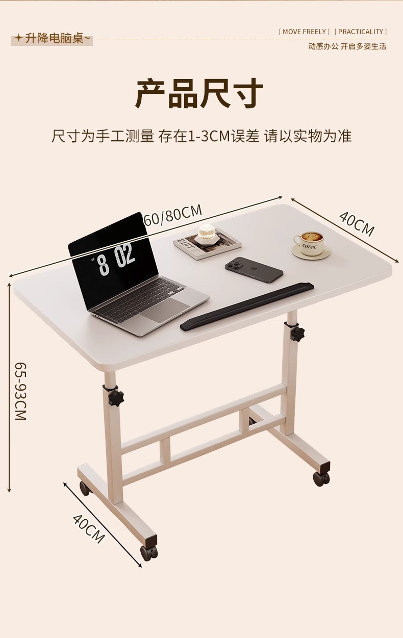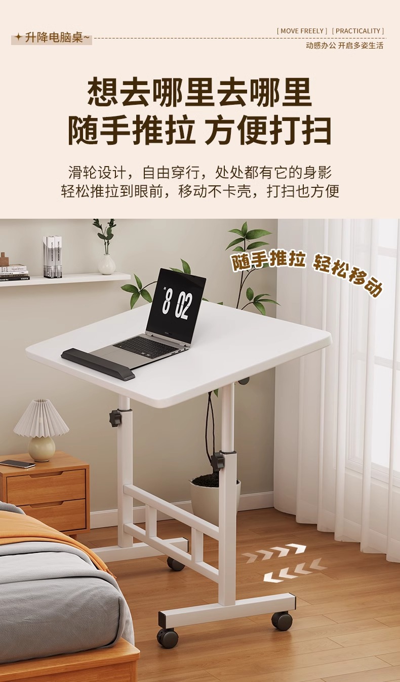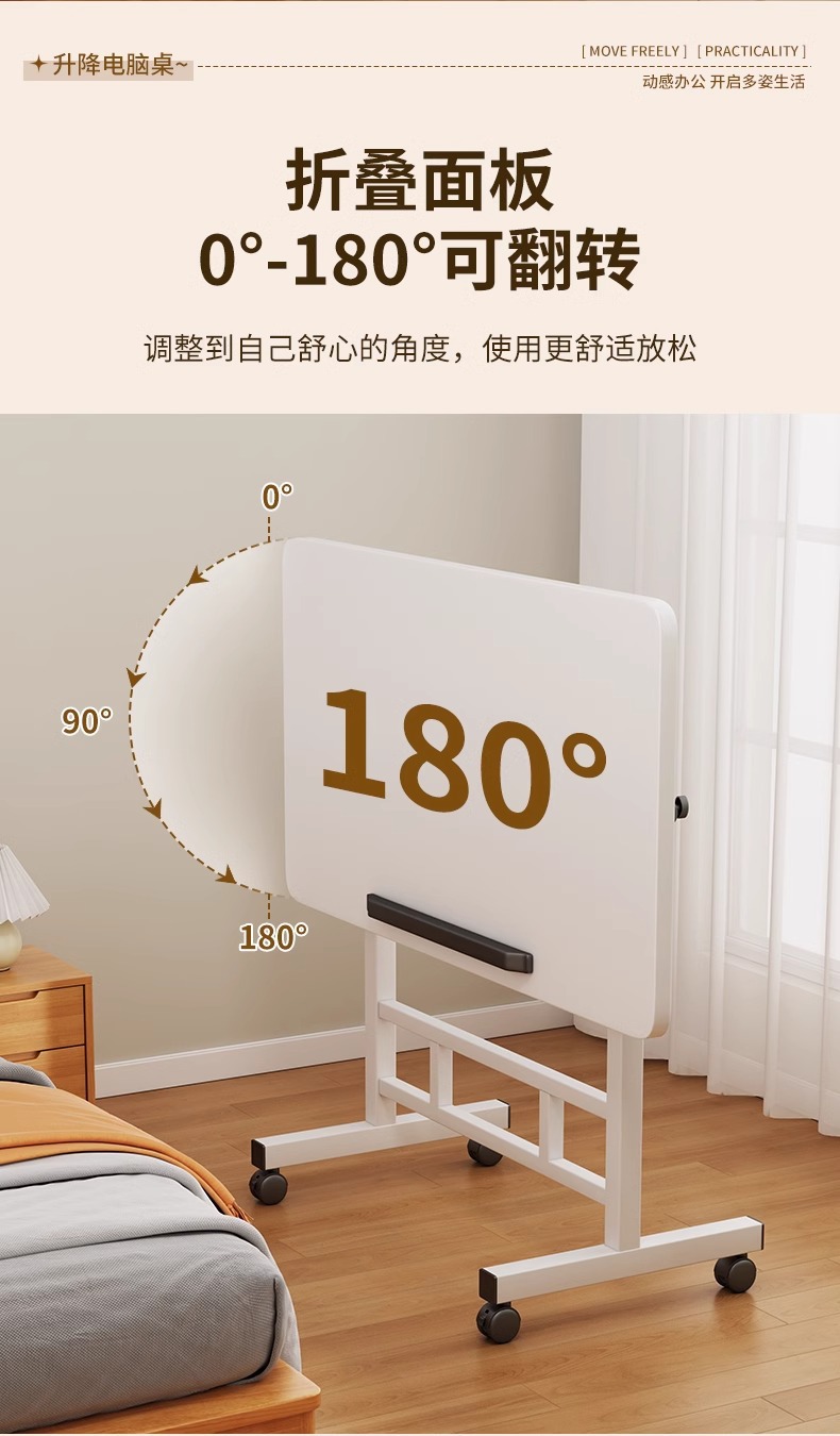 绘图桌可升降折叠电脑桌带滚轮可移动升降简易床边桌美术绘画桌子