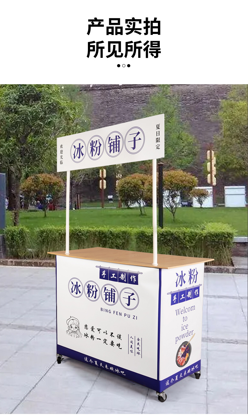 摆摊小推车折叠移动地推试小吃冰粉烤肠广告宣传桌展示架子促销台