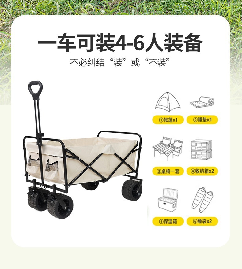 户外露营推车摆摊万能小推车可折叠野餐营地车野营超大越野小拉车