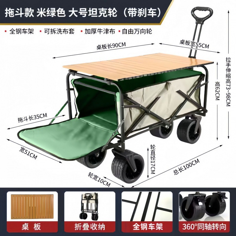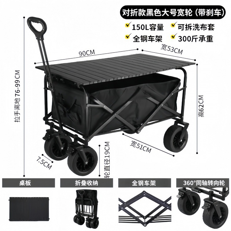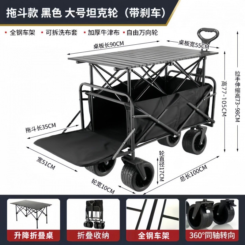 户外露营车野营地车便携式野餐拉杆小拖车露营摆摊折叠小推车跨境