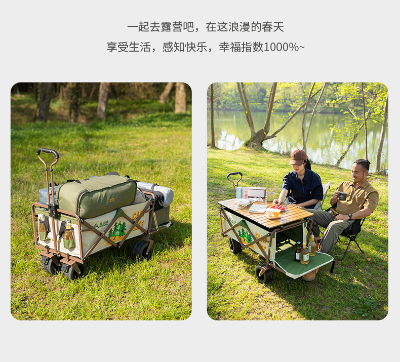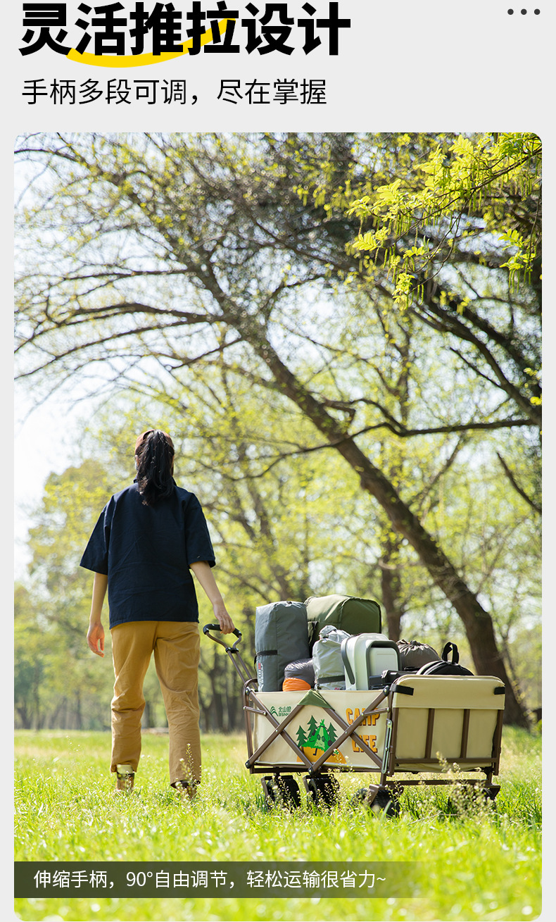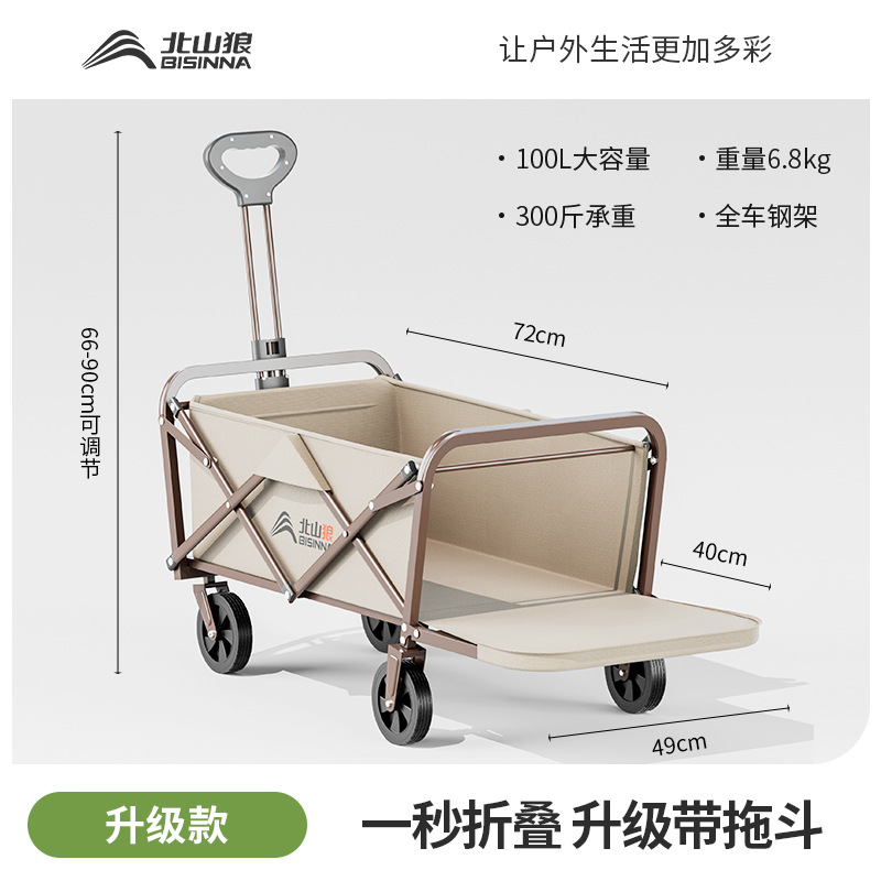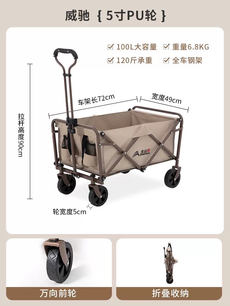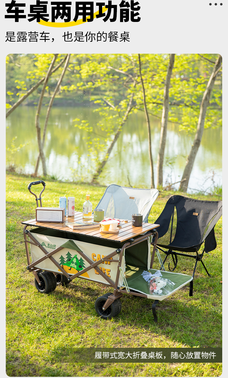 北山狼露营推车营地野餐野营可加折叠桌板户外便携摆摊手拉小拖车