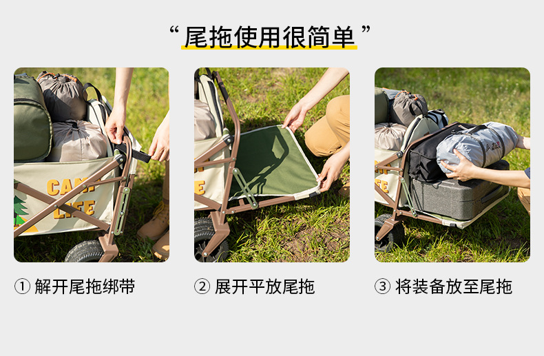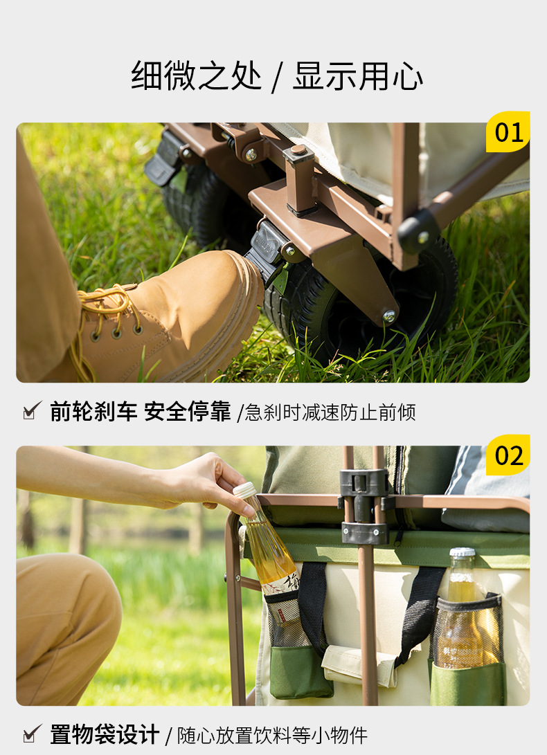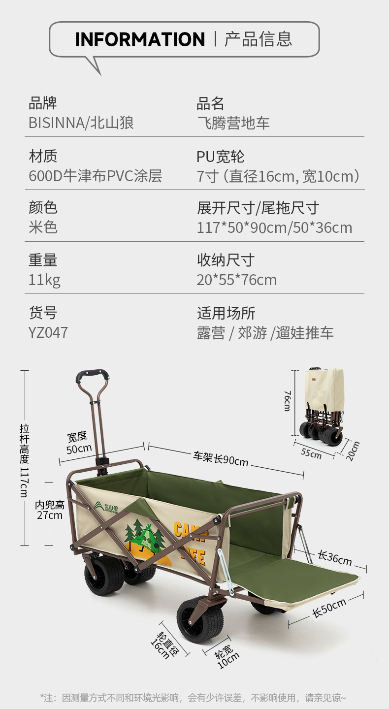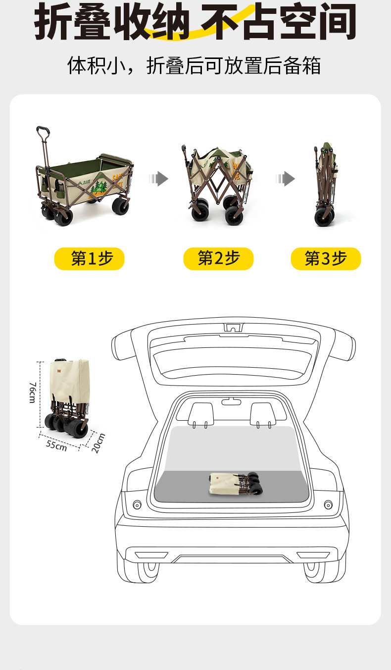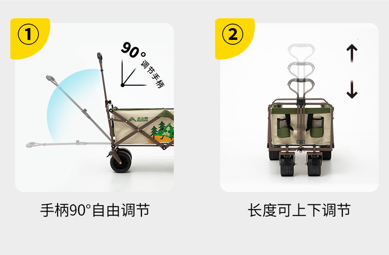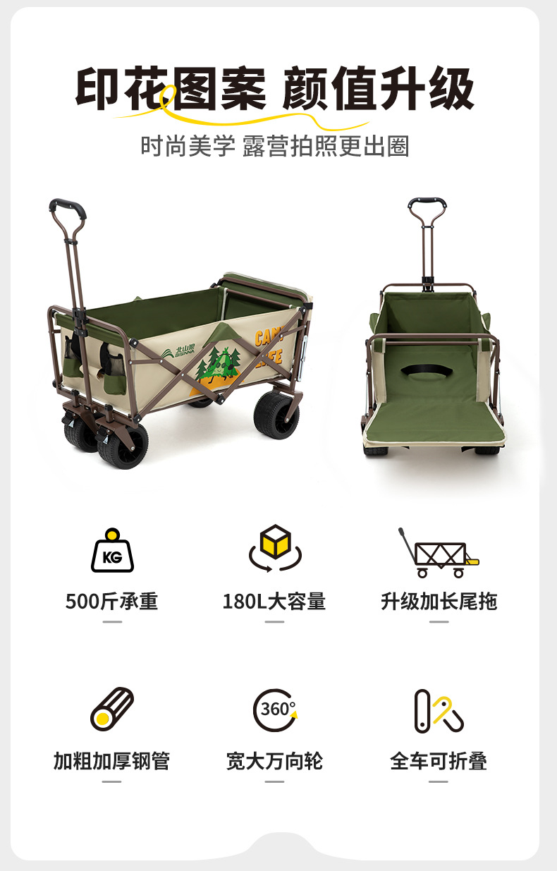 北山狼露营推车营地野餐野营可加折叠桌板户外便携摆摊手拉小拖车