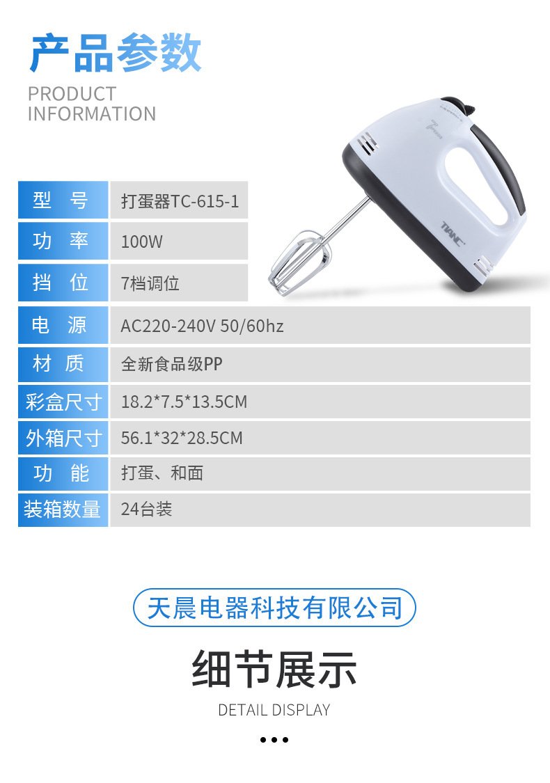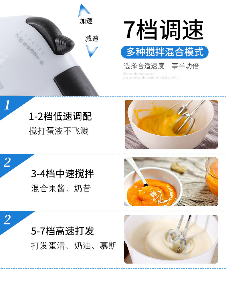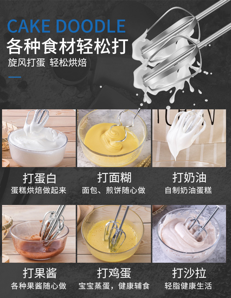 定制跨境爆款电动打蛋器欧规圆扁插奶油打发器7档自动烘焙搅拌器