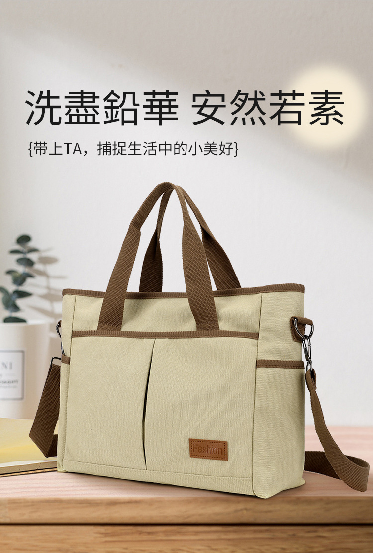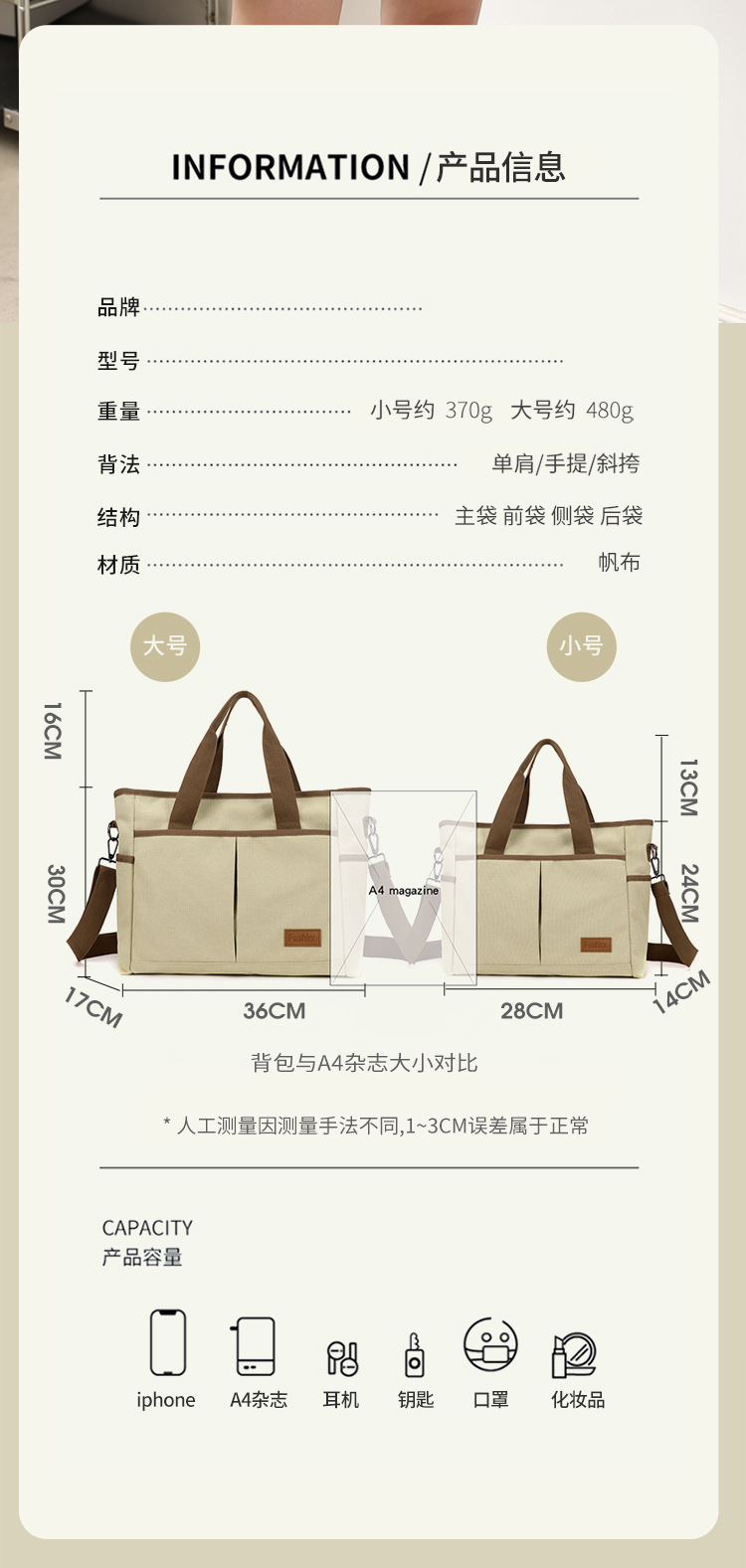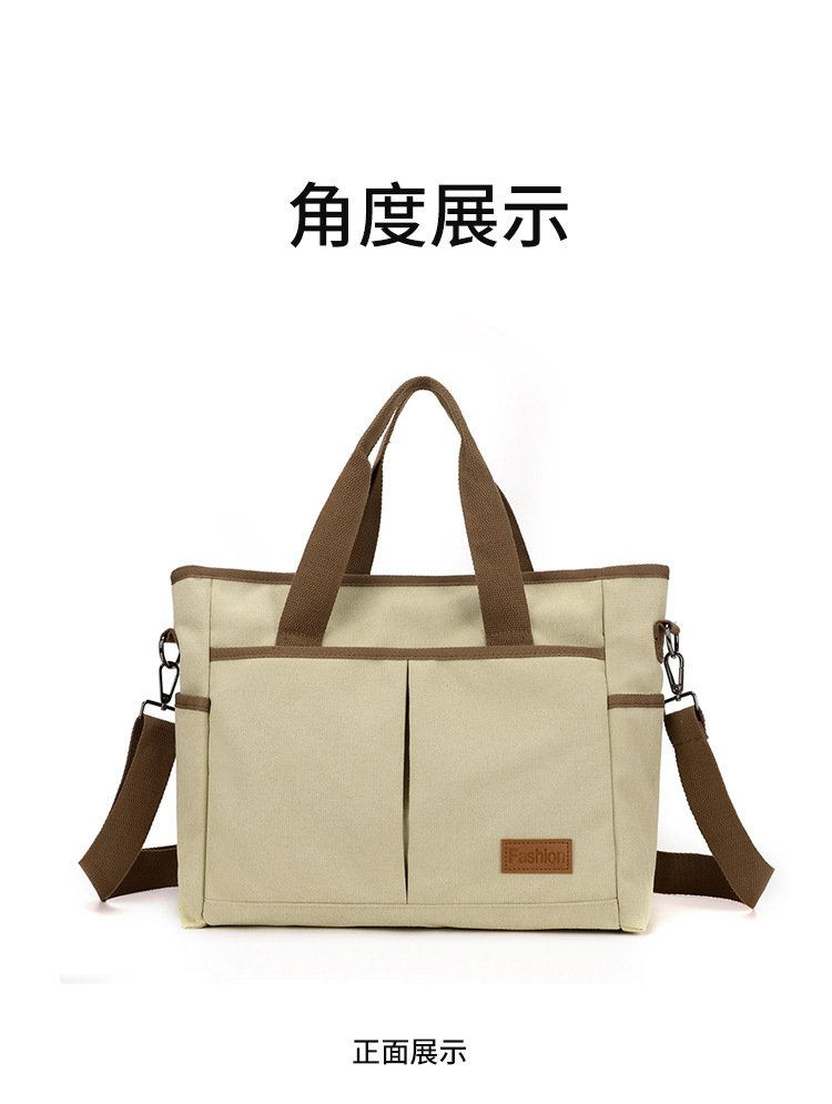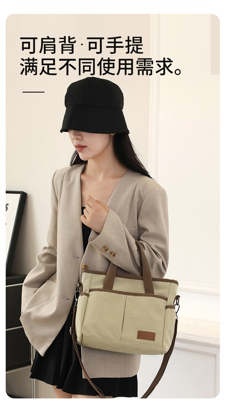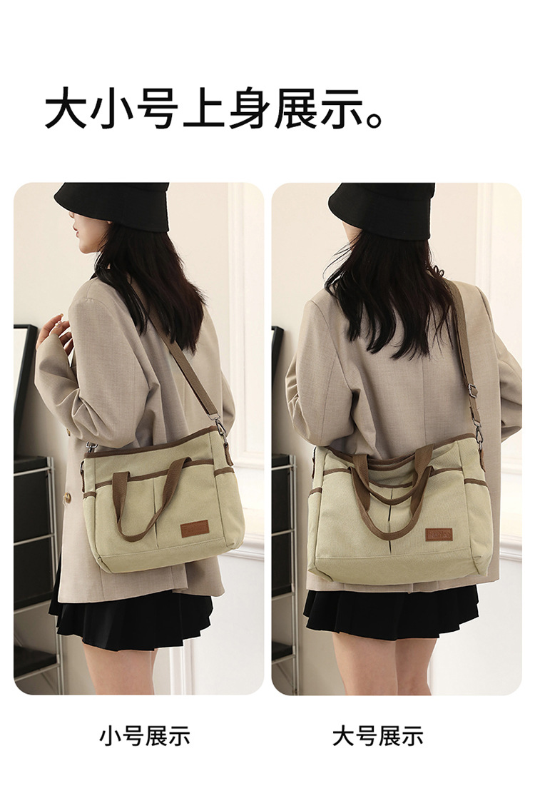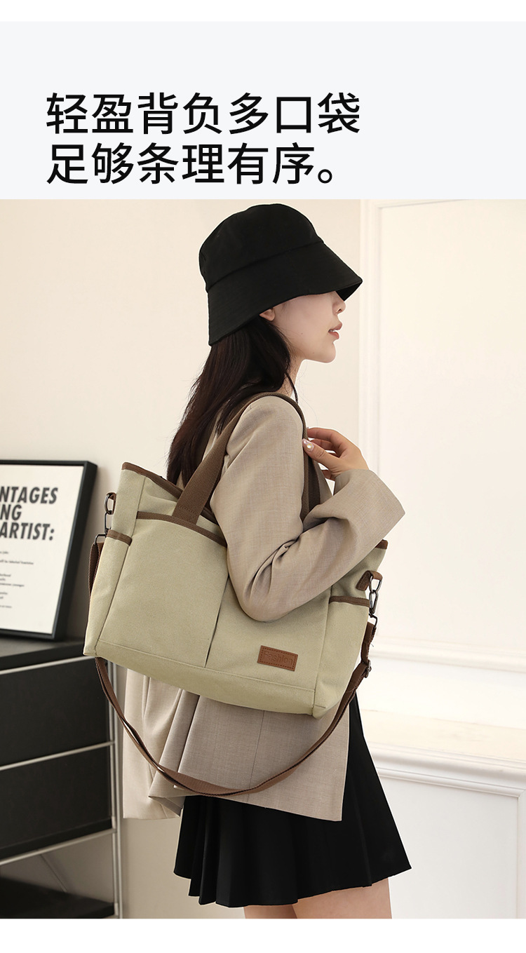 新款多兜休闲帆布包大容量韩系百搭斜挎包上班通勤耐磨单肩托特包