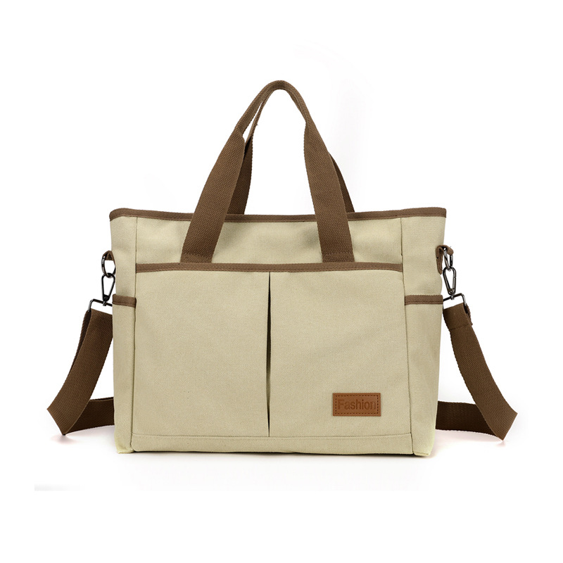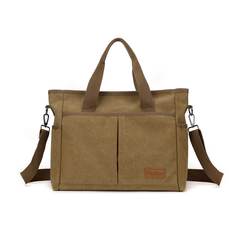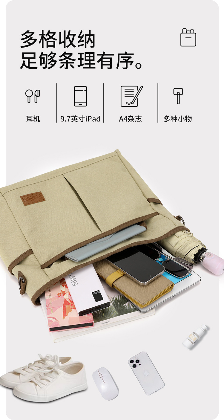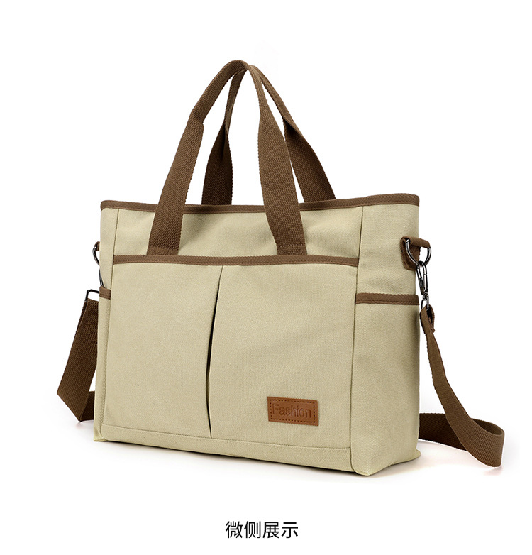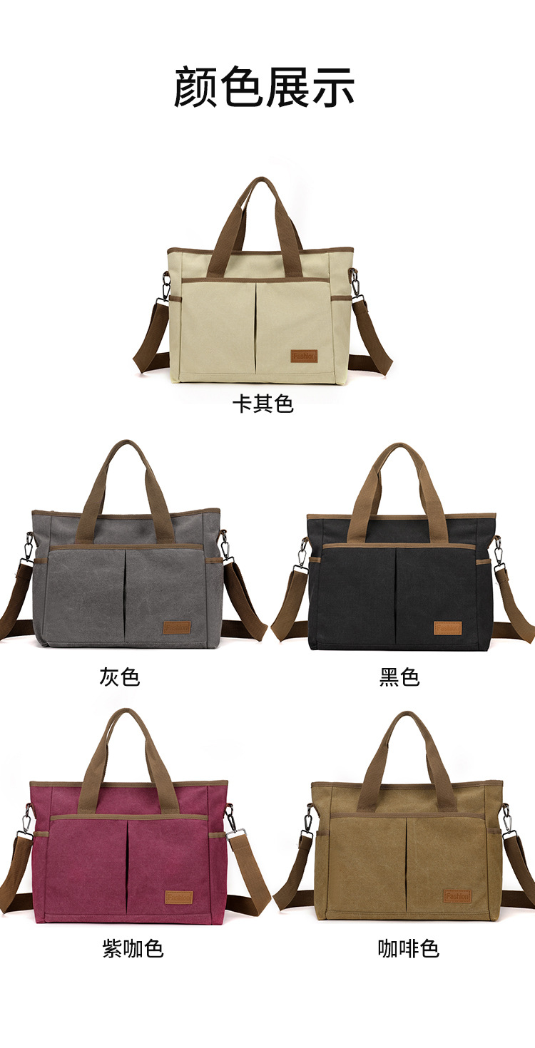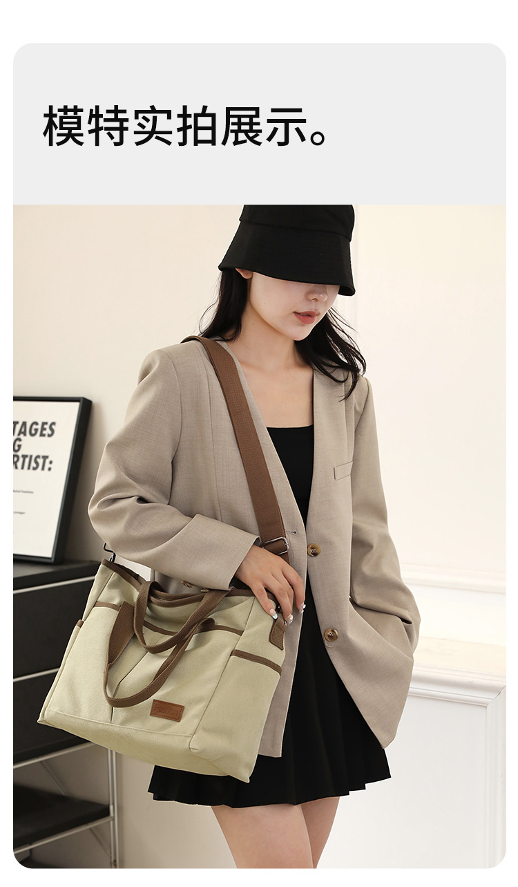 新款多兜休闲帆布包大容量韩系百搭斜挎包上班通勤耐磨单肩托特包