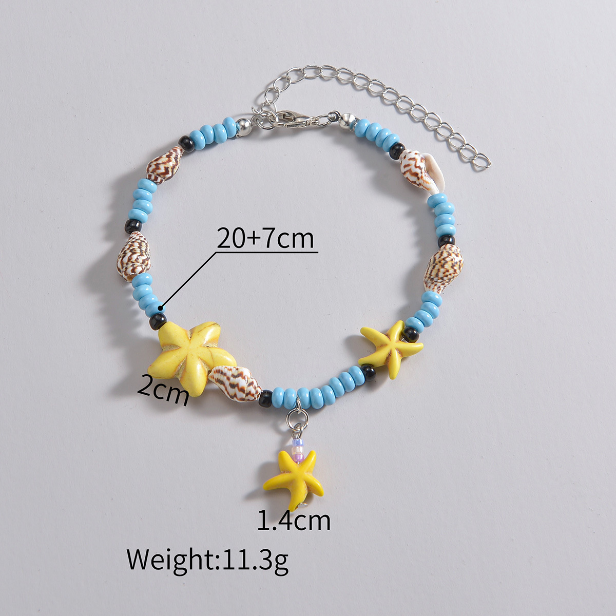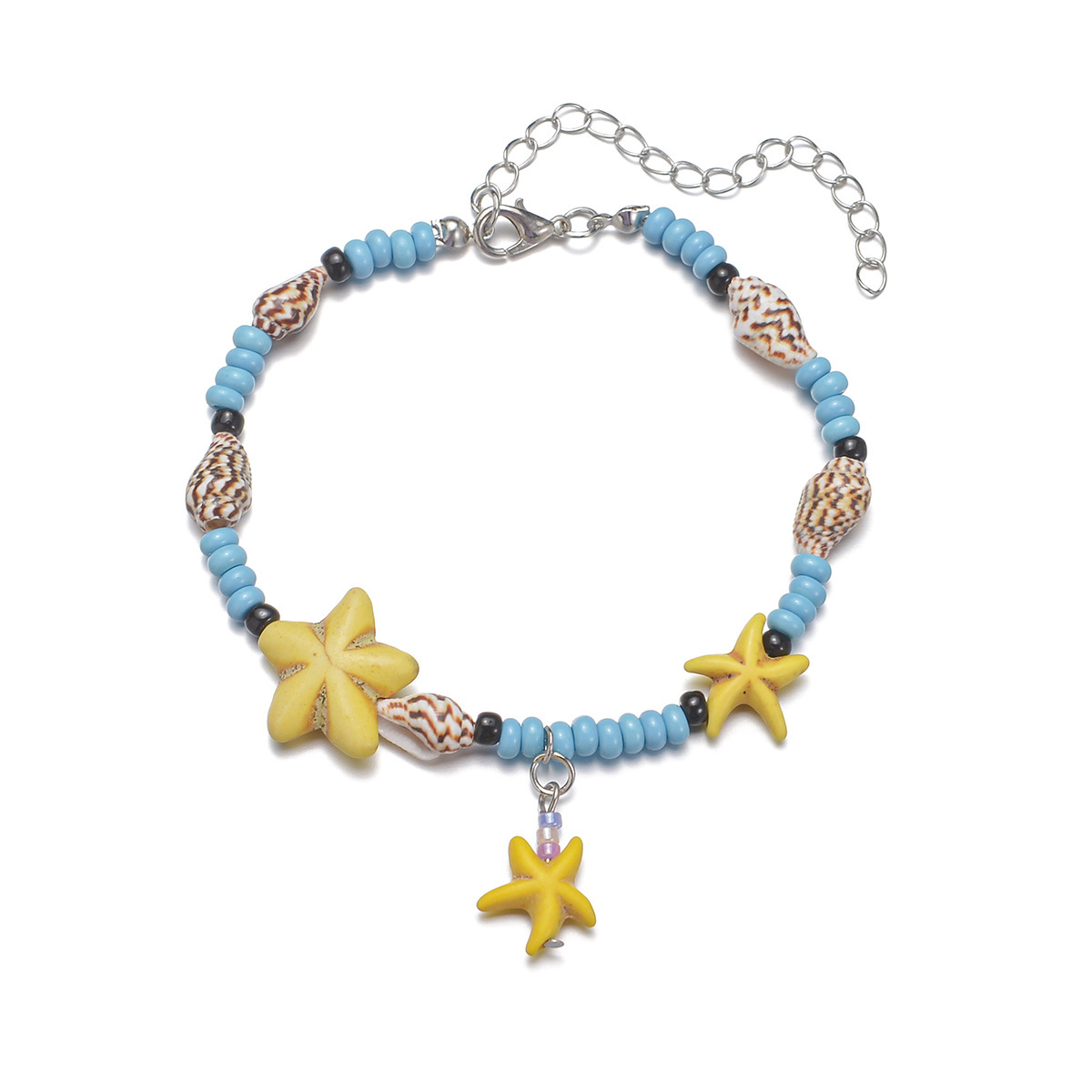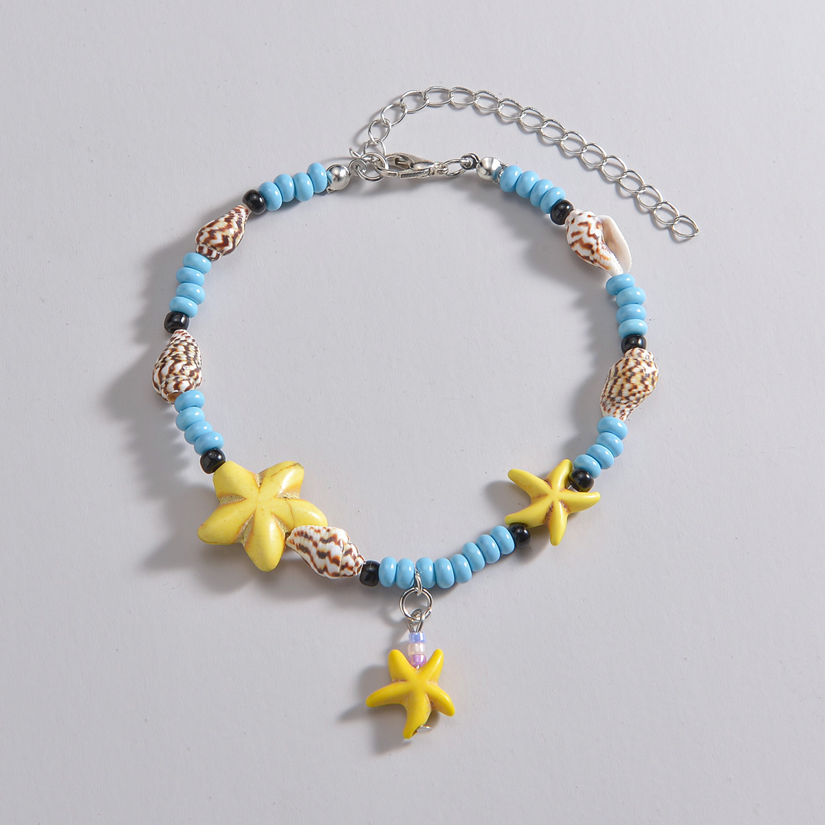 波西米亚民族风松石海星吊坠天然海螺米珠可调节脚链适合沙滩度假