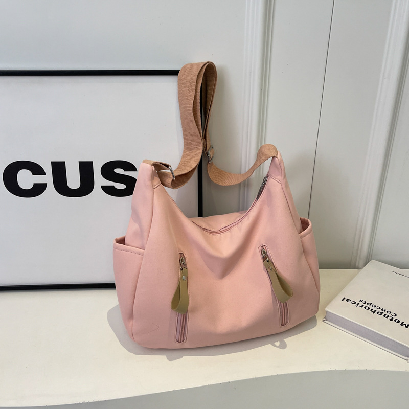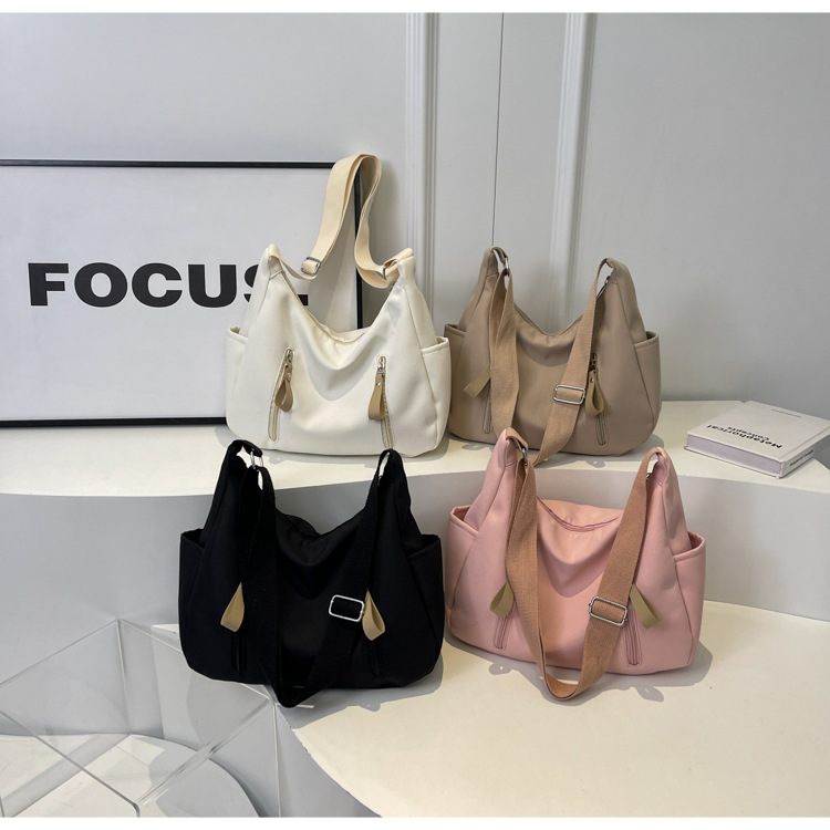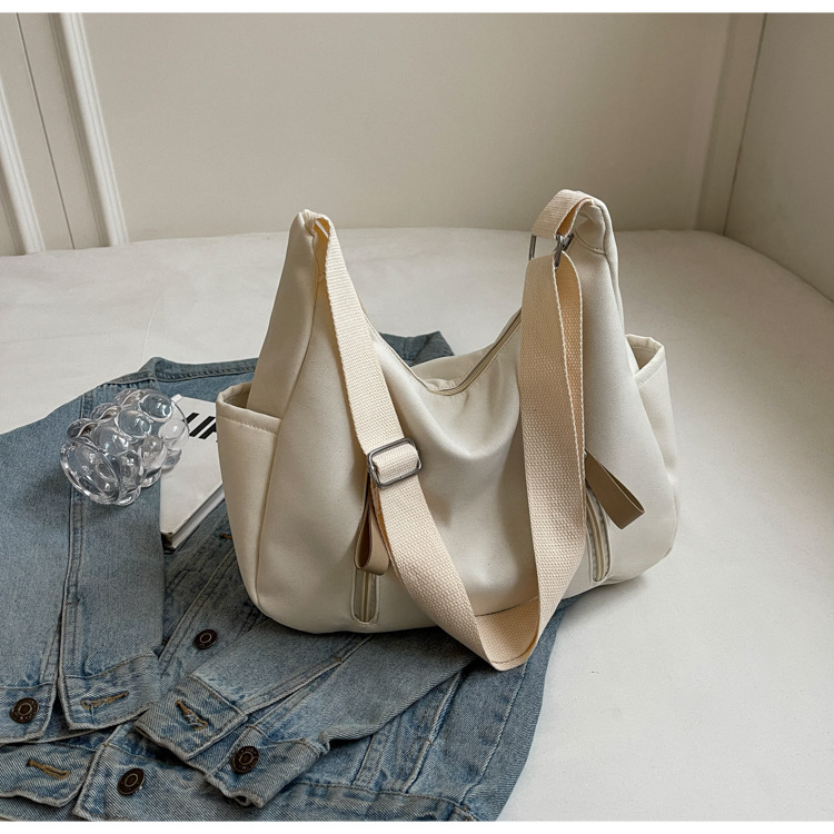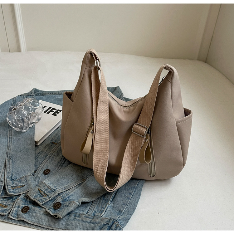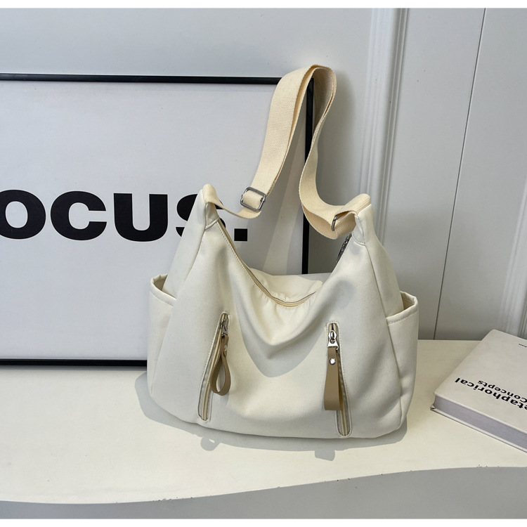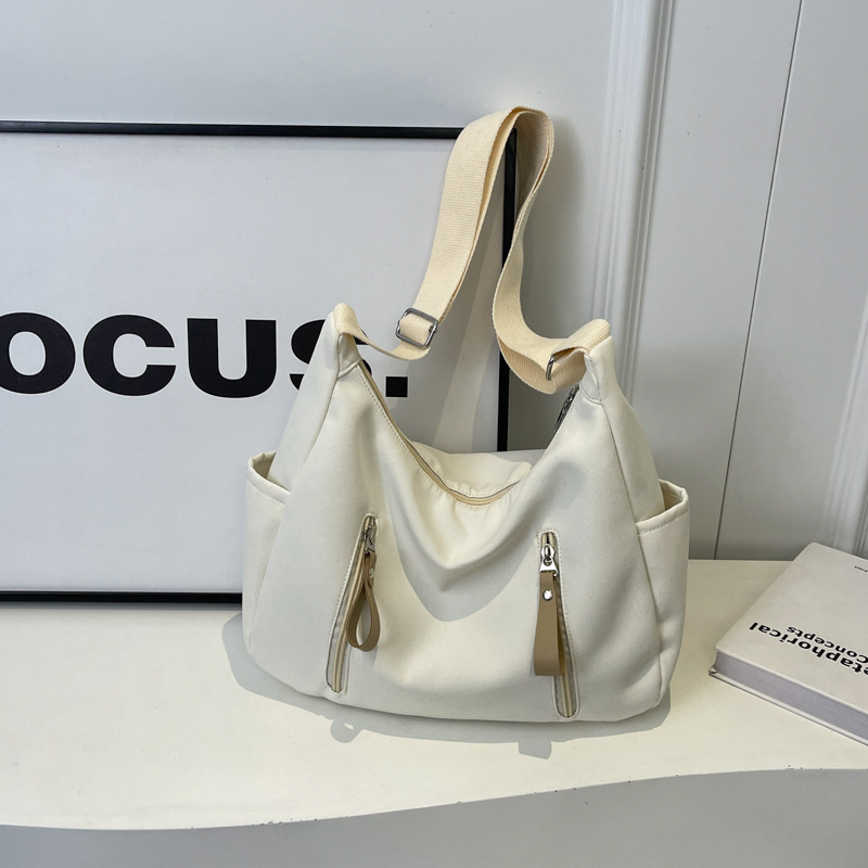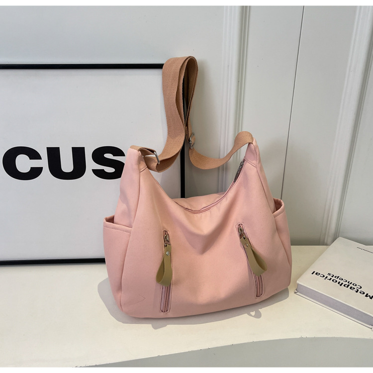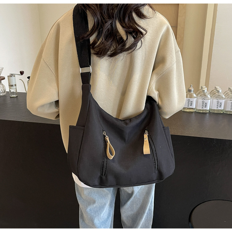 轻便复古简约帆布包2024新款休闲大容量单肩包学生上课斜挎托特包