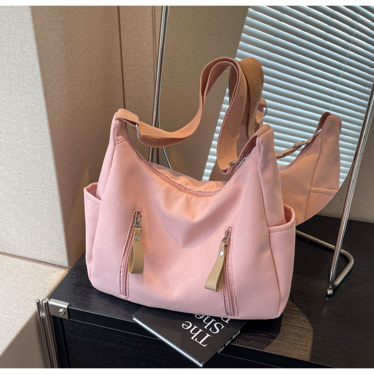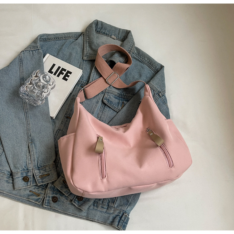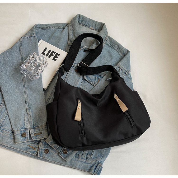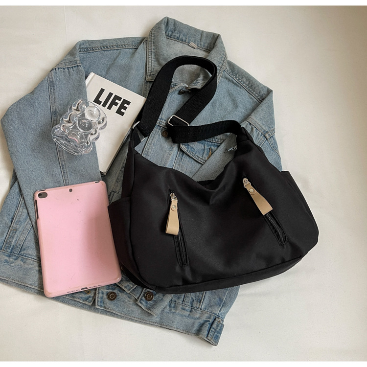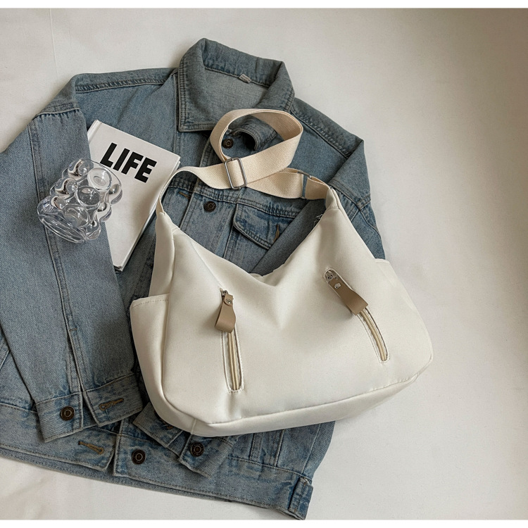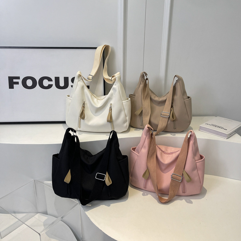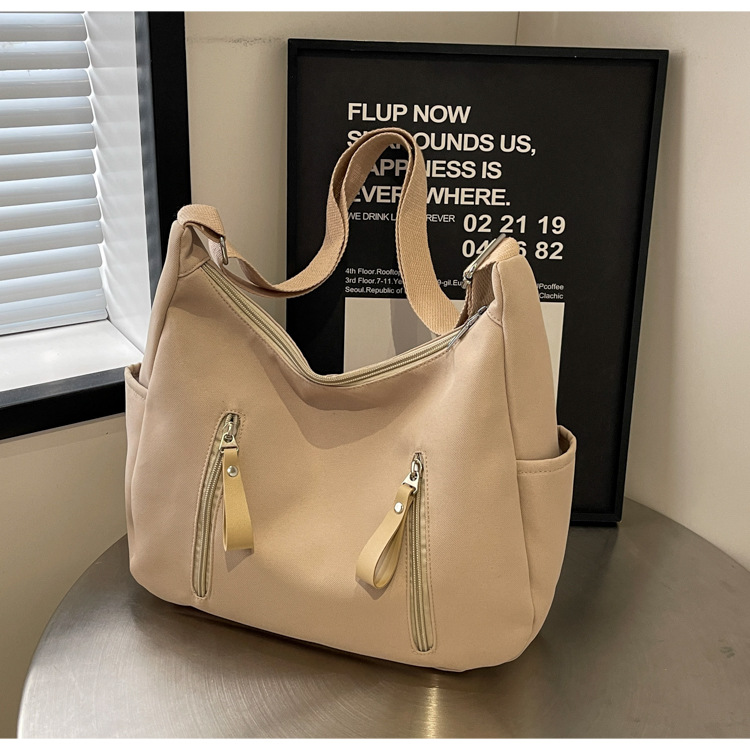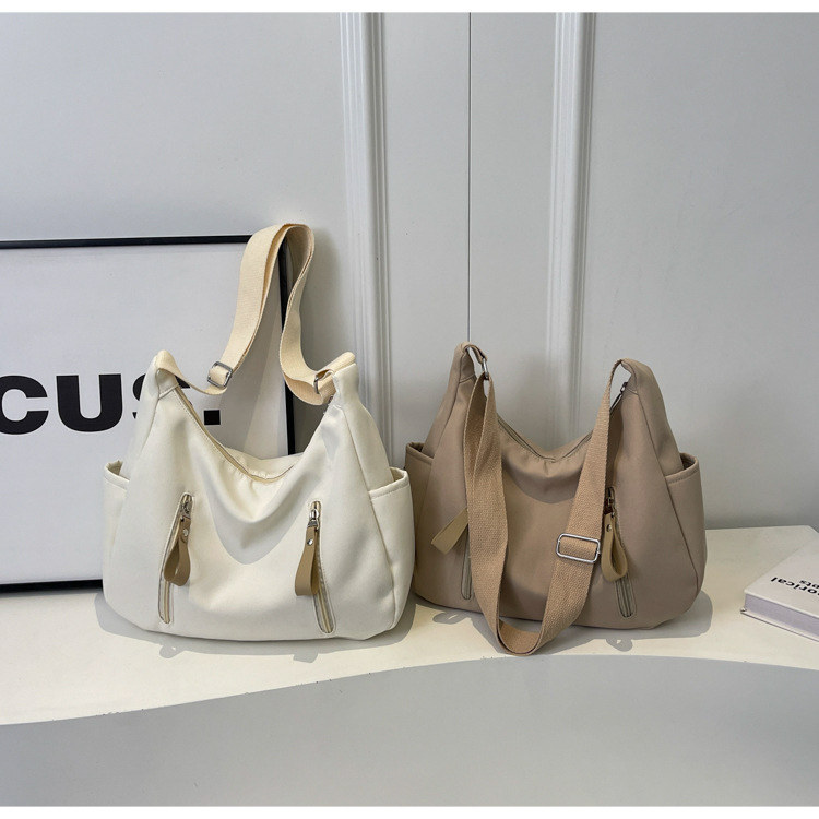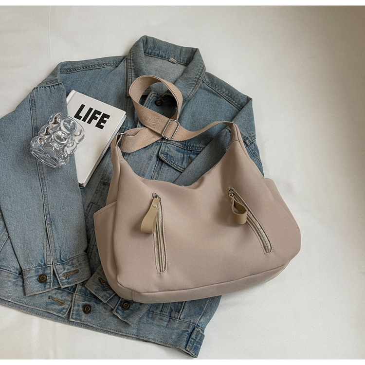 轻便复古简约帆布包2024新款休闲大容量单肩包学生上课斜挎托特包