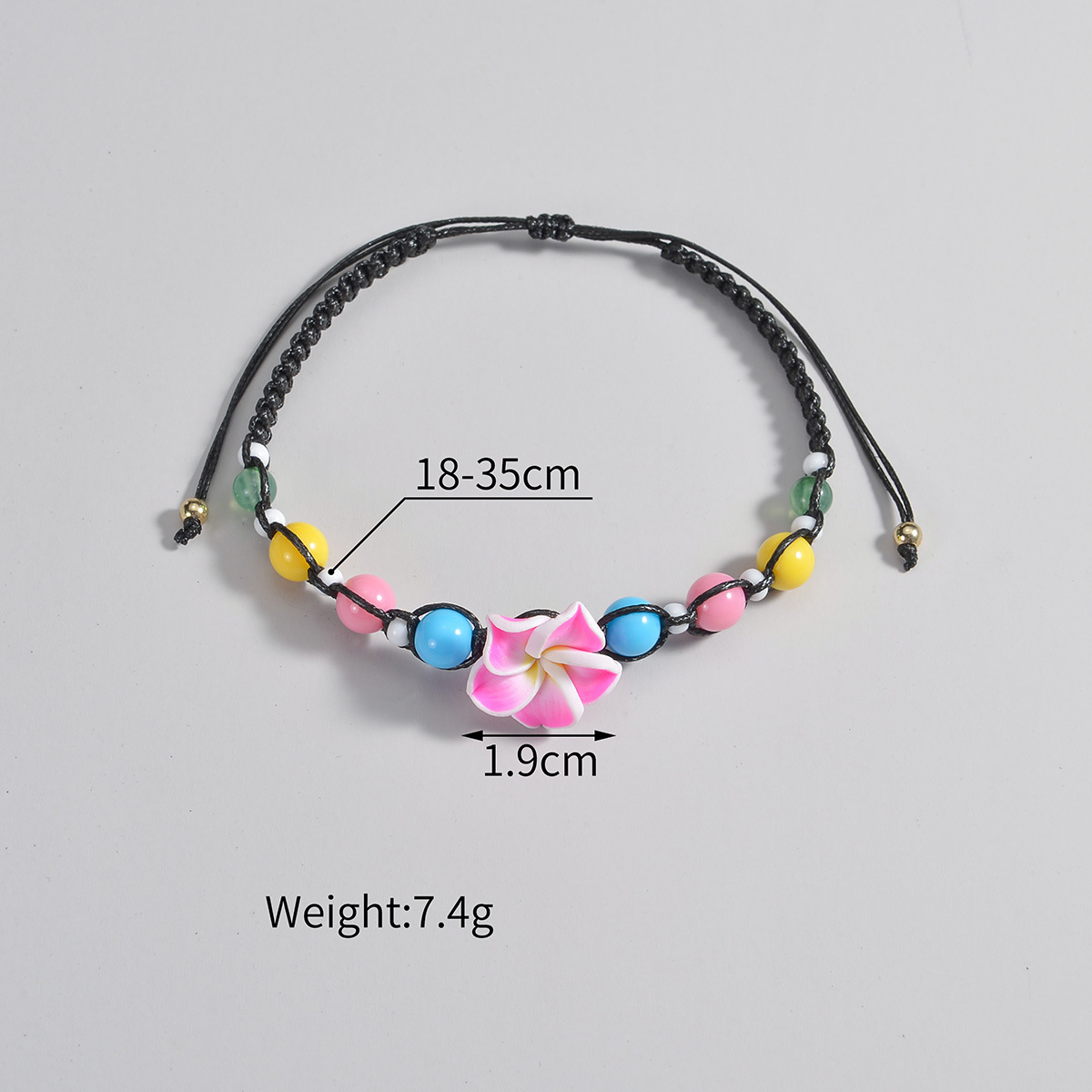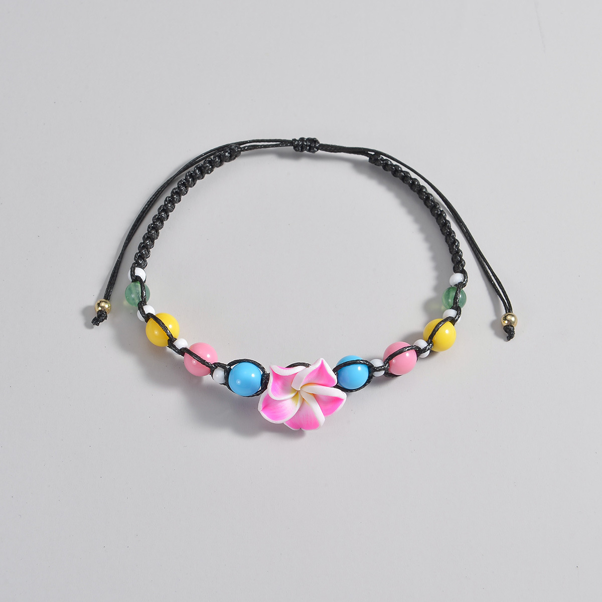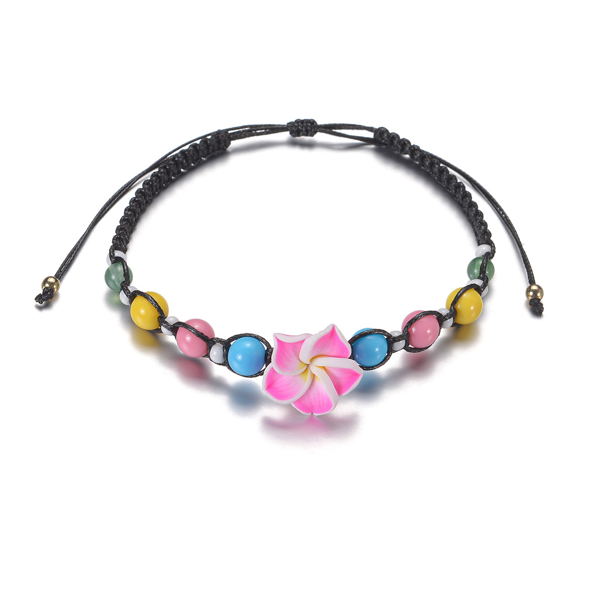 波西米亚度假风软陶花朵彩色串珠防水蜡线编织脚链适合女士女生
