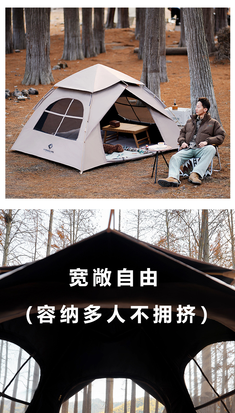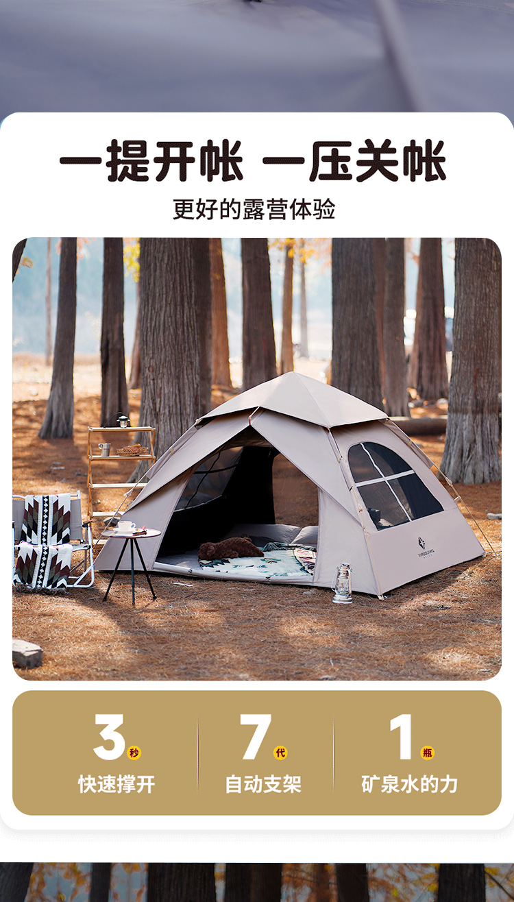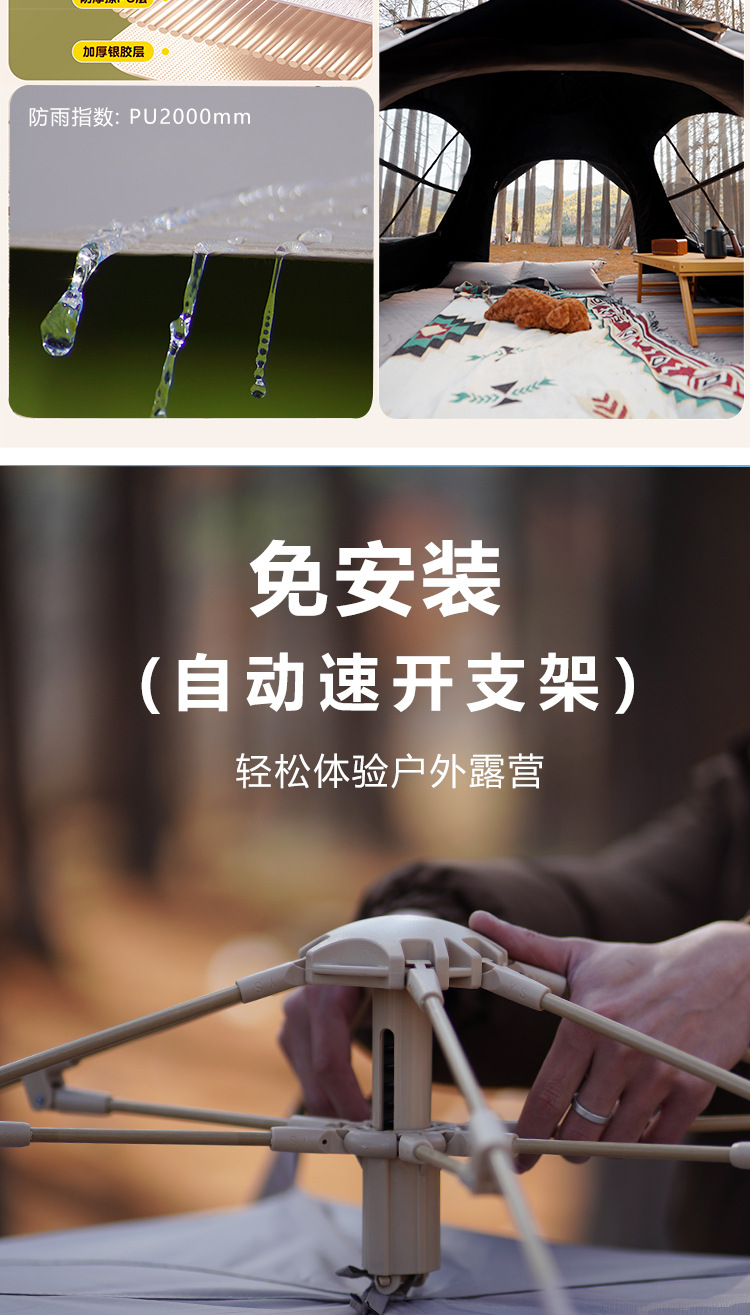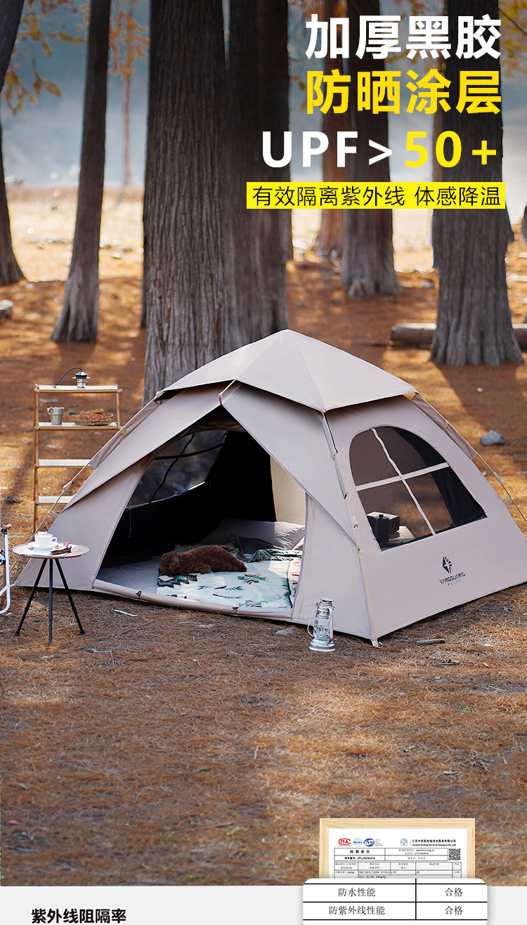 阳光部落黑胶帐篷户外折叠便携式自动加厚防雨野外露营装备全套