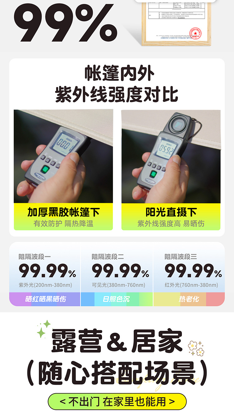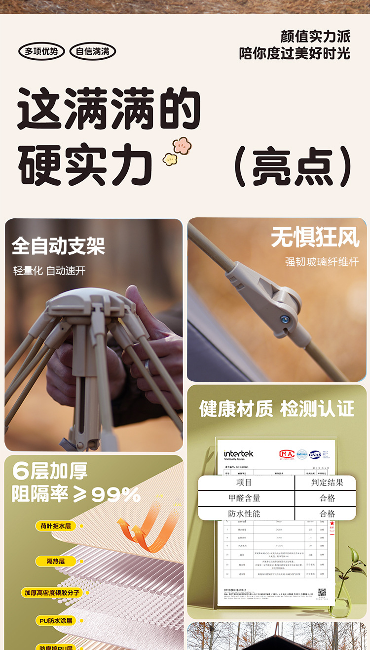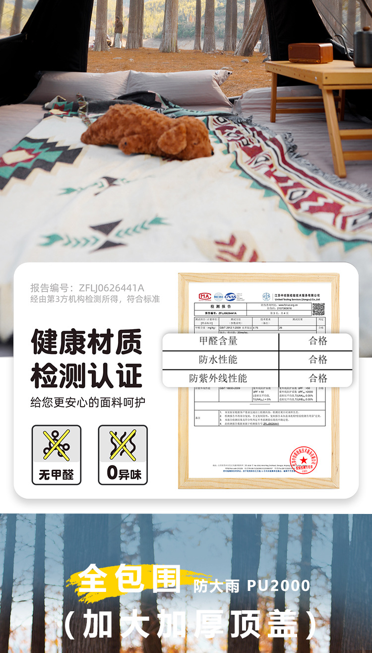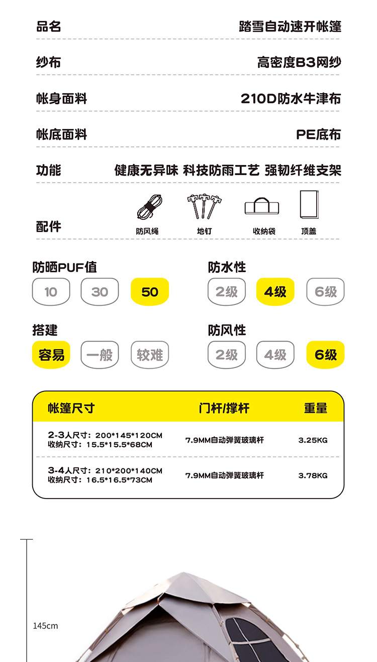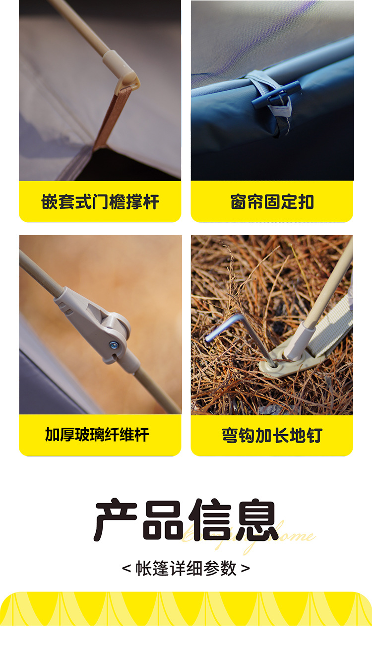 阳光部落黑胶帐篷户外折叠便携式自动加厚防雨野外露营装备全套